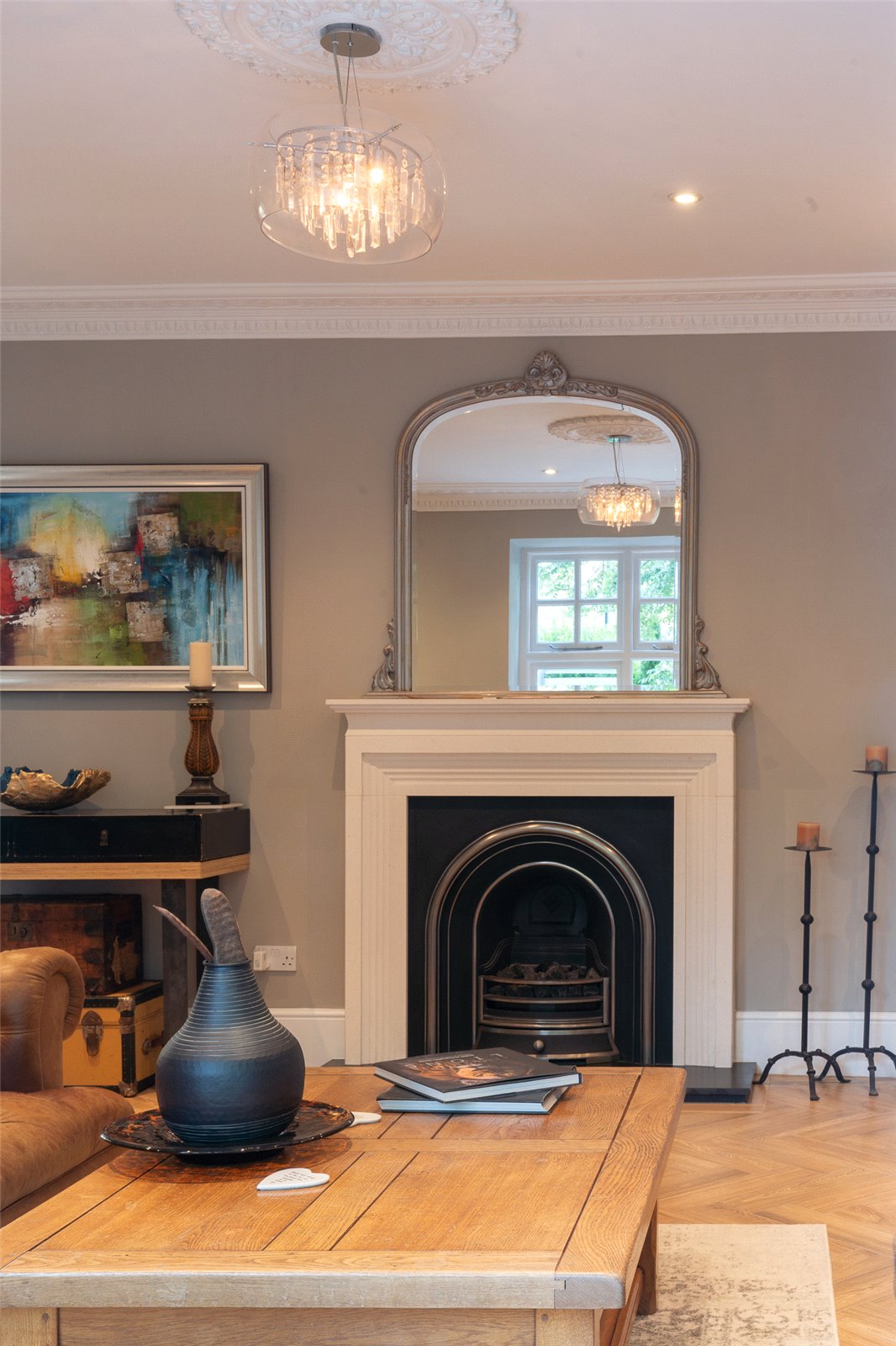 Reception: Feature cast iron fireplace. Large casement windows opening onto rear garden. Ceramic floor tiles. Underfloor heating. Wired in Surround Sound.