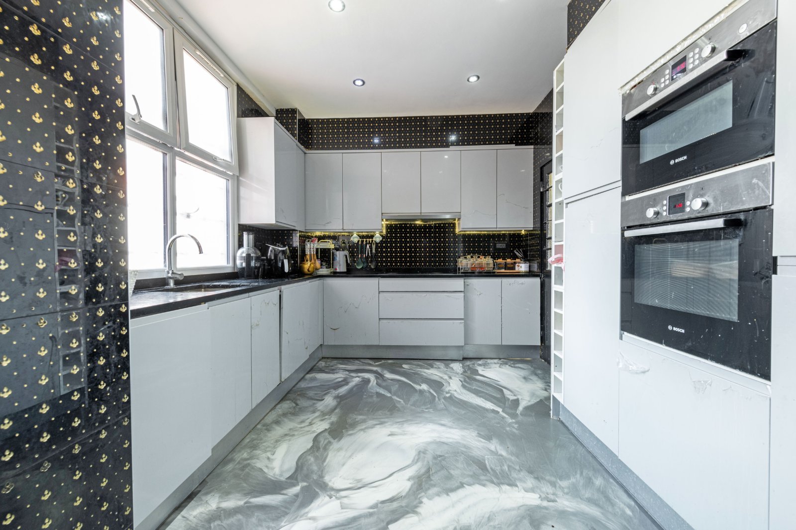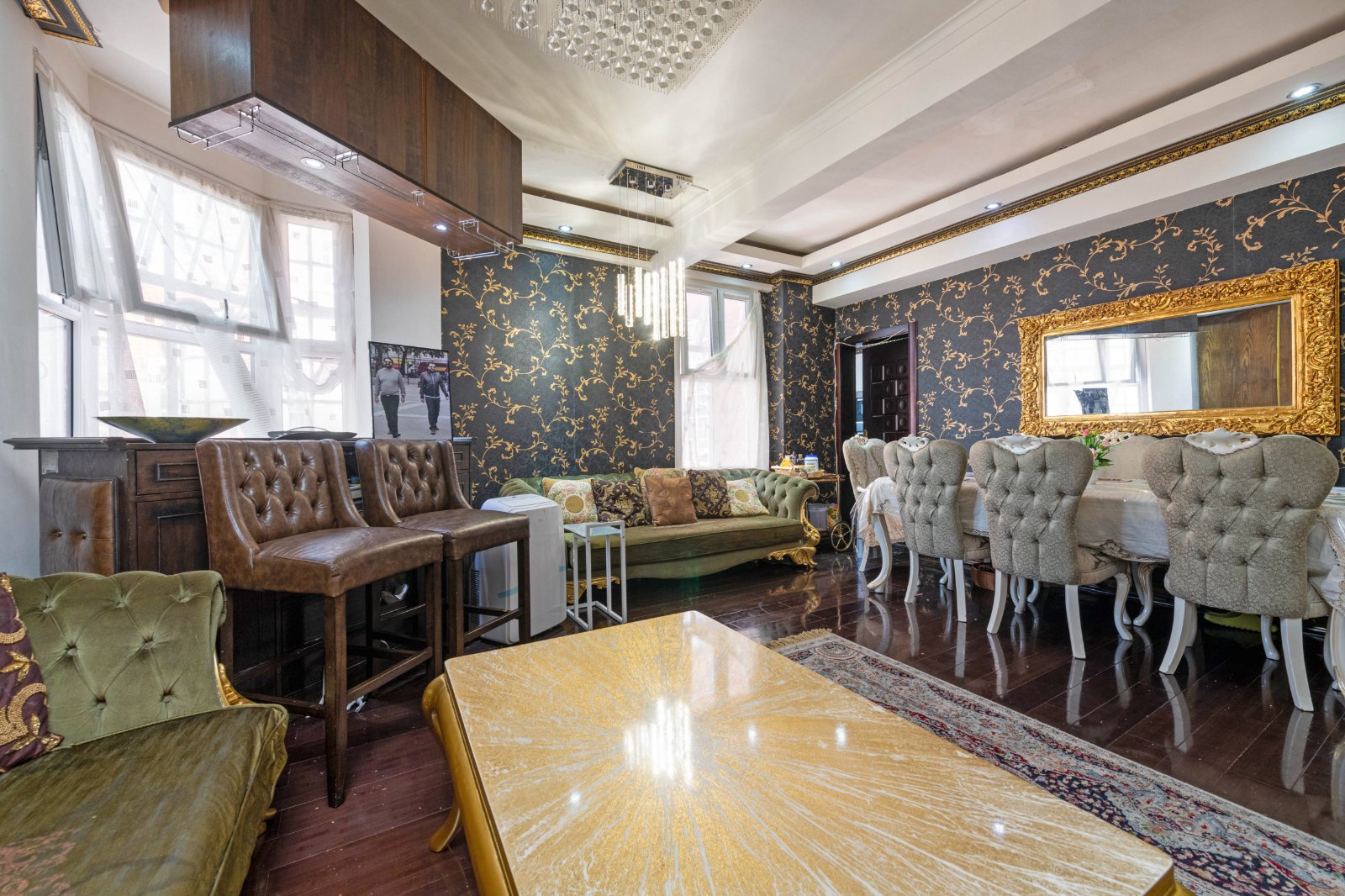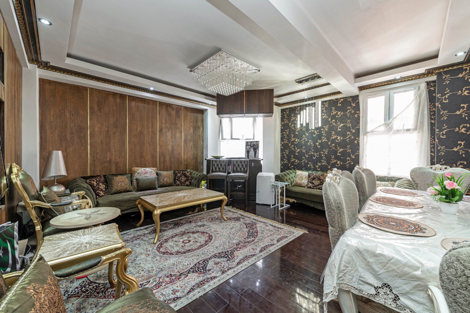 The flat has been decorated in a Middle Eastern style with doors imported from Dubai, ornate coving to ceilings and parquet wooden flooring. There is a 24 hour concierge. The flat also benefits from 3 bathrooms and beautiful communal gardens.