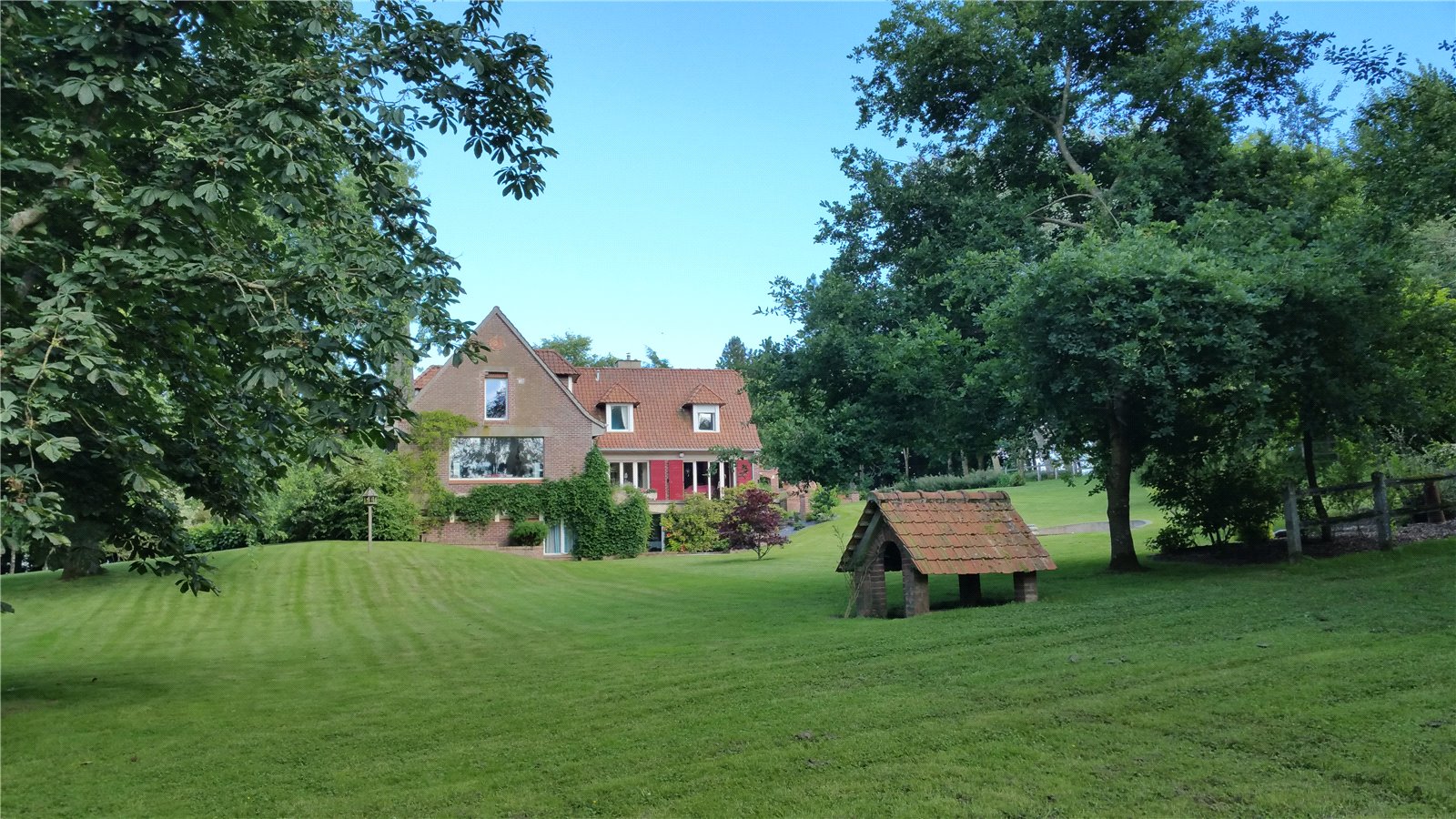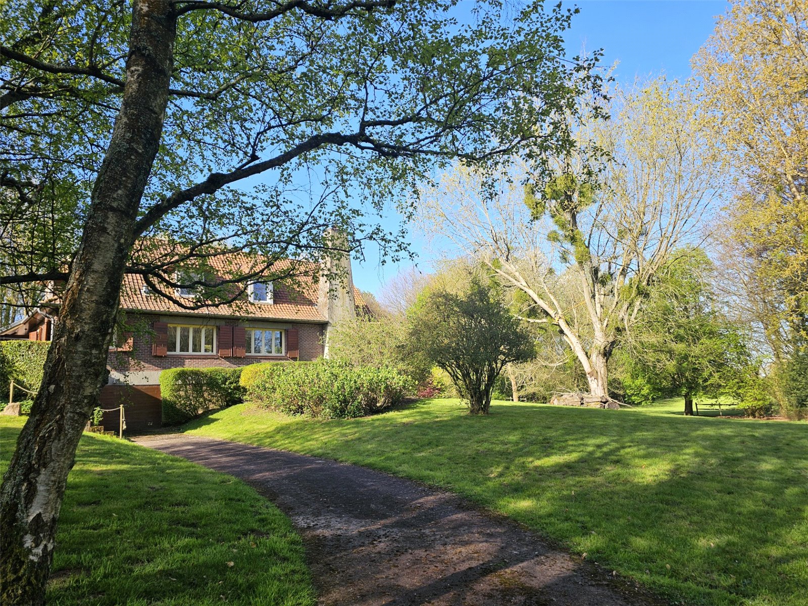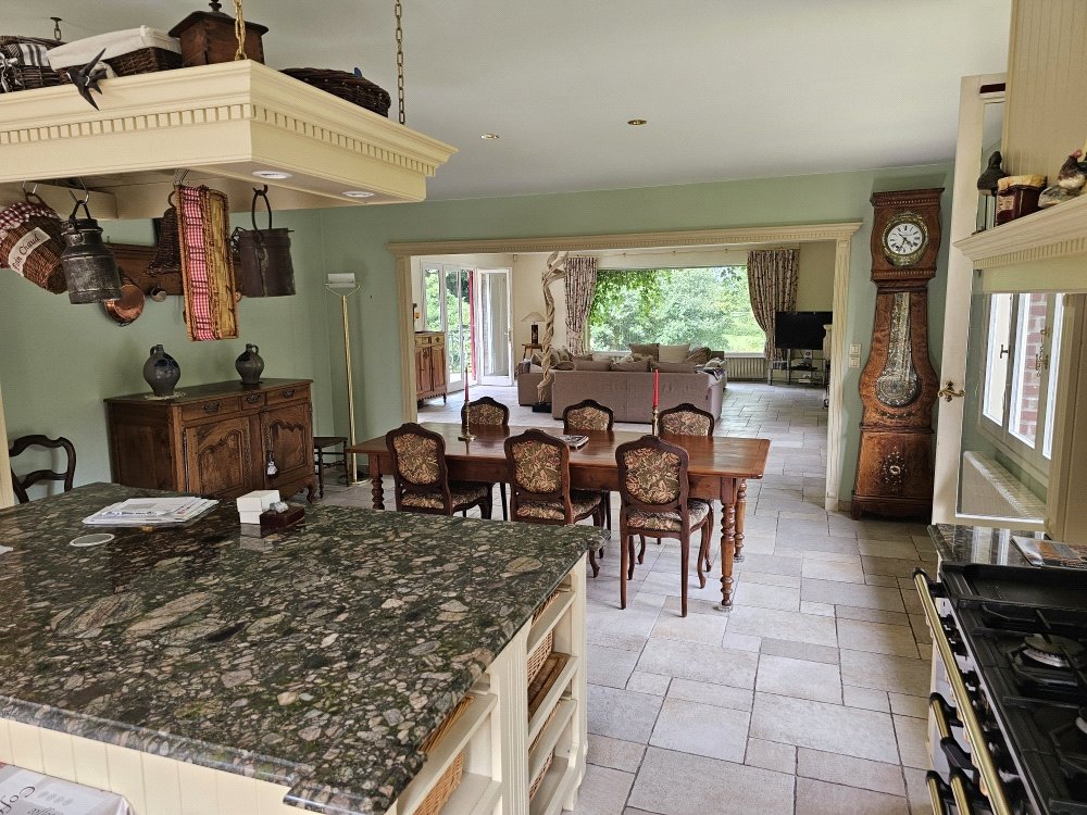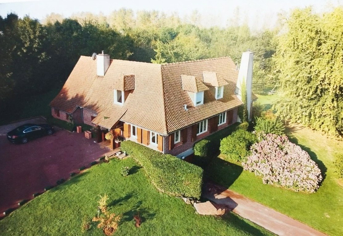 Nestled in the picturesque village of St Georges, this exceptional detached residence offers an idyllic retreat just one hour from the port of Calais, 45 minutes from the chic coastal town of Le Touquet Paris Plage, and a mere 10 minutes from the historic garrison town of Hesdin. St Georges, a designated 'village fleuri,' which lies along the historic route of the Golden Cloth, famously traversed by King Henry V en route to the Battle of Agincourt in 1415.Approached via the charming Rue Verte at the western edge of St Georges, this property is discreetly concealed by a beech hedge. Passing through the electric wooden gates, one is welcomed into a landscaped woodland estate spanning 4 hectares, adorned with mature trees and shrubs, exuding a serene parkland atmosphere.The driveway gently ascends, revealing a stunning residence constructed in 1976 by the renowned architect L. Quetelard of Le Touquet. To the right, the drive leads to the lower ground floor services area with a spacious garage, while the left branch sweeps to the main entrance, where there is ample parking for four to five vehicles.Upon entering the impressive hallway, you are greeted by an expansive open-plan living space exceeding 80 m². The modern kitchen, designed in the 'English style,' features a substantial centre island, integrated units, generous storage at ground and eye level, and a striking Falcon range cooker. The countertops are elegantly finished in Italian granite.The dining area flows seamlessly into the main salon, highlighted by an exquisite Rigail sculptured open hearth. This light-filled, triple-aspect room offers captivating views across the park and gardens to the north and east, and to the south, vistas of the lower ground floor terrace, barbecue area, and sun lounge, framed by a wooded backdrop.Returning to the entrance hall, a staircase descends to the lower ground floor garden area, while another staircase ascends to the bedroom quarters. The upper level comprises a luxurious master suite, three additional bedrooms, three bathrooms, and a cosy library, all impeccably crafted in the finest French oak timber.Descending to the garden level, you will find a fitness area adjacent to a 60 m² indoor swimming pool. The south-facing, floor-to-ceiling glazed wall of the pool area opens onto the garden and sun terrace, creating a seamless indoor-outdoor flow.The lower ground floor also includes a dedicated office space and a spacious second master suite with a dressing room. Outside, meander through the impeccably manicured gardens to discover two substantial outbuildings: one serves as a wood store for the open hearth, while the other houses the garden machinery and equipment.This exceptional residence is set amidst exquisite gardens and scenic parklands, thoughtfully designed for minimal maintenance while providing a tranquil and captivating setting.