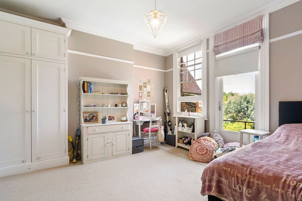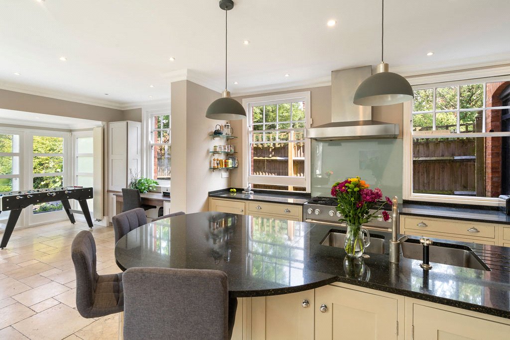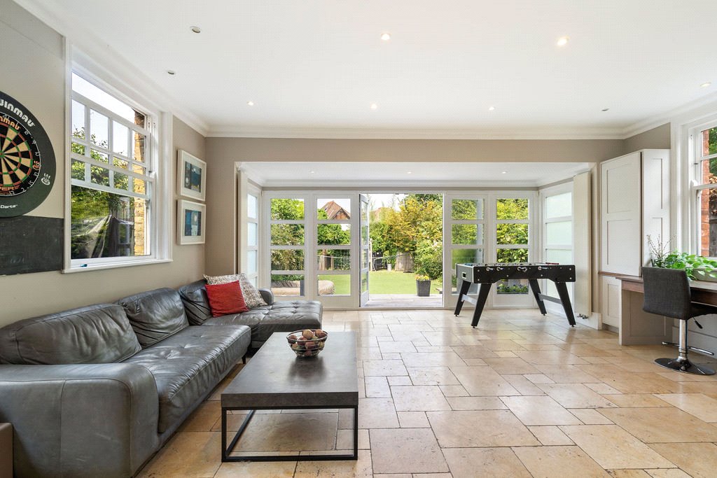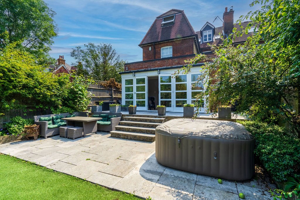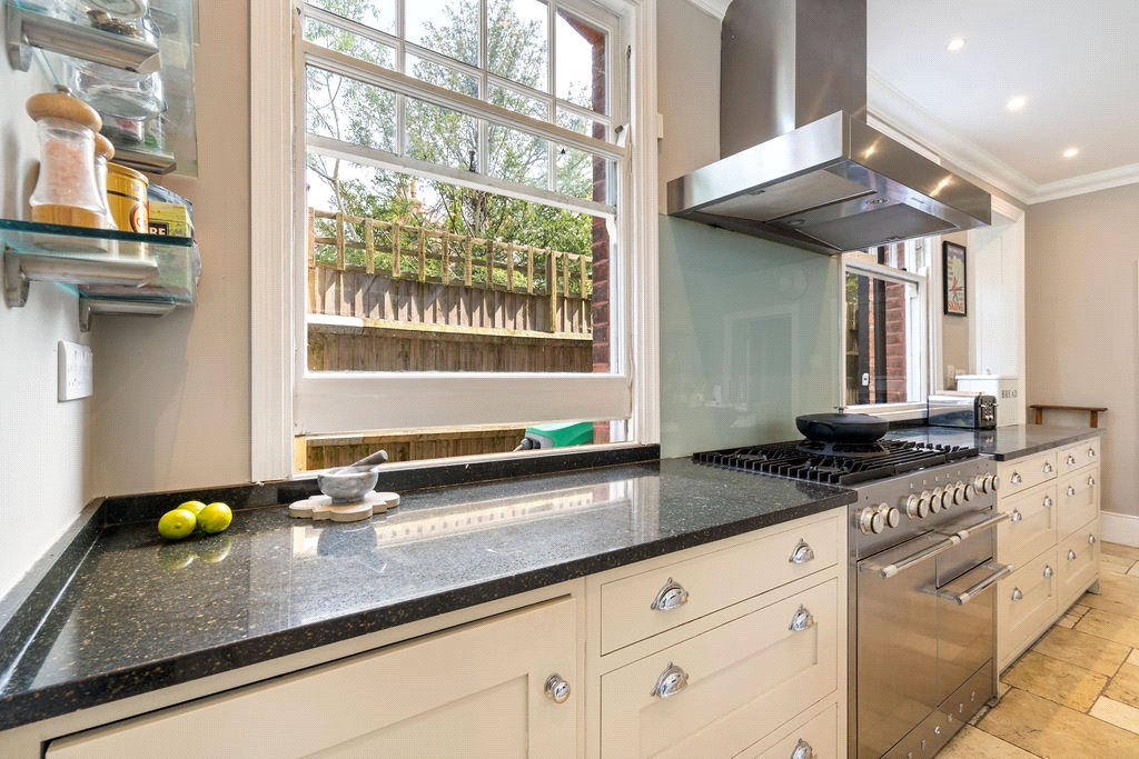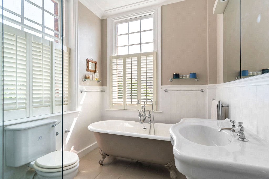 This splendid family home offers c.3,200 sq ft over three floors, thoughtfully laid out with 6 double bedrooms, 3 bathrooms, spacious reception rooms, well designed kitchen, downstairs cloakroom, boot room, utility and a 70' westerly facing garden with terrace and hot tub. Decorated throughout in neutral colours with shutters to the windows period features, and under floor heating. The property also benefits from off street parking for 2 cars.
