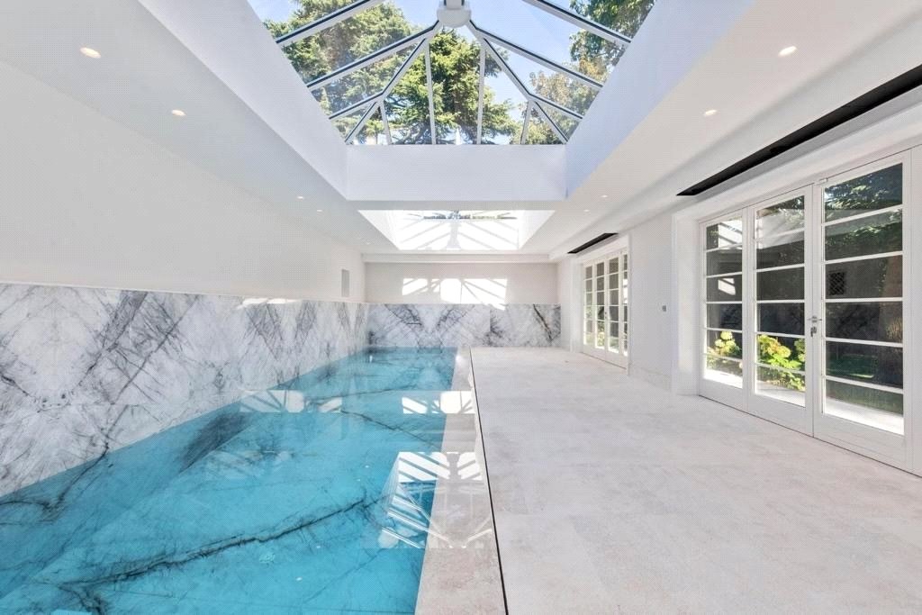 The spectacular indoor swimming pool, is of particular merit and an imposing grand entrance leads you into generous bright reception rooms and a stunning designer kitchen. Bedrooms suites are beautifully appointed and thoughtfully laid out.