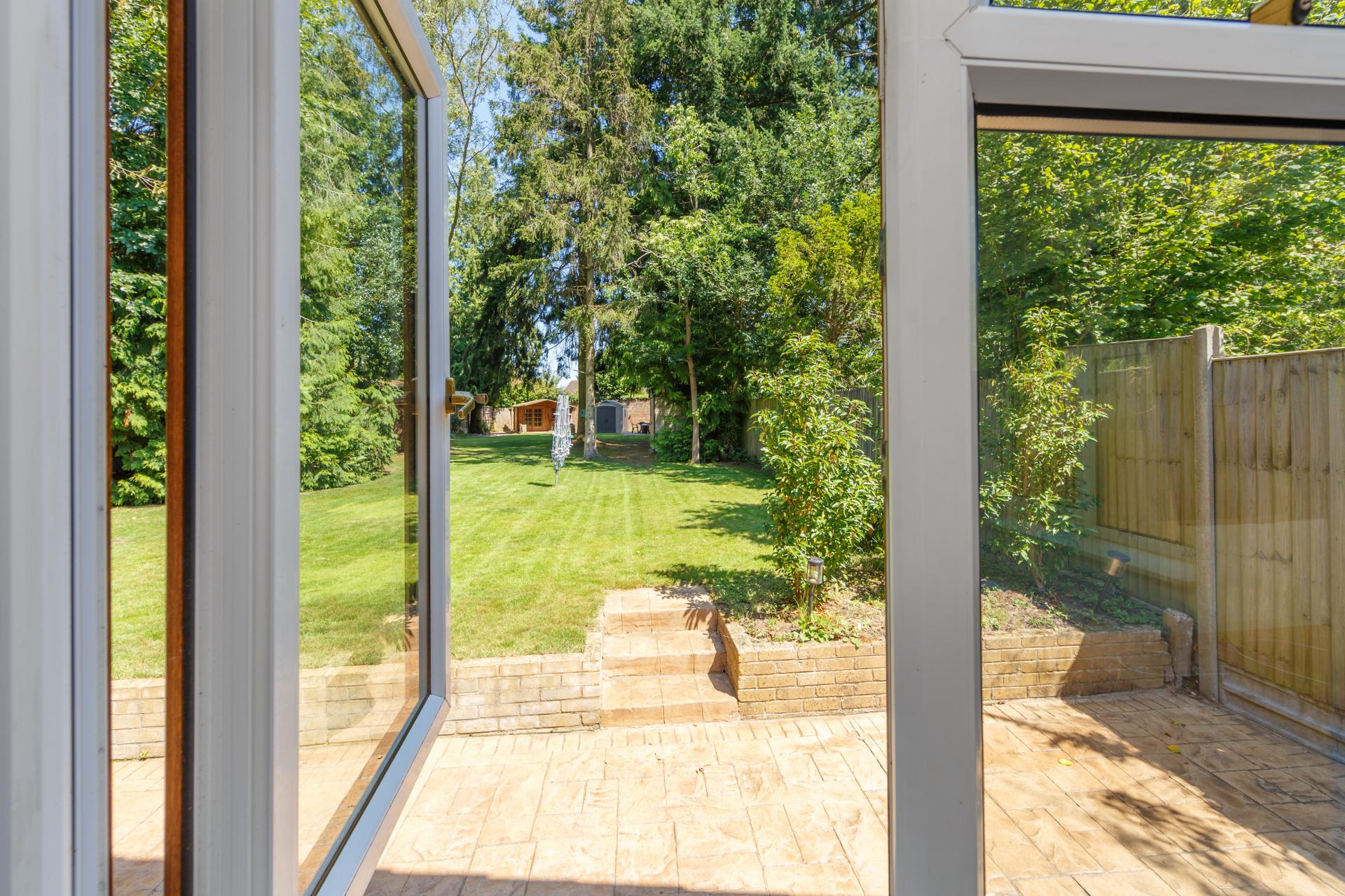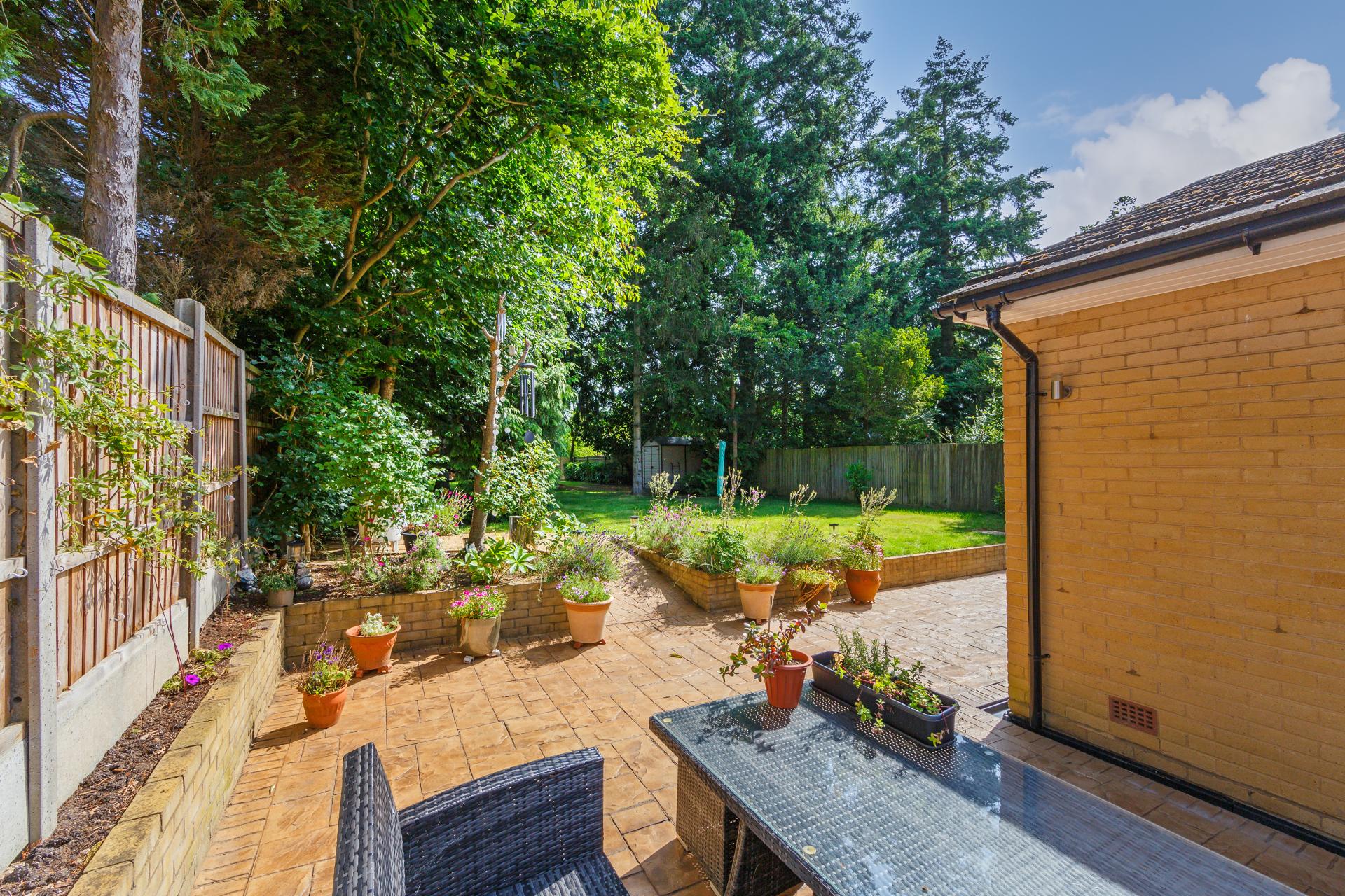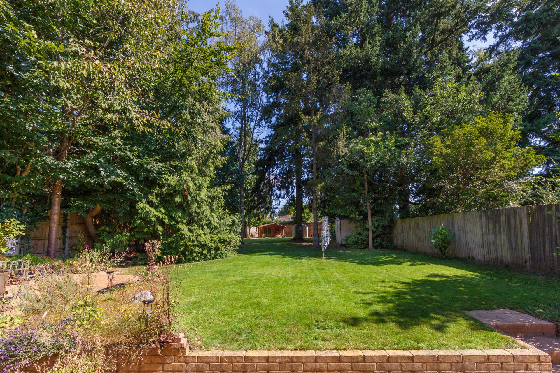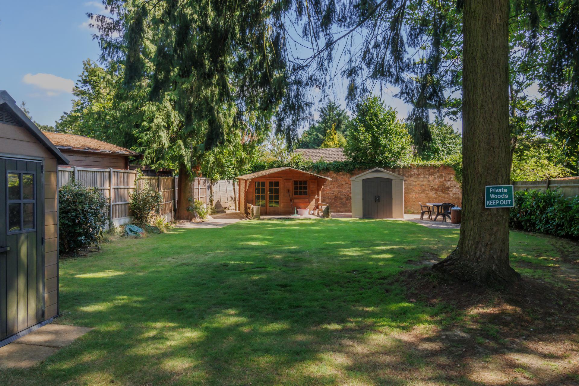 Outdoors, the remarkable private and mature rear garden boasts a large patio area that transitions into an extensive manicured lawn, adorned with flowerbeds and borders showcasing a stunning variety of plants, trees, and shrubs. A summerhouse at the rear features its own patio area, enhancing the outdoor experience.