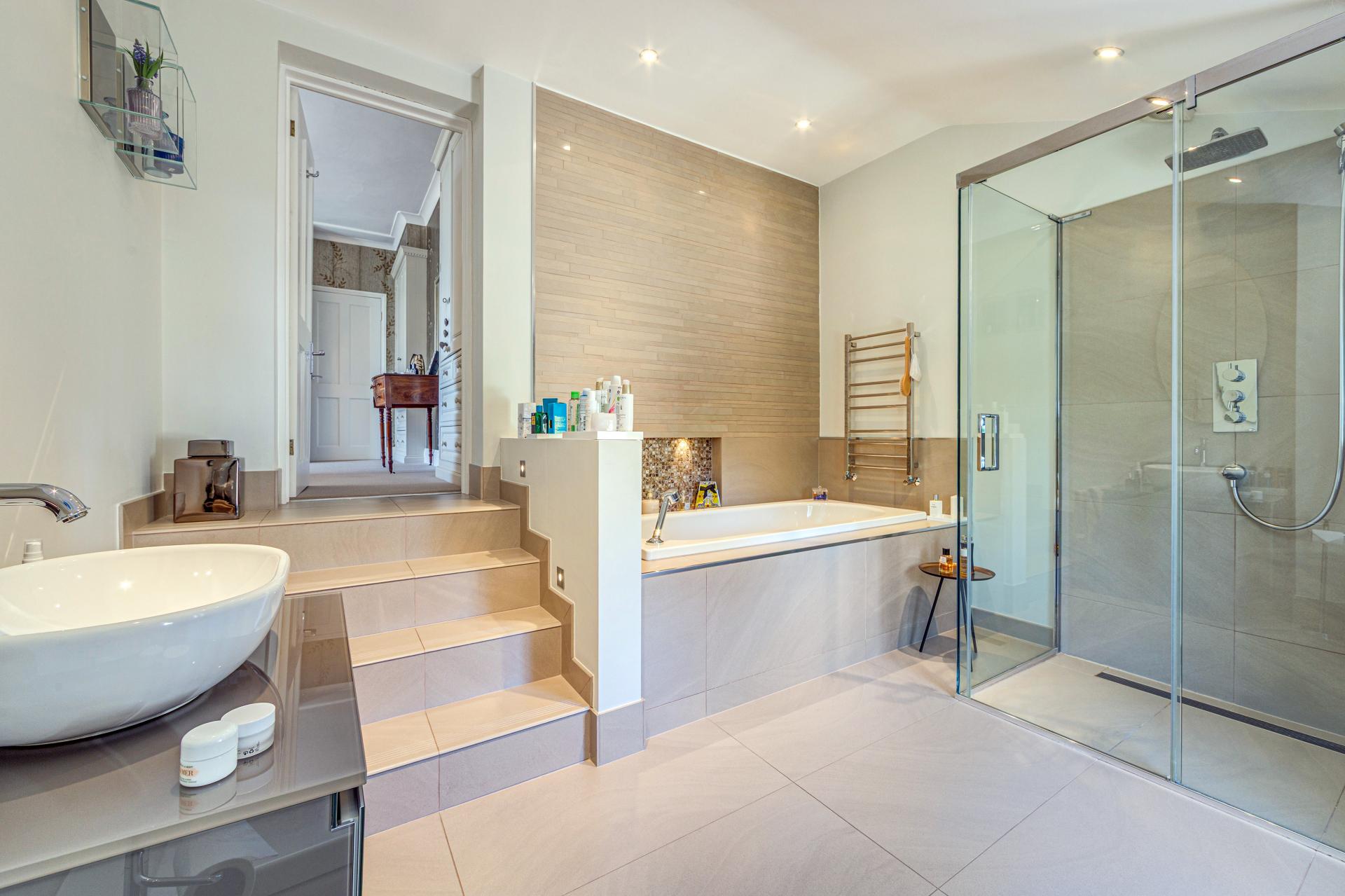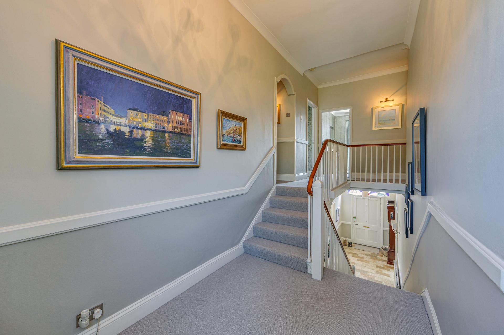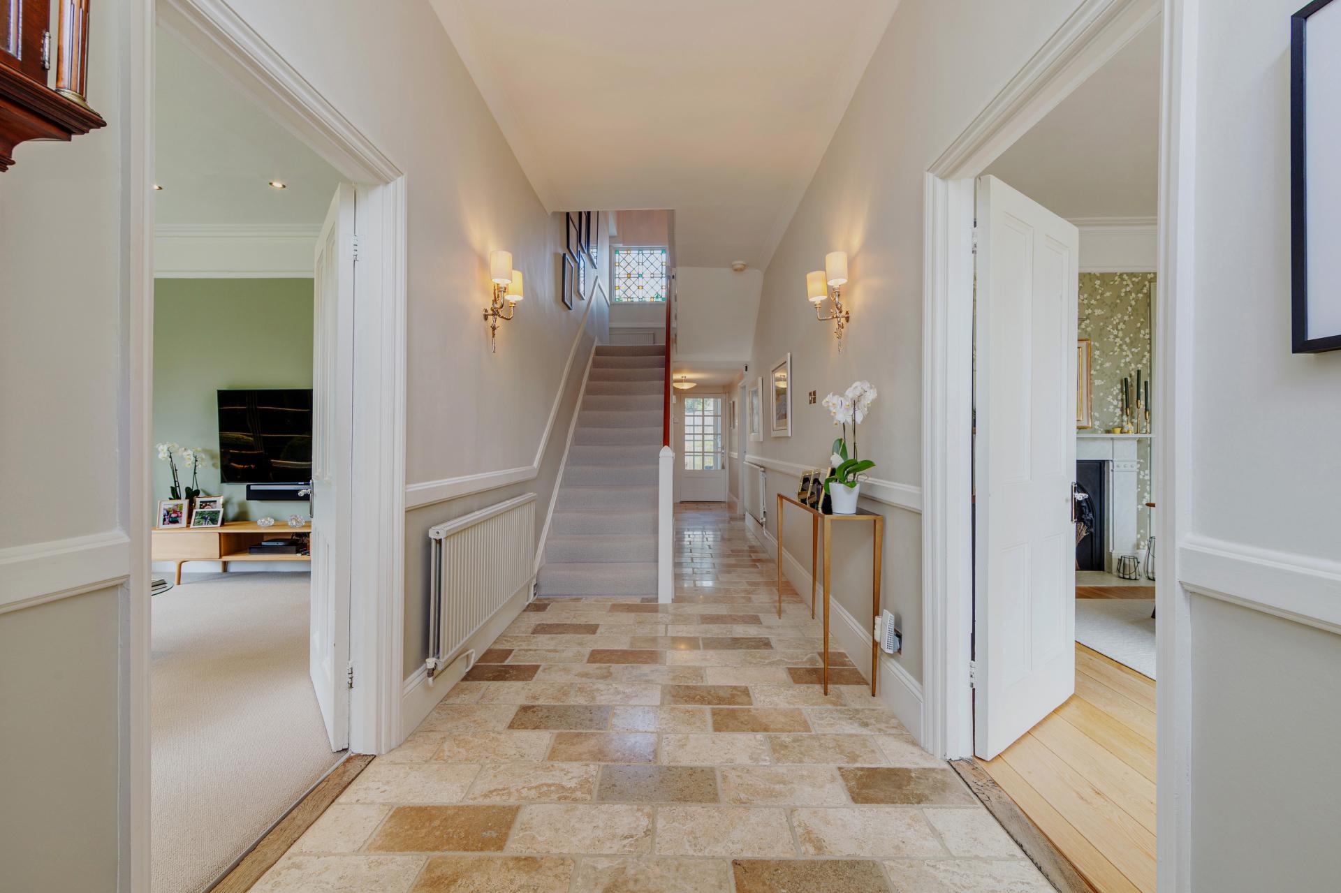 Upstairs, five beautifully presented bedrooms offer peaceful retreats, with the principal suite enjoying a luxurious en suite and a well-appointed dressing room. 2 further bedrooms also with en suites and a family bathroom, each room is finished to an impeccable standard, highlighting the care and craftsmanship invested throughout.