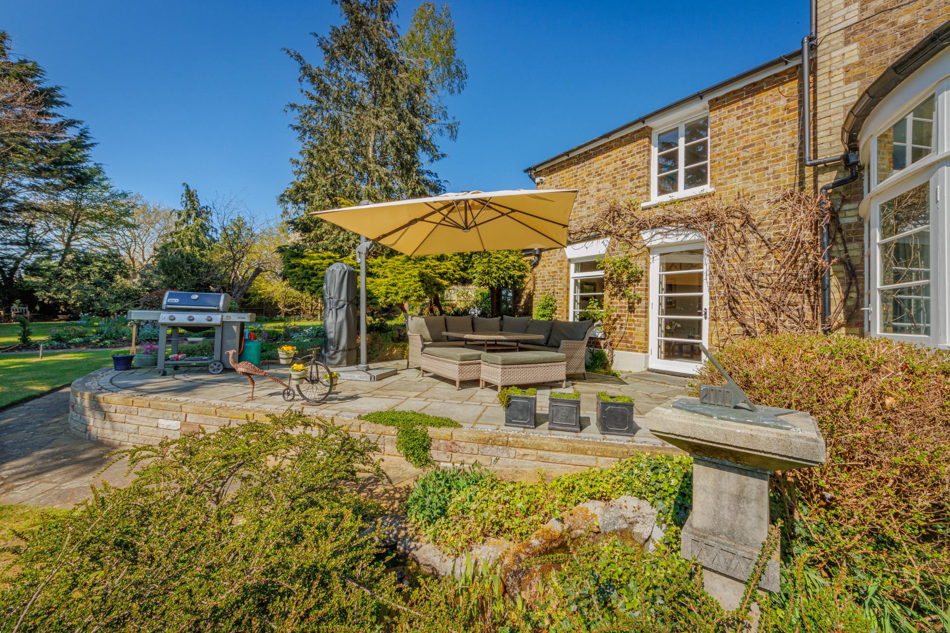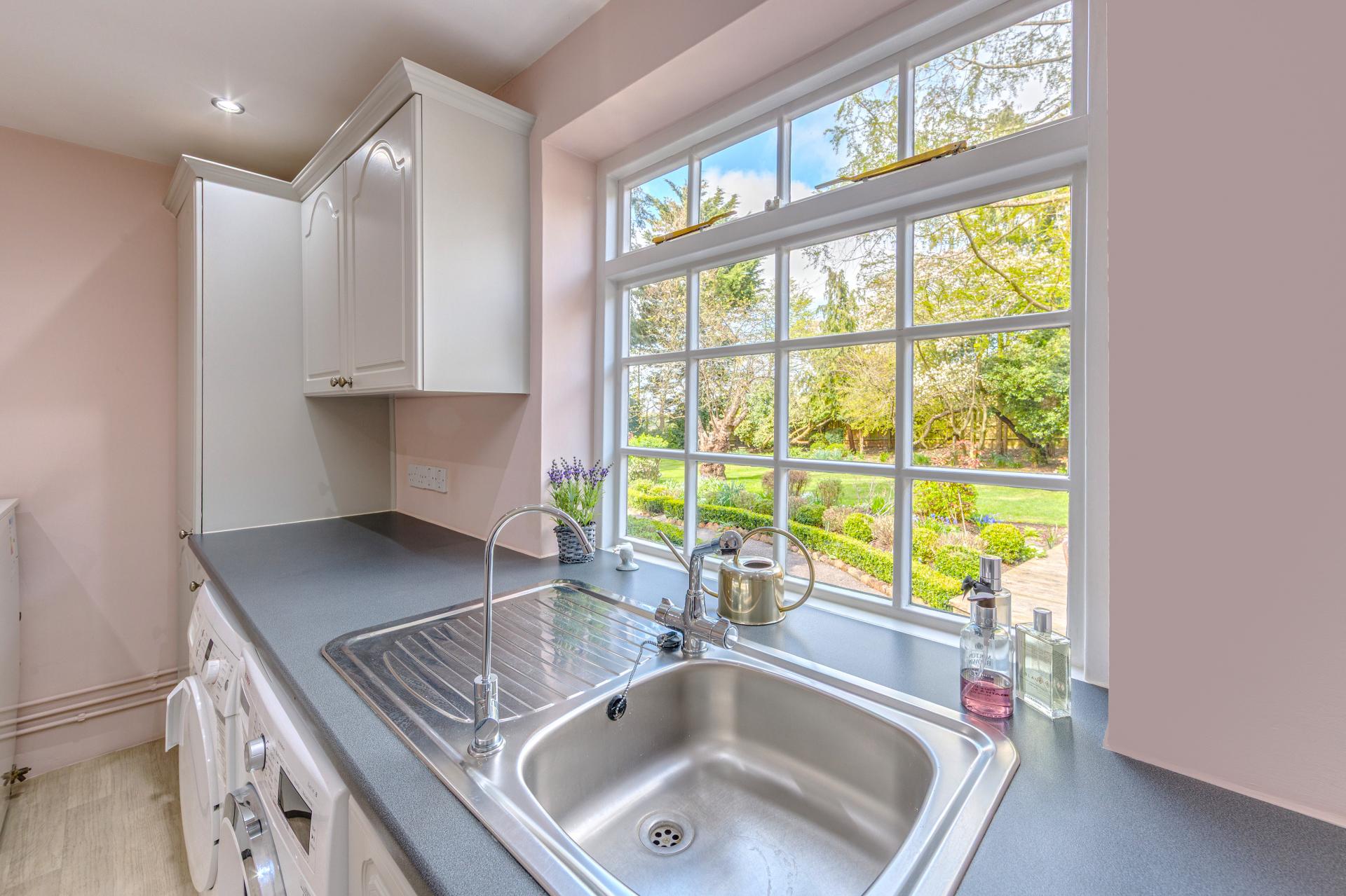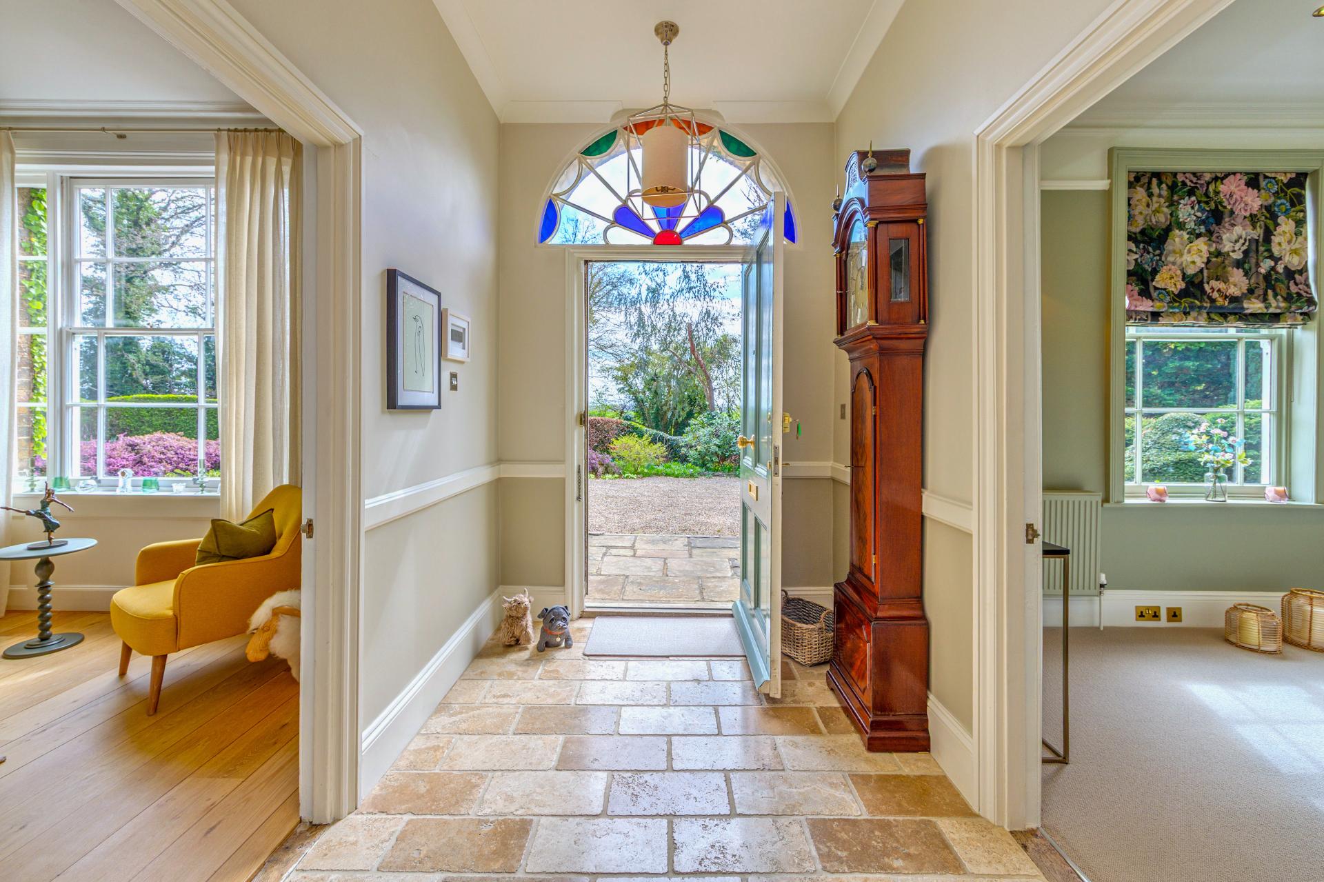 From the moment you arrive, Roundbush captivates you with its striking curb appeal. The classic brick façade, framed with delicate climbing greenery, hints at the care and attention that has gone into maintaining every inch of this exquisite property. The gravel driveway sweeps up to the house, flanked by meticulously kept gardens that burst with vibrant seasonal colour, setting the tone for what lies beyond.