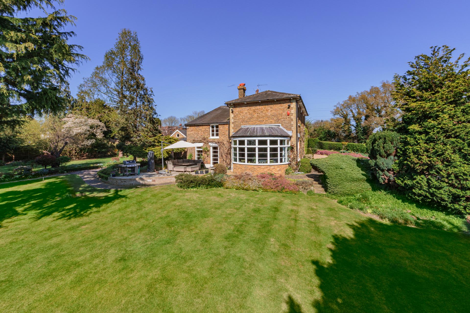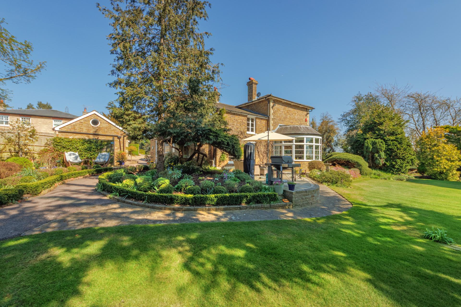 Roundbush, situated along the charming and highly sought-after Roundbush Lane in Aldenham, is a truly exceptional residence that effortlessly blends timeless elegance with modern comfort on a substantial plot of 0.86 acres. This stunning period home is presented in pristine condition throughout, offering a superb layout across approximately 3,714 sq ft of beautifully proportioned living space.