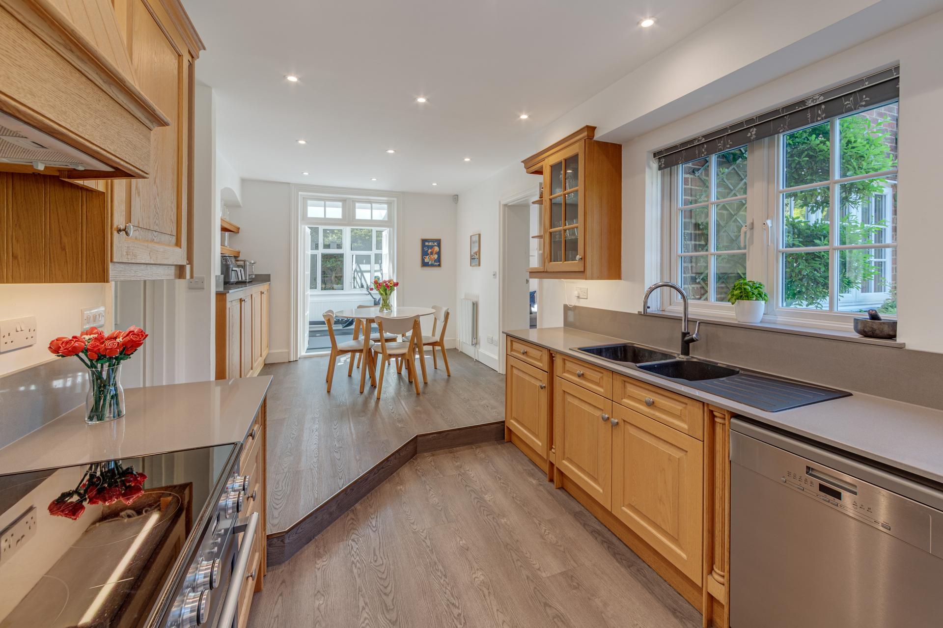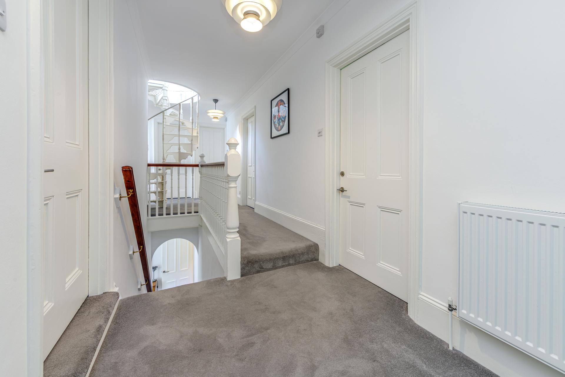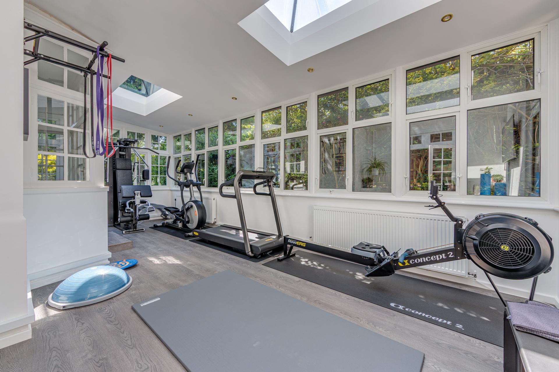 The ground floor welcomes you through a central hallway that leads to a generous kitchen/diner, forming the heart of the home with its expansive layout and seamless access to the rear garden. Adjacent to the kitchen is a bright and airy sun room/gym, a spacious sitting room and three formal reception rooms, each offering a distinct ambiance. Practical elements such as a utility room, pantry, shower room and internal garage enhance the home’s functionality, while the stylish flow between rooms adds to its charm.