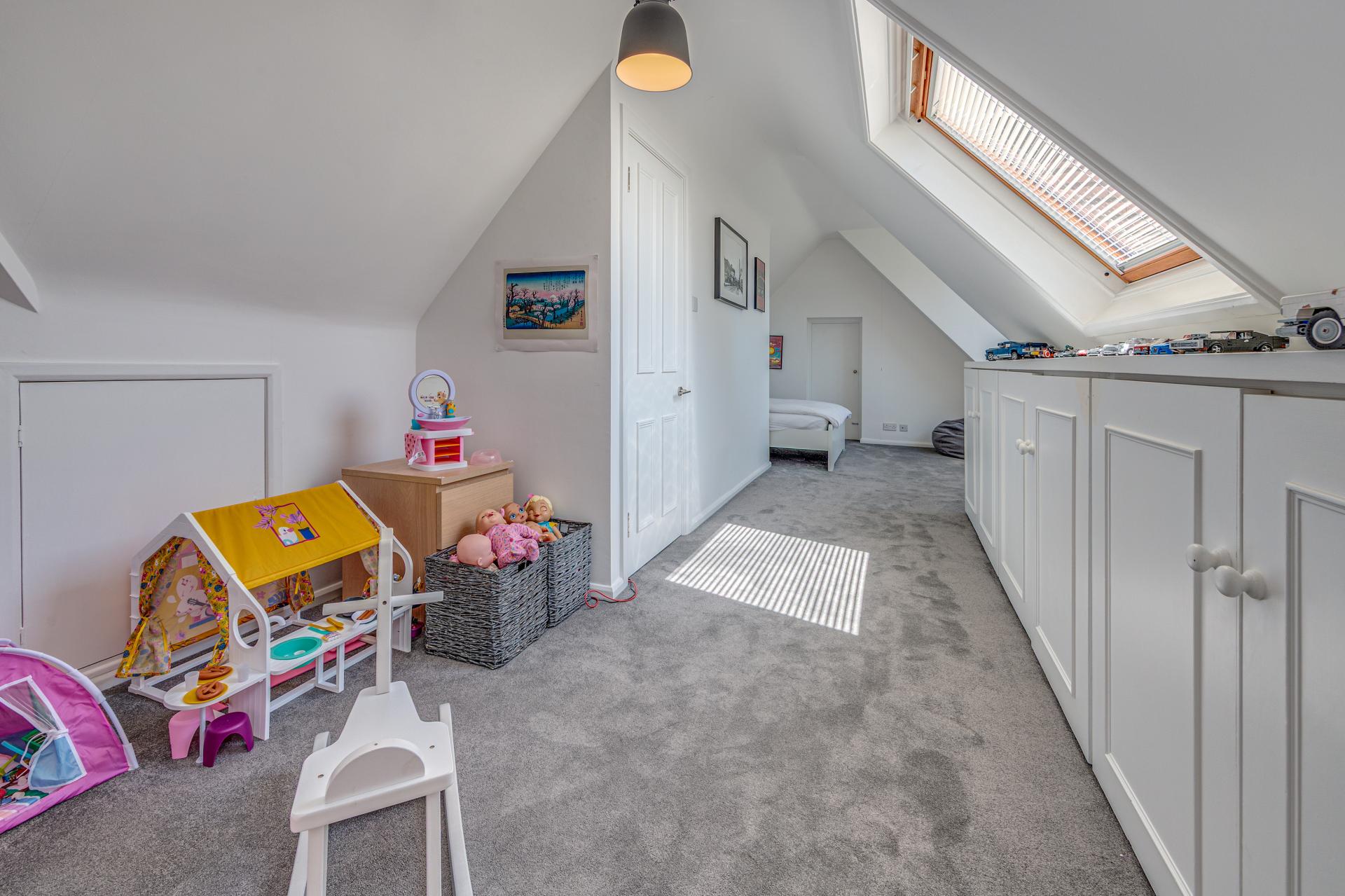 Upstairs, the first floor features four well-proportioned bedrooms, including a luxurious principal suite complete with dressing room and en-suite bathroom. Two additional bathrooms serve the remaining bedrooms, all of which enjoy generous natural light and refined finishes. The second floor comprises a large guest bedroom and a substantial storage room, ideal for visitors or as a private retreat.