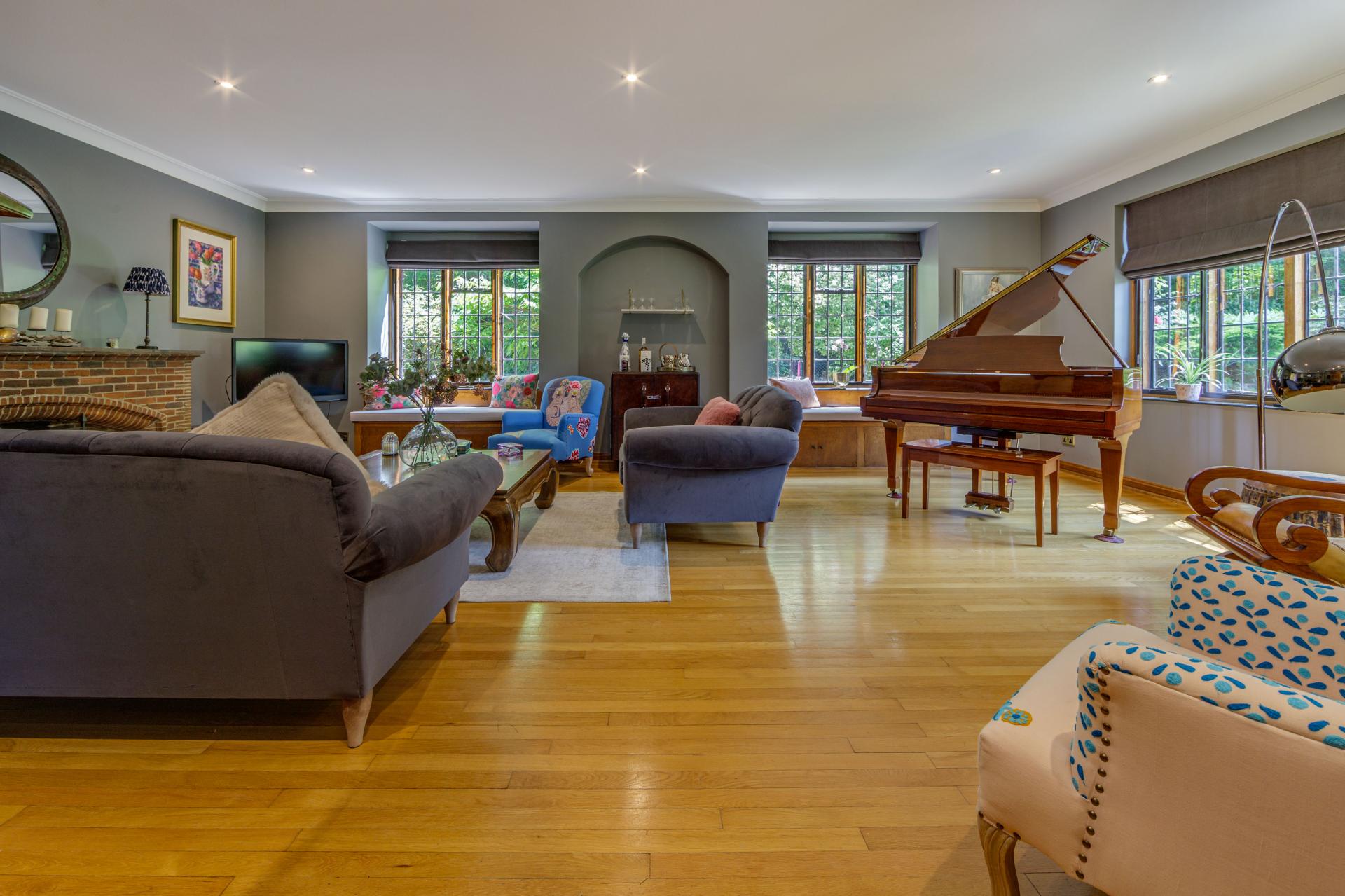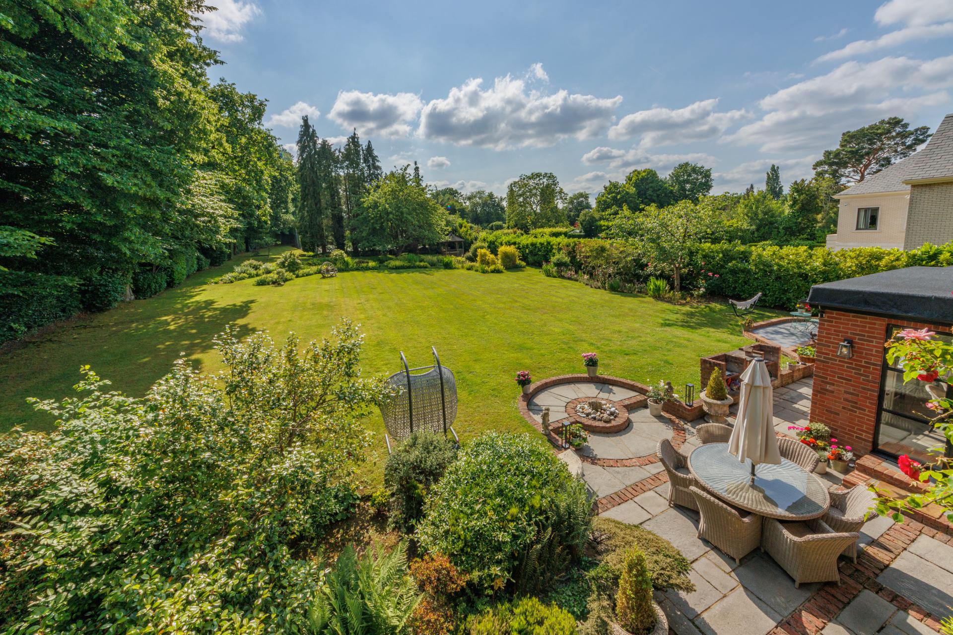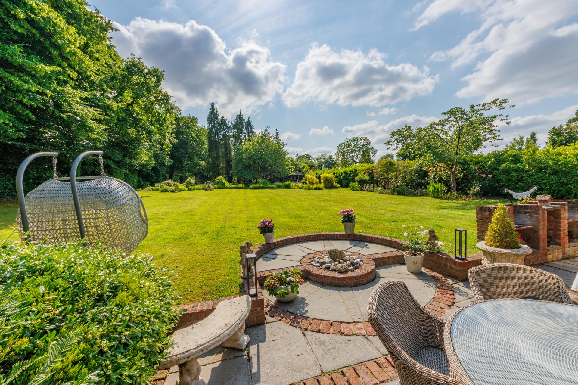 Occupying a remarkable plot of over 1.2 acres, the property boasts a total depth of approximately 500 ft. The stunning rear garden extends around 400 ft in length and over 100 ft in width, while the front garden spans an impressive 100 ft, creating a true sense of seclusion from the road.