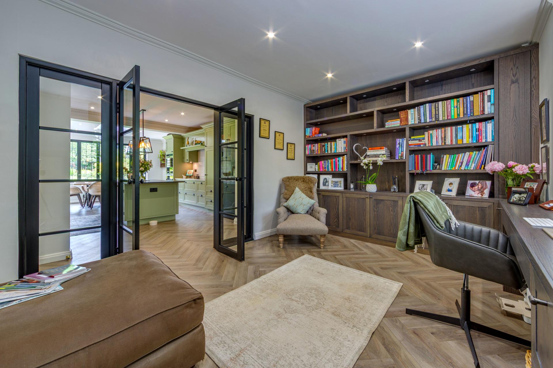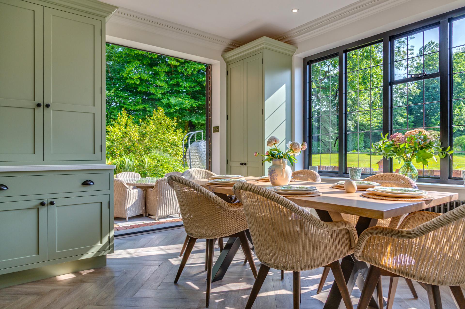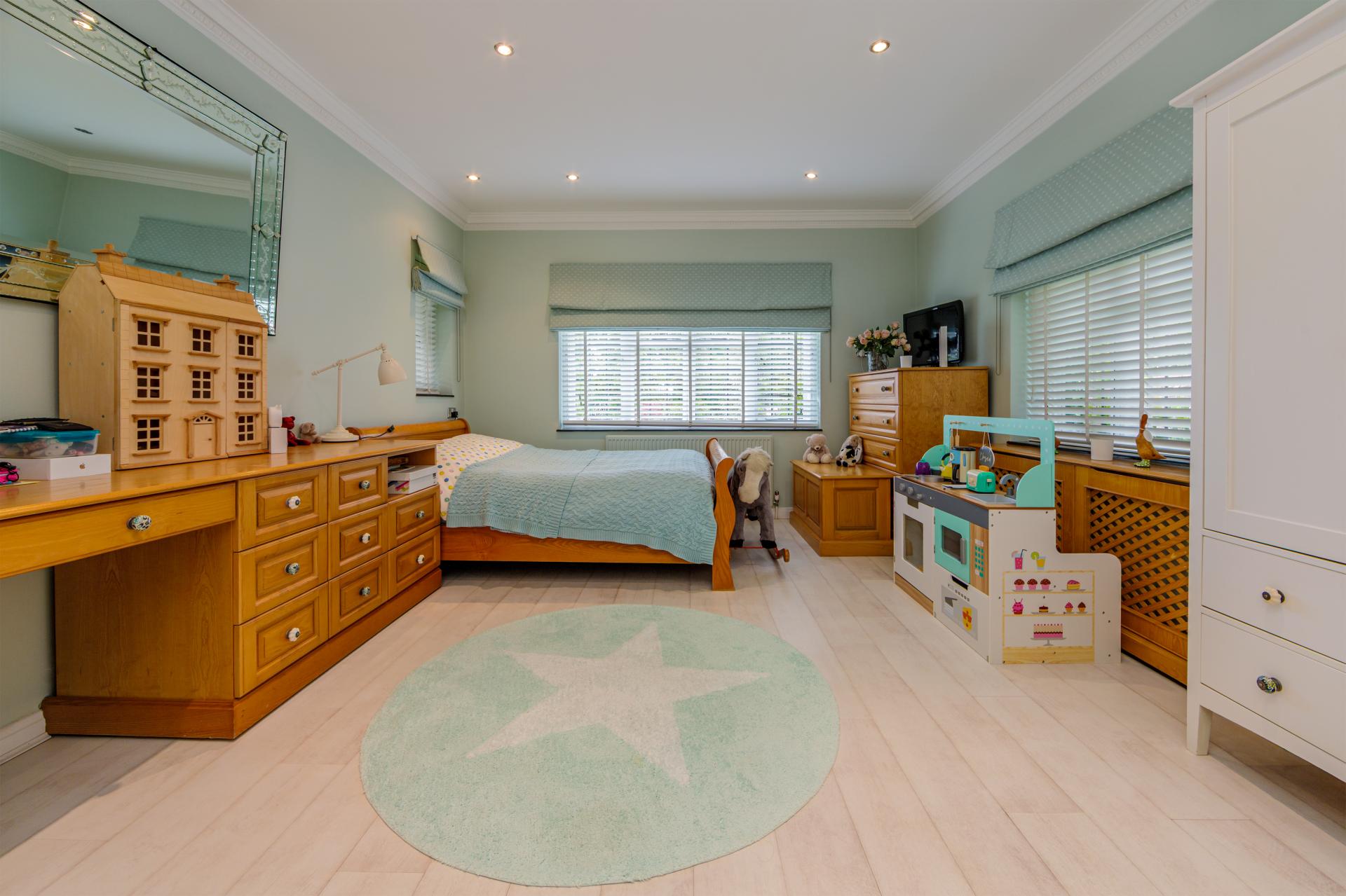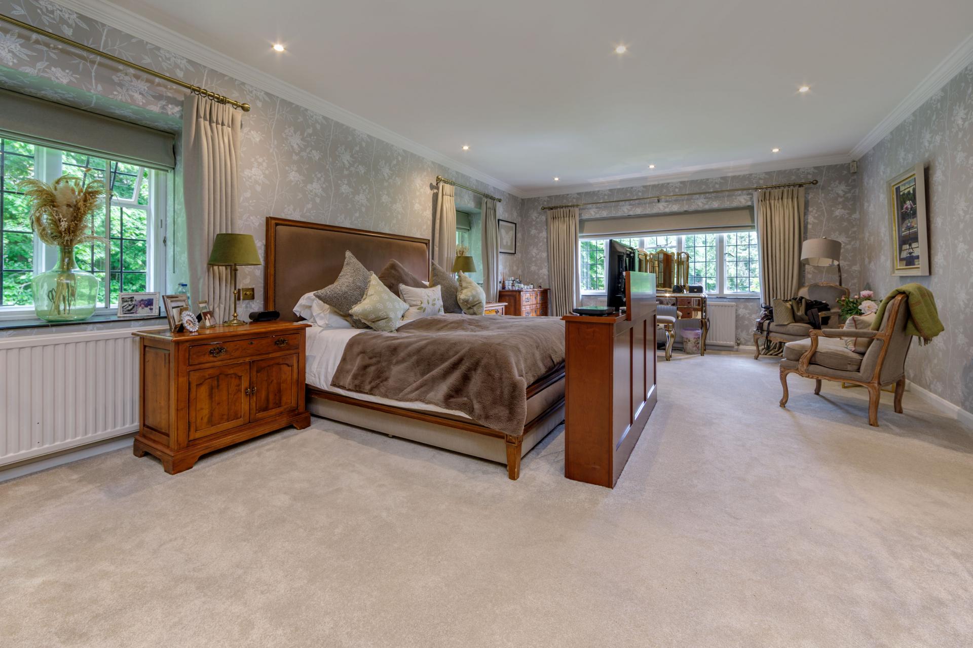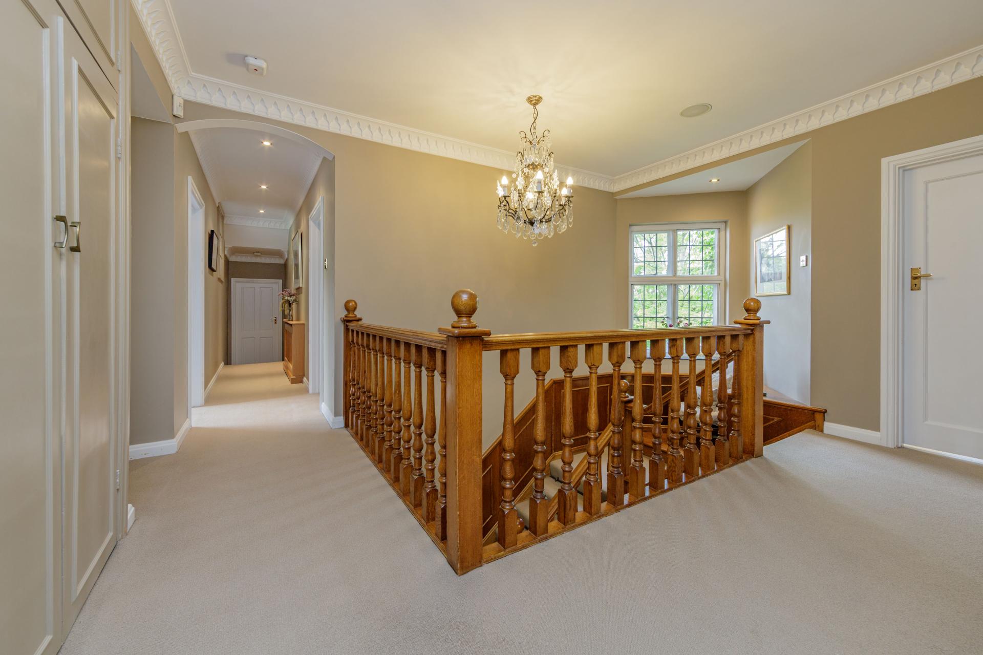 Upstairs, there are five generous double bedrooms, including a substantial principal suite, a family bathroom, and two further en suite bathrooms.