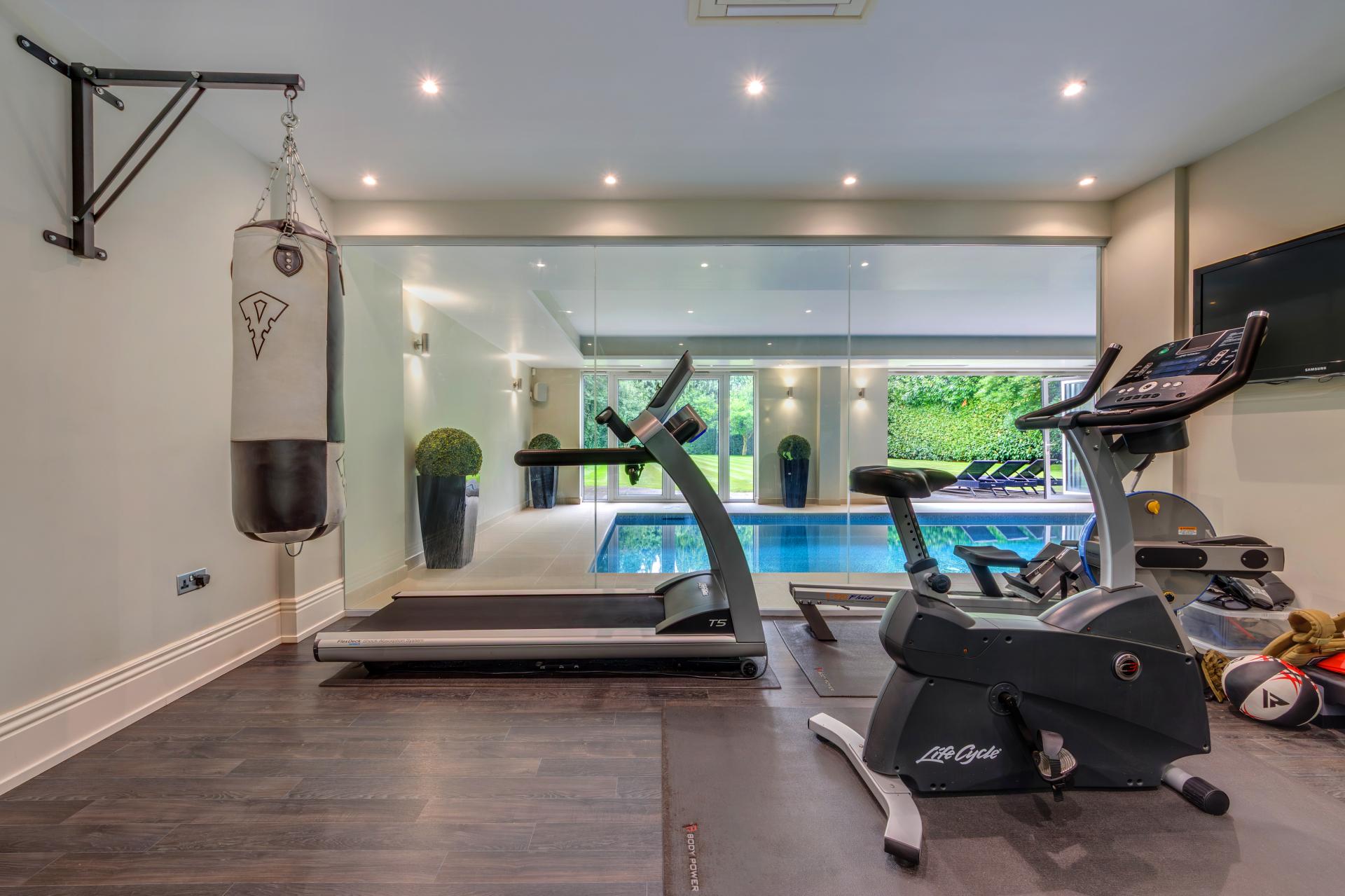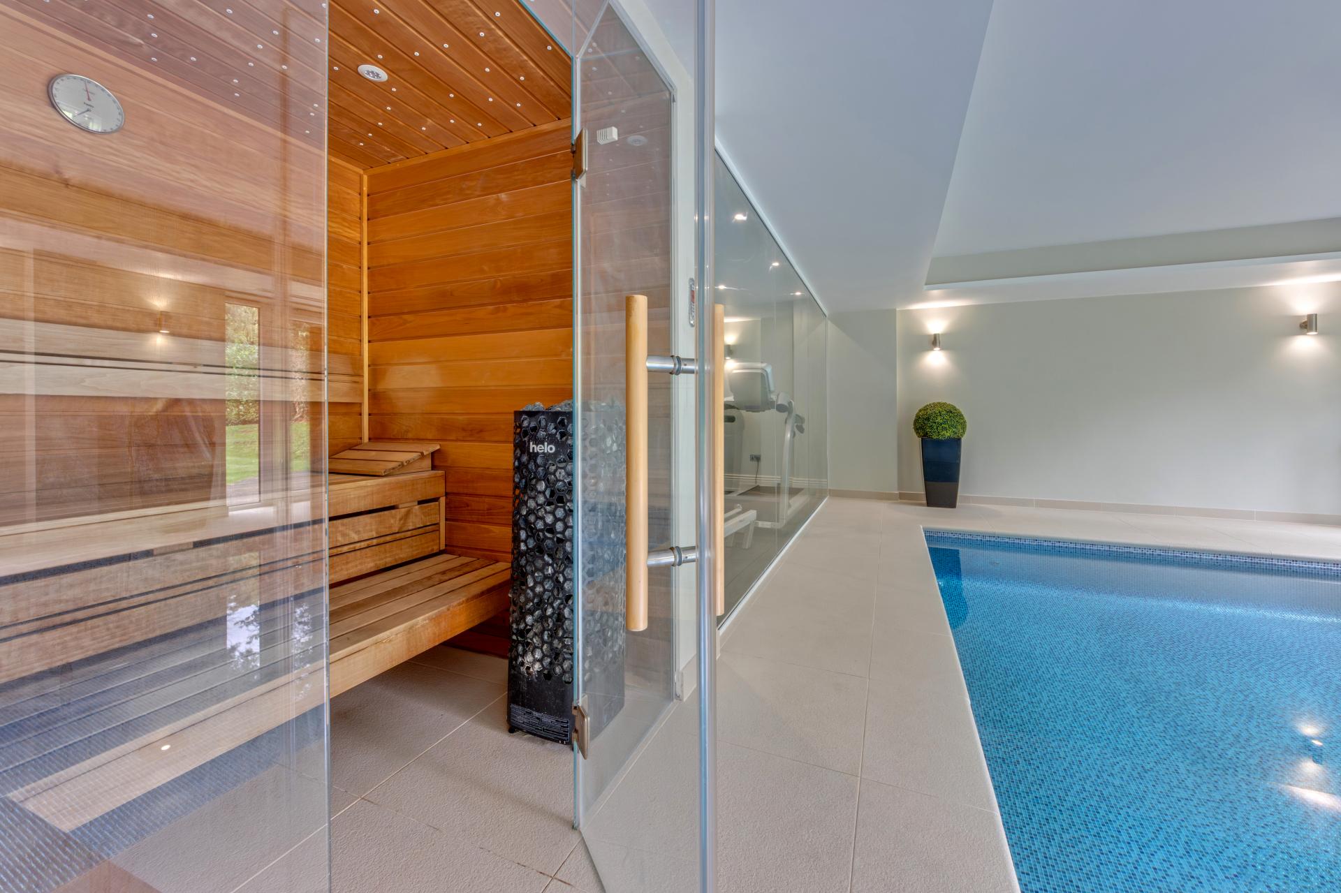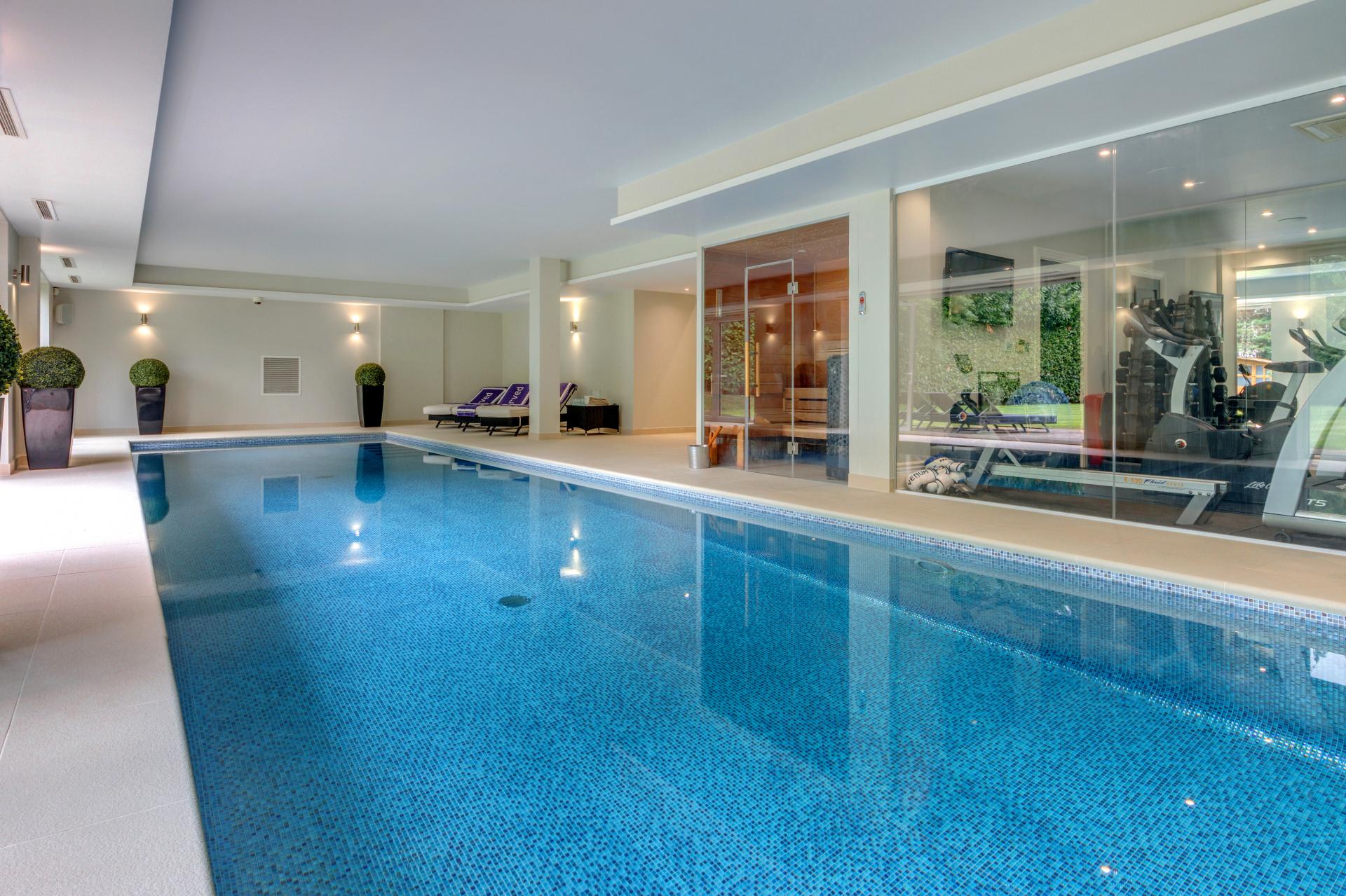 The lower ground floor is a haven for relaxation and recreation, featuring a state-of-the-art cinema room, a fully equipped gym, a sauna, and an extraordinary 53-foot indoor swimming pool with bi-fold doors that open onto the landscaped gardens. Additional facilities on this level include a shower room, WC, boiler room, and utility area.