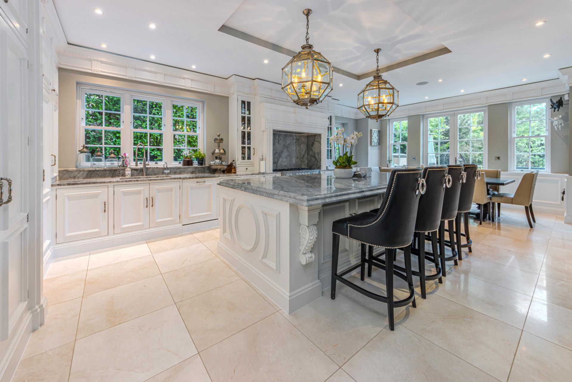 The ground floor is thoughtfully designed for both family living and entertaining, boasting three elegant reception rooms, a large study, a stunning kitchen/breakfast room, and a guest cloakroom. There is also a separate annex with its own kitchen, providing flexibility for guests or extended family.