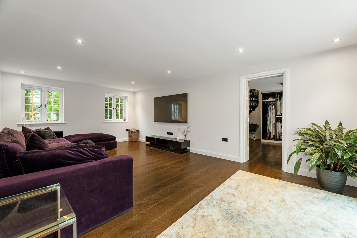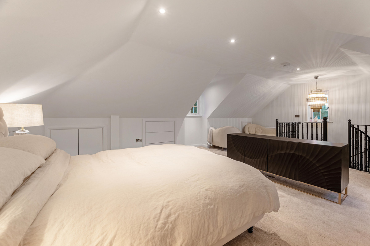This wing includes a bespoke integrated dressing room, a luxurious four-piece bathroom, and a large triple-aspect first-floor bedroom accessed by a unique cast-iron spiral staircase. Perfectly designed as part of the main home or as an independent annexe, this space is ideal for multi-generational living.