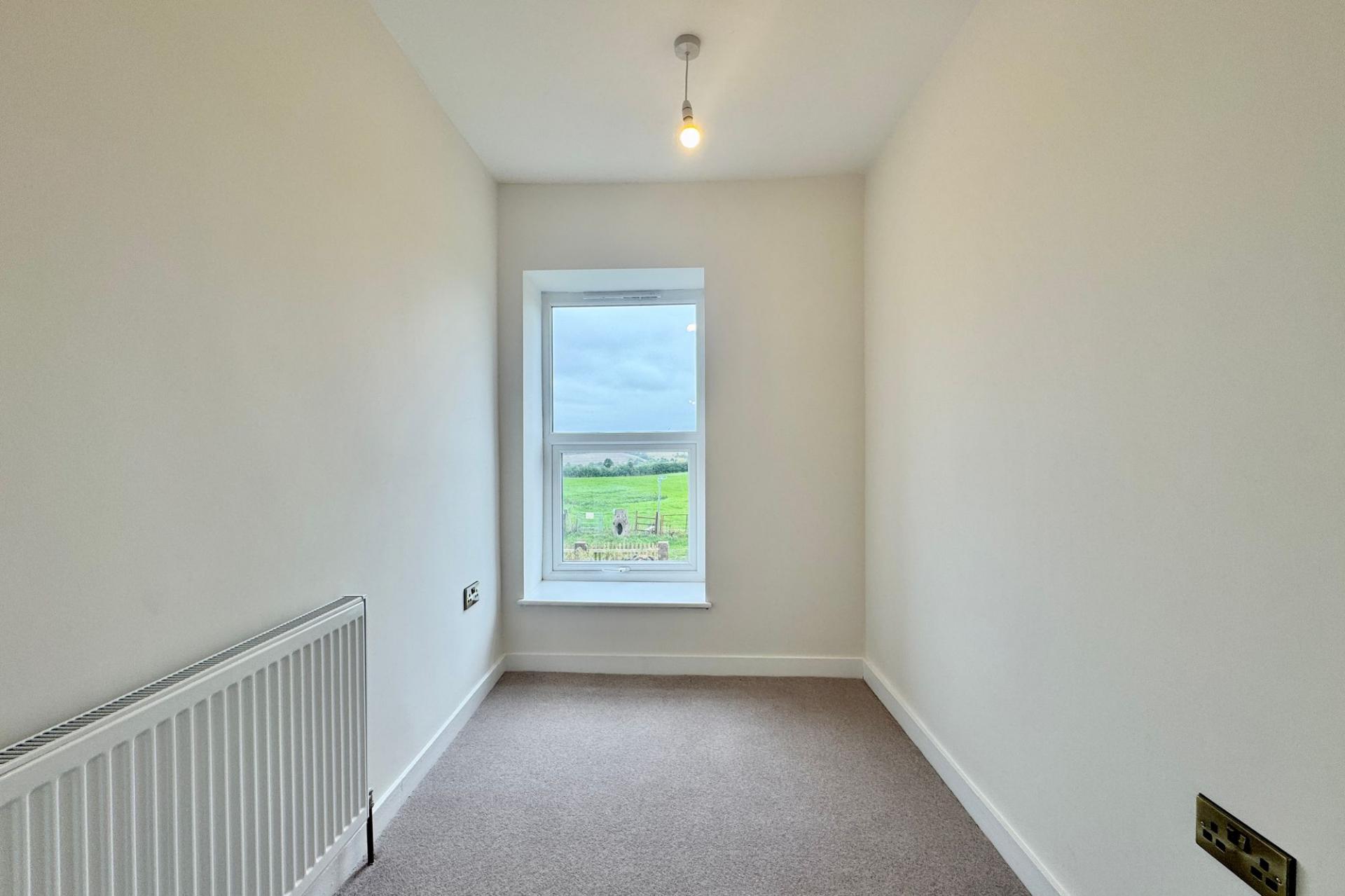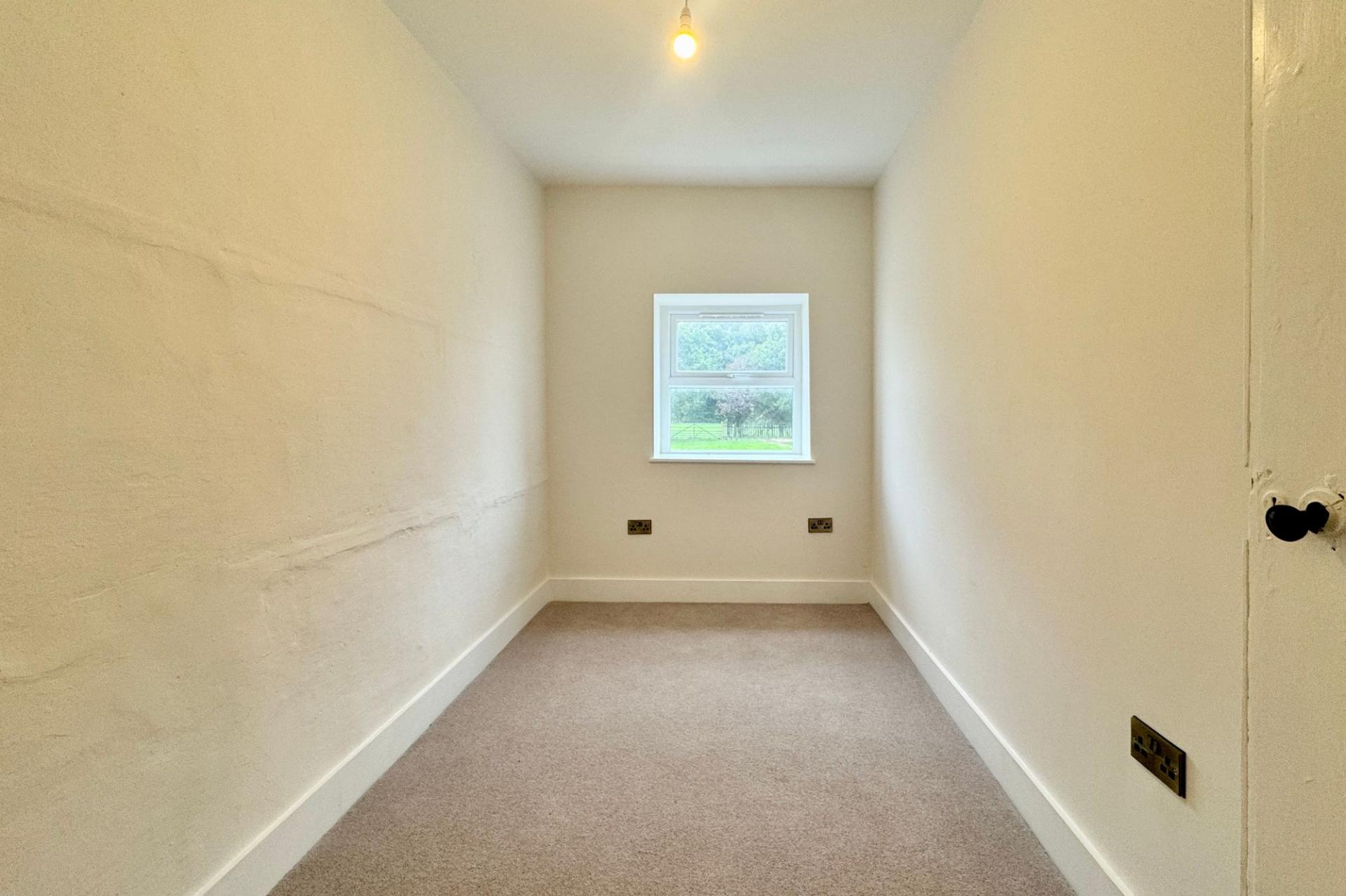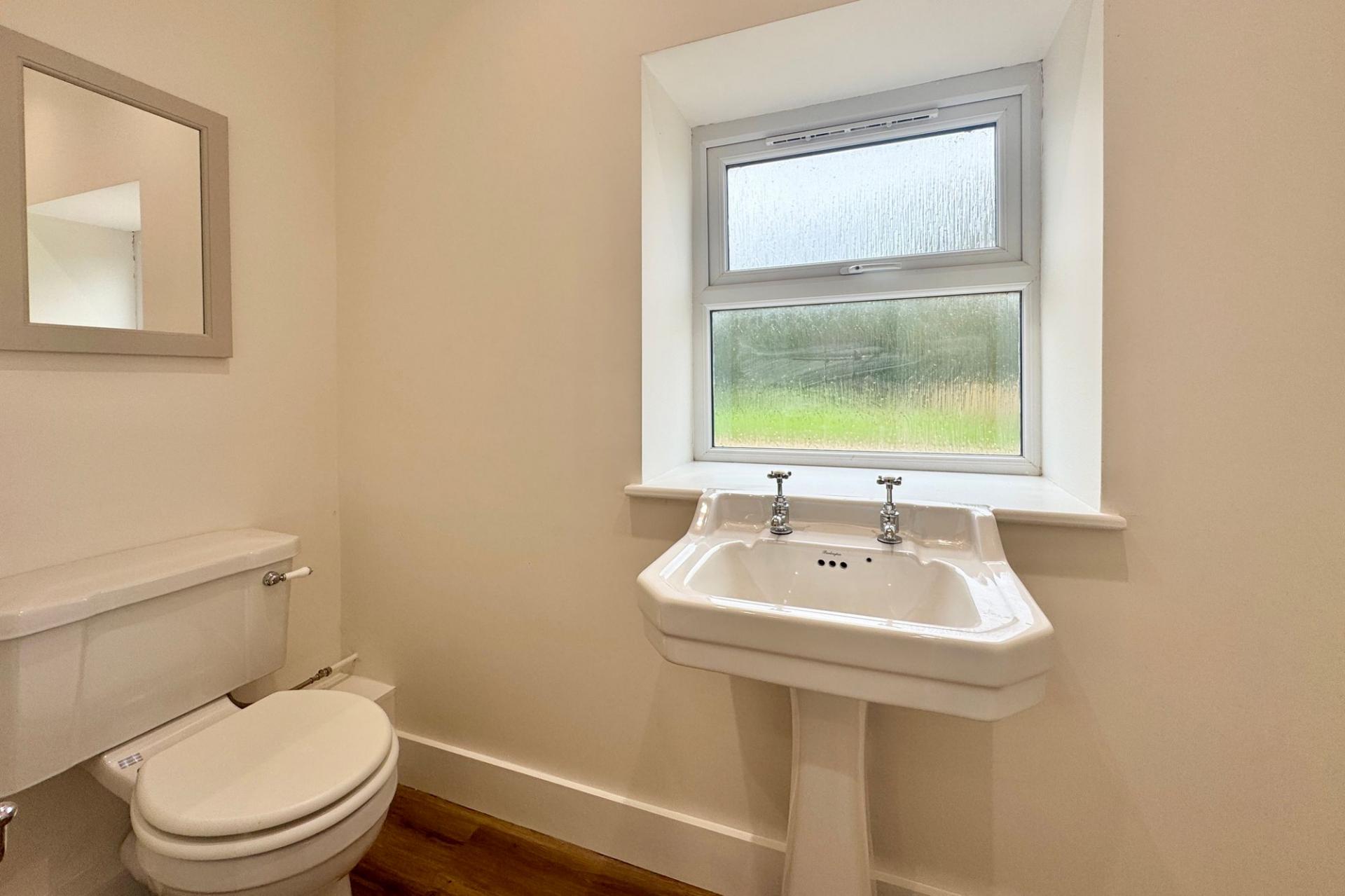 Ascending from the entrance hall, a staircase rises to the first-floor landing where five well-proportioned bedrooms and a newly refitted family bathroom are arranged. The principal bedroom and second bedroom, both positioned to the front of the residence, offer excellent accommodation and take full advantage of the elevated countryside views. Bedroom three is another generous double, enhanced with ample built-in storage, while bedroom four also provides comfortable double proportions. A fifth bedroom, also enjoying views to the front, offers flexibility as a nursery or an ideal home office. Completing the first floor is the stylishly refitted family bathroom, fitted with a contemporary four-piece suite comprising a wash hand basin with storage below, low-level W.C., panelled bath, and a separate shower cubicle.