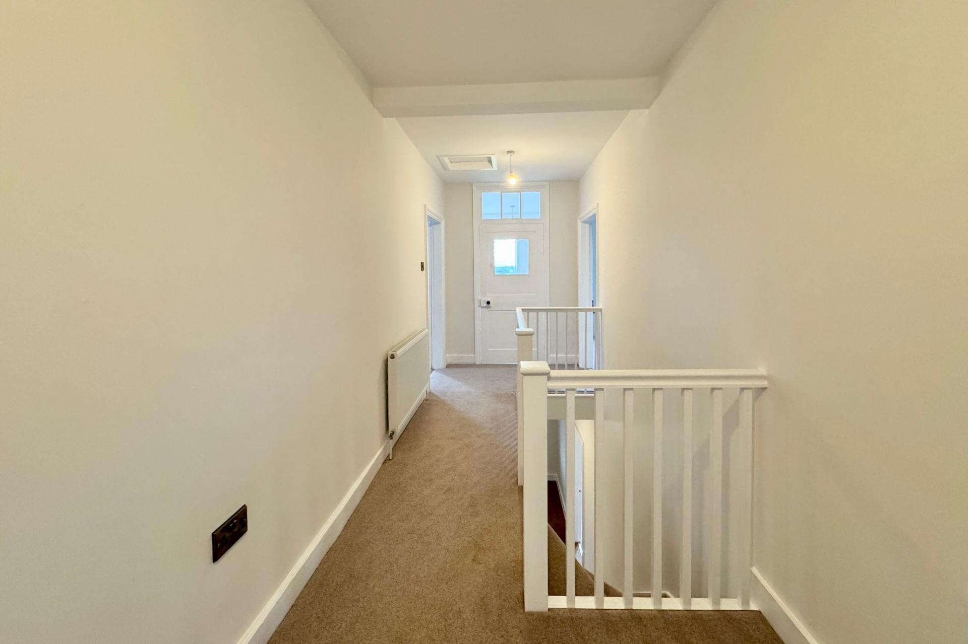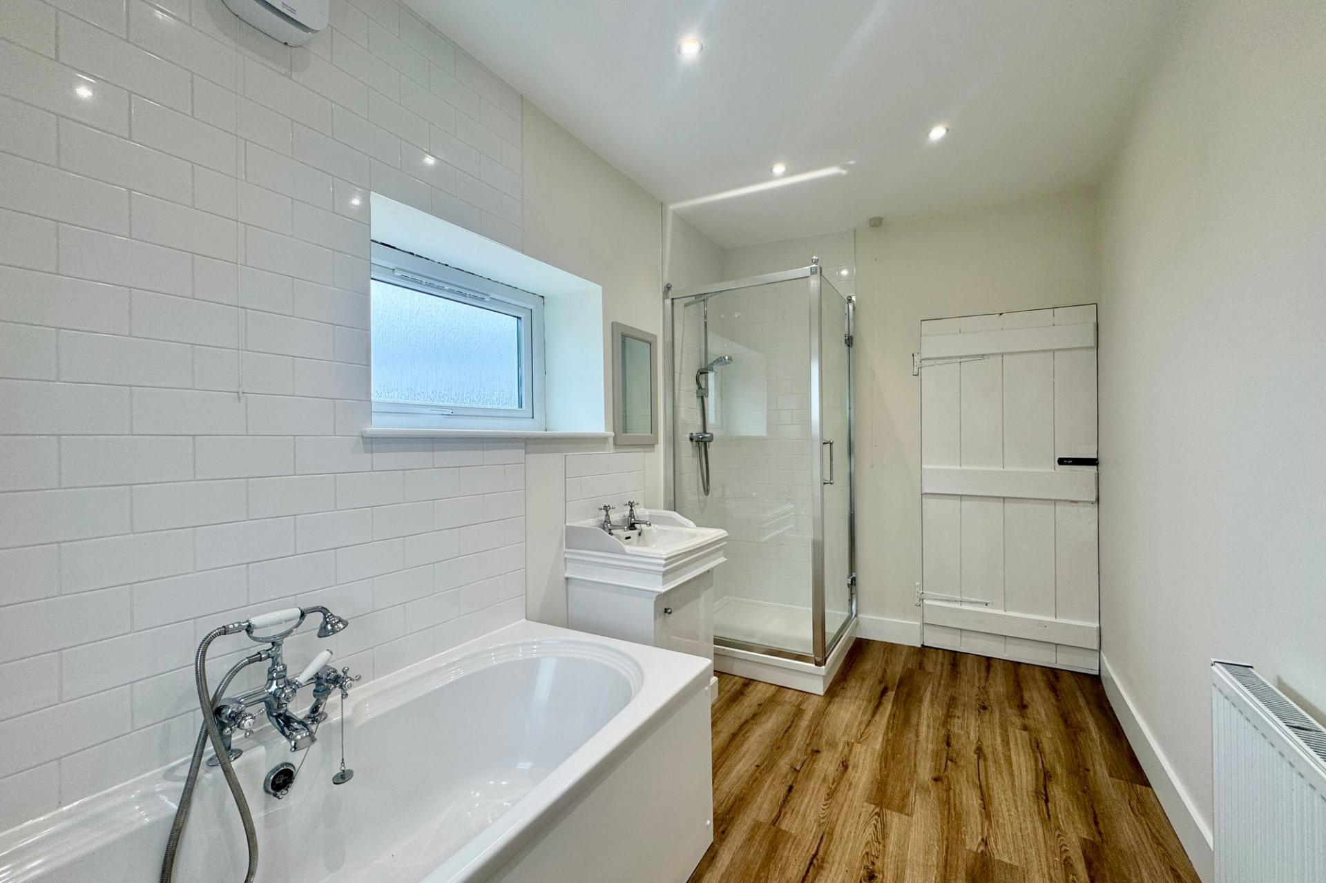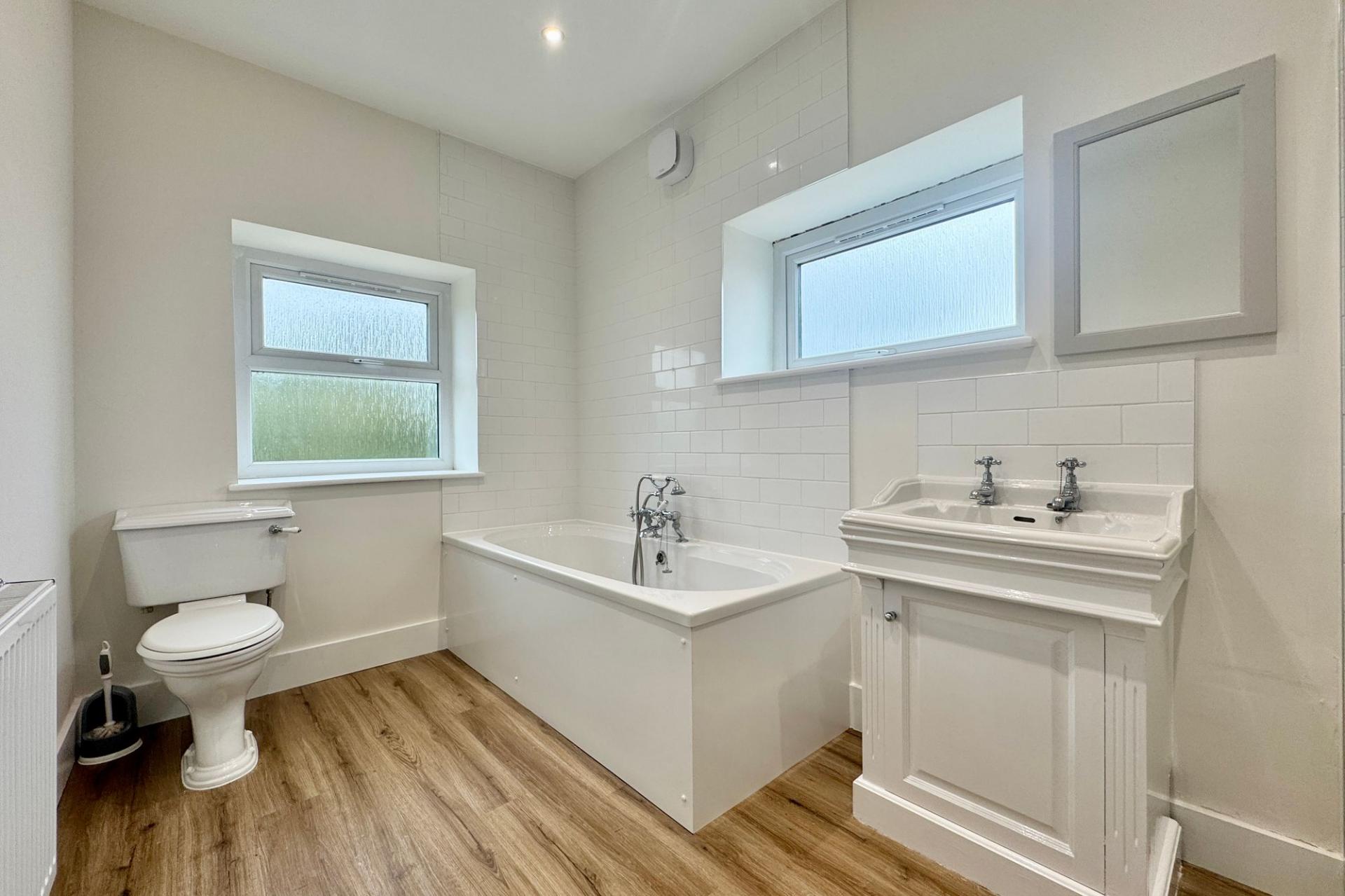 Ascending from the entrance hall, a staircase rises to the first-floor landing where five well-proportioned bedrooms and a newly refitted family bathroom are arranged. The principal bedroom and second bedroom, both positioned to the front of the residence, offer excellent accommodation and take full advantage of the elevated countryside views. Bedroom three is another generous double, enhanced with ample built-in storage, while bedroom four also provides comfortable double proportions. A fifth bedroom, also enjoying views to the front, offers flexibility as a nursery or an ideal home office. Completing the first floor is the stylishly refitted family bathroom, fitted with a contemporary four-piece suite comprising a wash hand basin with storage below, low-level W.C., panelled bath, and a separate shower cubicle.