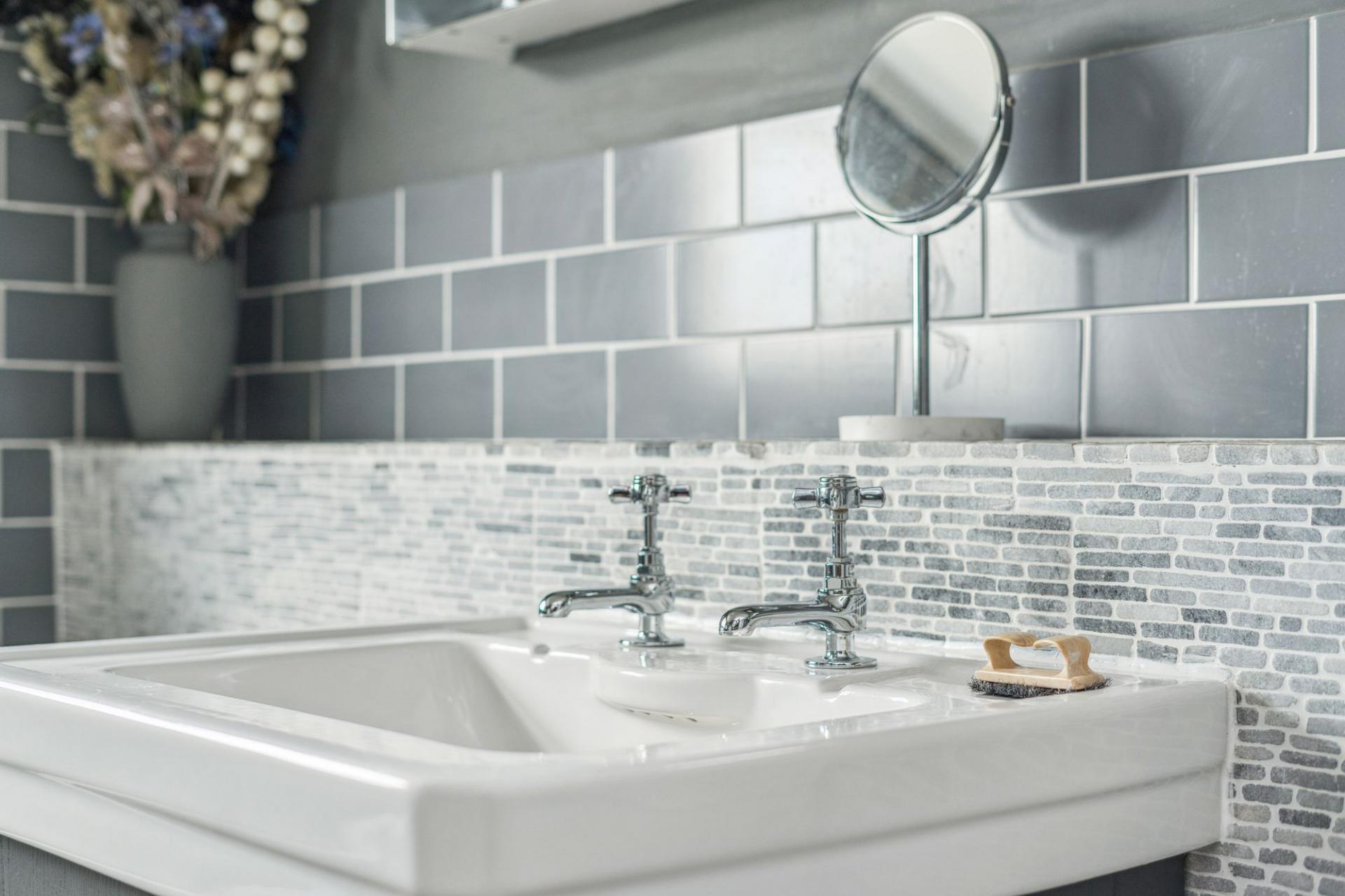 Completing the first floor is the stylishly modernised bathroom, finished to a high standard with contemporary tiling. It features a low-level WC, a vanity wash hand basin with built-in storage, a large walk-in shower cubicle, and a separate panelled bath—perfect for unwinding at the end of the day.