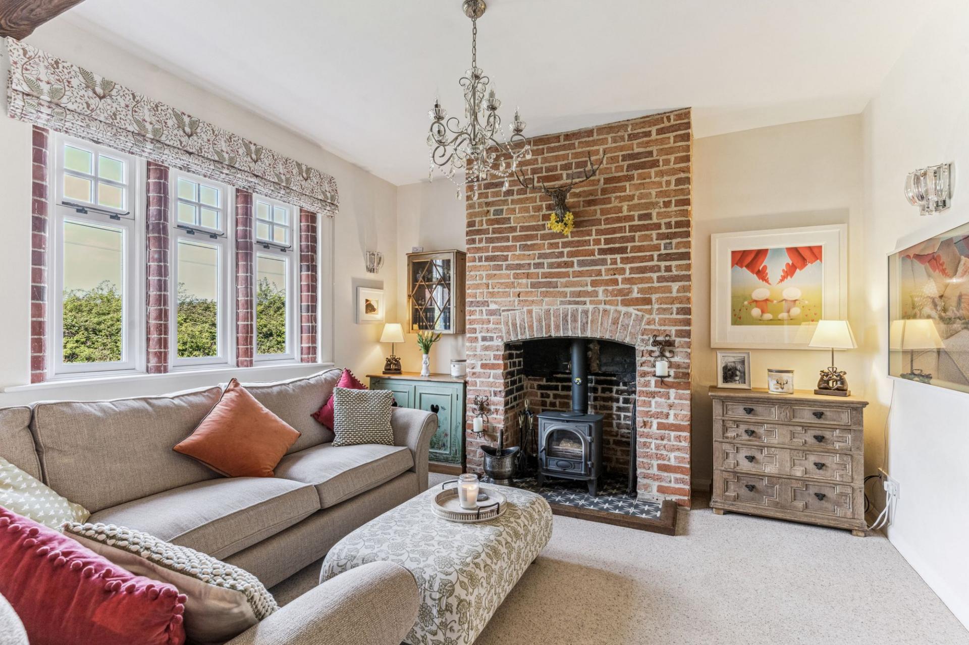 - Inviting Sitting Room with Striking Feature Brick Fireplace