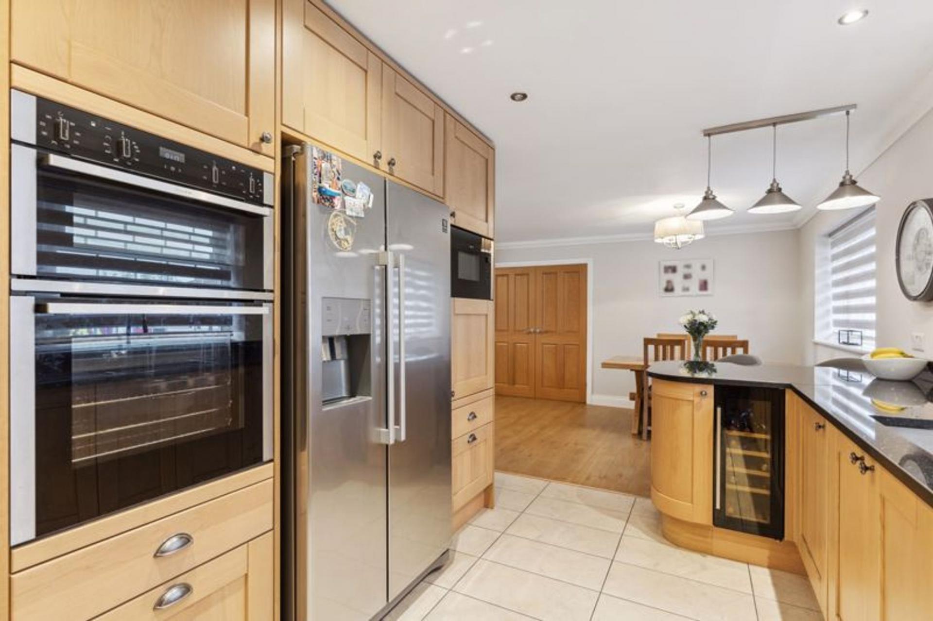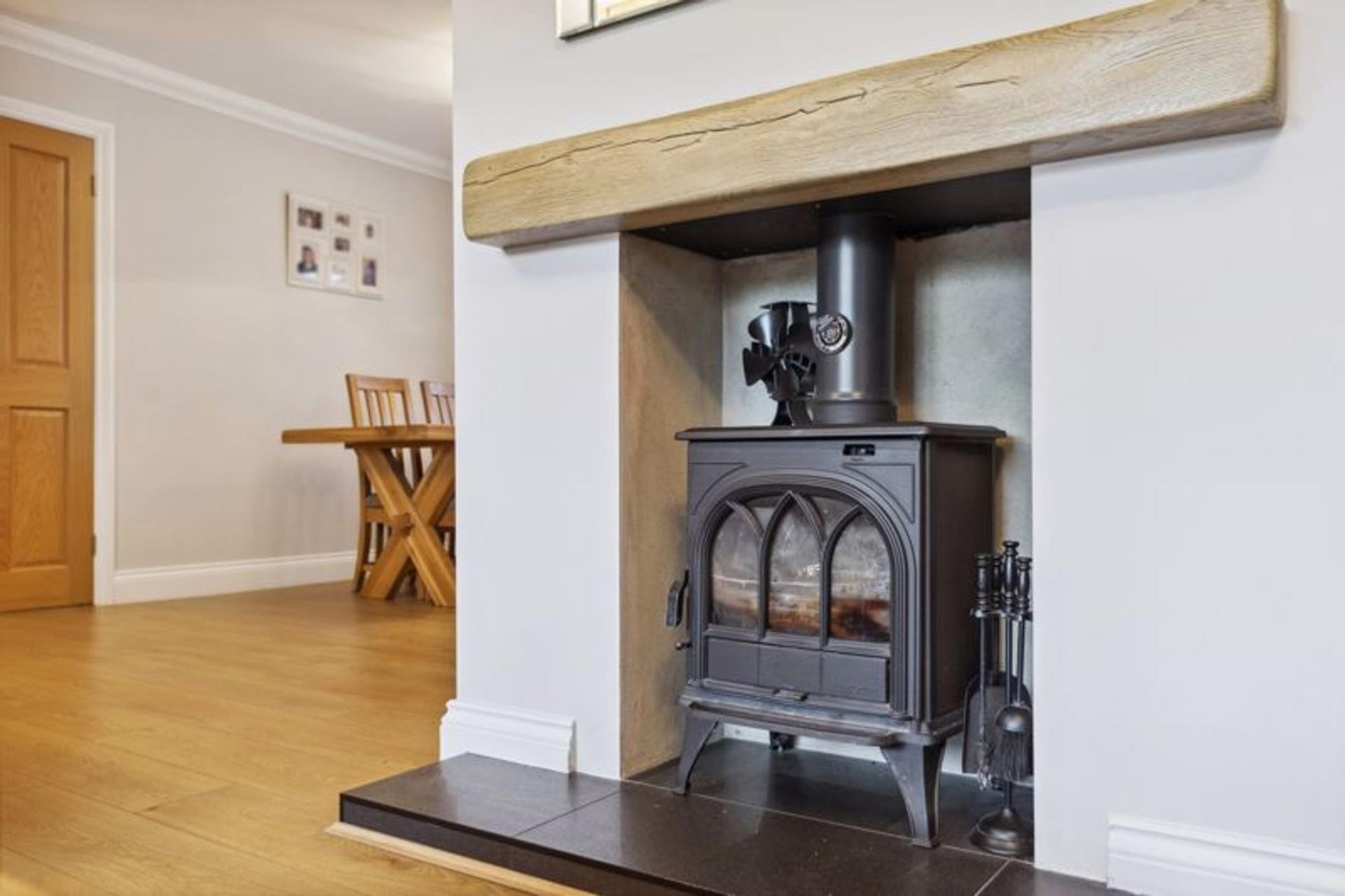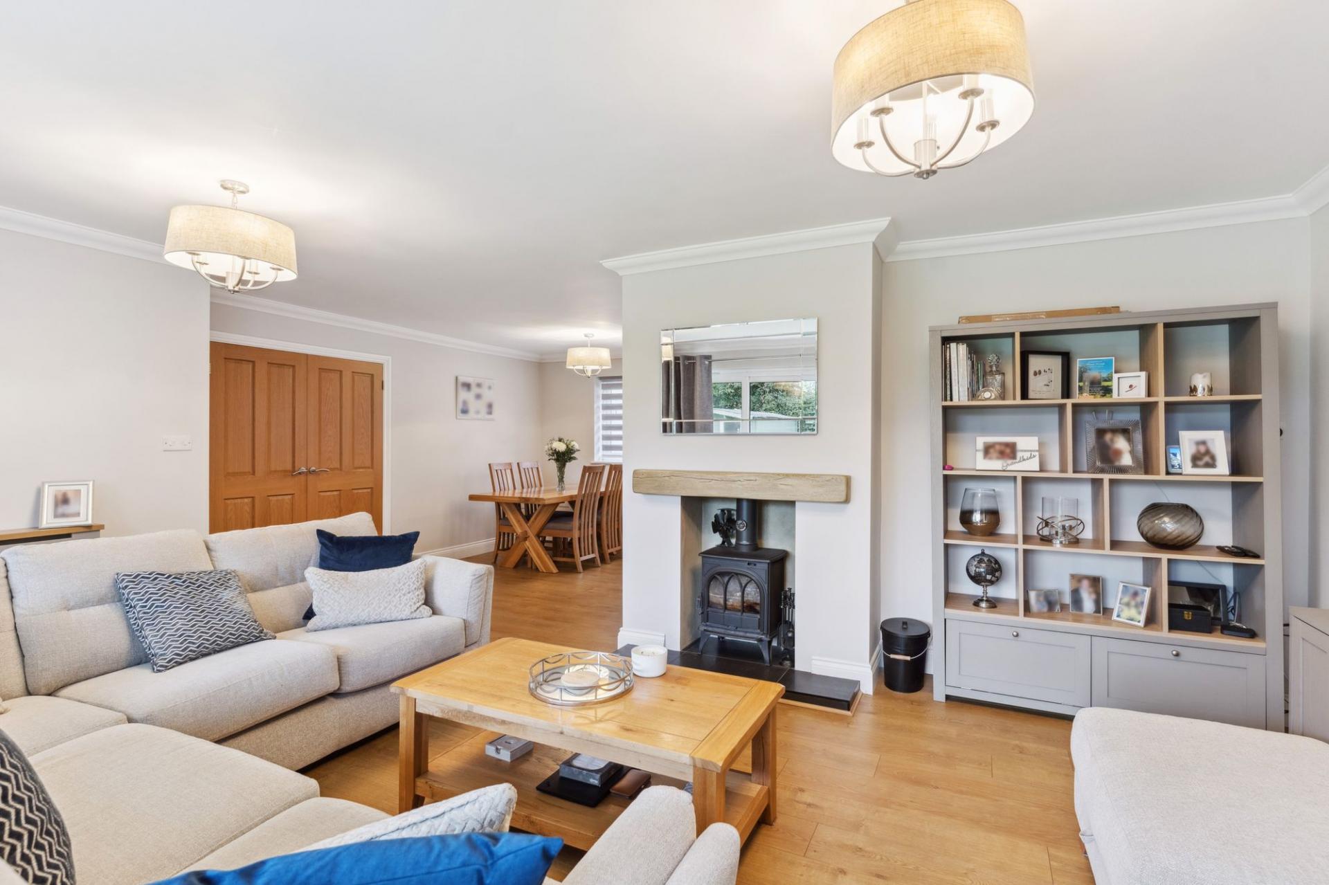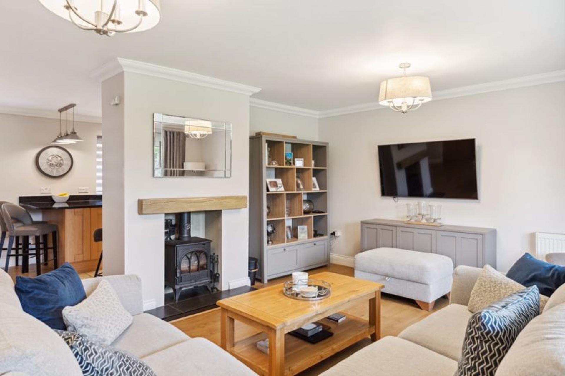 As you step into this modern detached bungalow, a welcoming entrance hall unfolds, guiding you to the heart of the home as well as three spacious double bedrooms and a beautifully designed family bathroom. Just off the entrance hall, double door opens to reveal an exquisite, light-filled open-plan living/dining/kitchen area with dual aspects. The sitting room is graced with views of the tranquil, private rear garden through sliding patio doors, seamlessly merging indoor and outdoor spaces—ideal for both relaxation and entertaining. A cosy log-burning stove completes the space, infusing warmth and character. Flowing effortlessly from the sitting room, the elegantly appointed kitchen and dining area sit at the front of the residence, creating an inviting space for formal and social gatherings. The kitchen is beautifully fitted with a selection of bespoke built-in units, incorporating a sleek double oven with gas hob, integrated dishwasher, and wine cooler, alongside space for a fridge/freezer. A stylish breakfast bar completes the space, perfect for casual dining or morning coffee in this thoughtfully designed haven. To the end of the kitchen, a door leads to an inner hallway that leads to a separate shower room as well as access out to the rear private garden. At the far end of the kitchen, a door opens to an inner hallway, providing access to a separate fitted shower room and leading to a rear entrance that opens directly onto the peaceful, private garden.