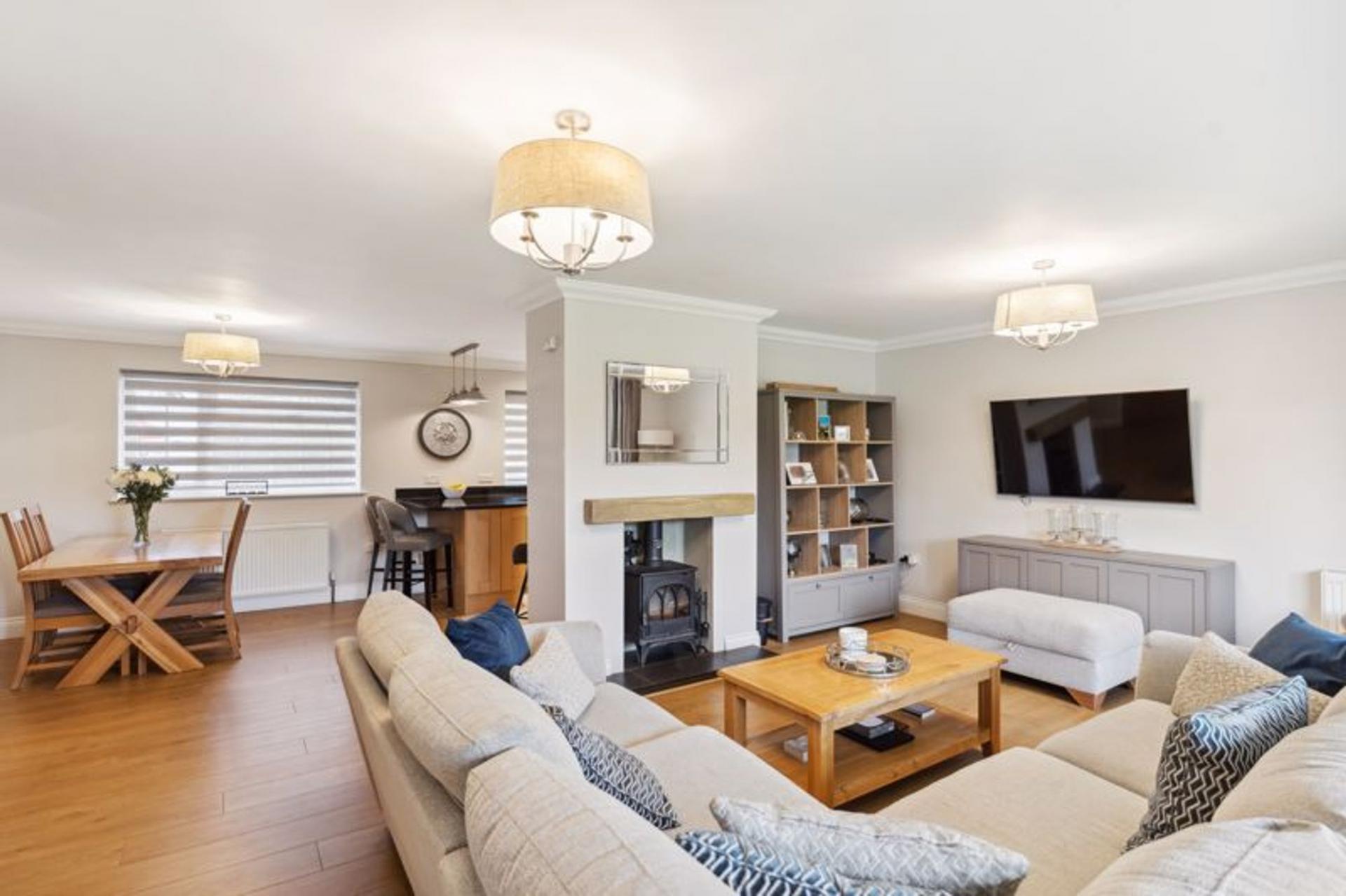 Nestled behind secure electric gates, this beautifully renovated three double bedroom detached bungalow on Dovehouse Lane offers more than 1880 sq. ft. of spacious living space. Extended and modernised by the current owners to an exceptional standard, this welcoming family home centres around a spacious open plan living area, complete with a cosy log burning stove for added warmth. Further features within this detached residence include three generous double bedrooms, with the master bedroom boasting a chic en-suite shower room, a remodelled family bathroom, and an additional separate shower room. Outside, a detached home office or summer house enhances the charm of the lovely south-facing private garden, providing an ideal setting for both work and relaxation. In addition, a double width garage with a convenient utility area spans over 22ft. in length offers offers a fantastic opportunity for further expansion to create additional living space, subject to the necessary planning consents.
