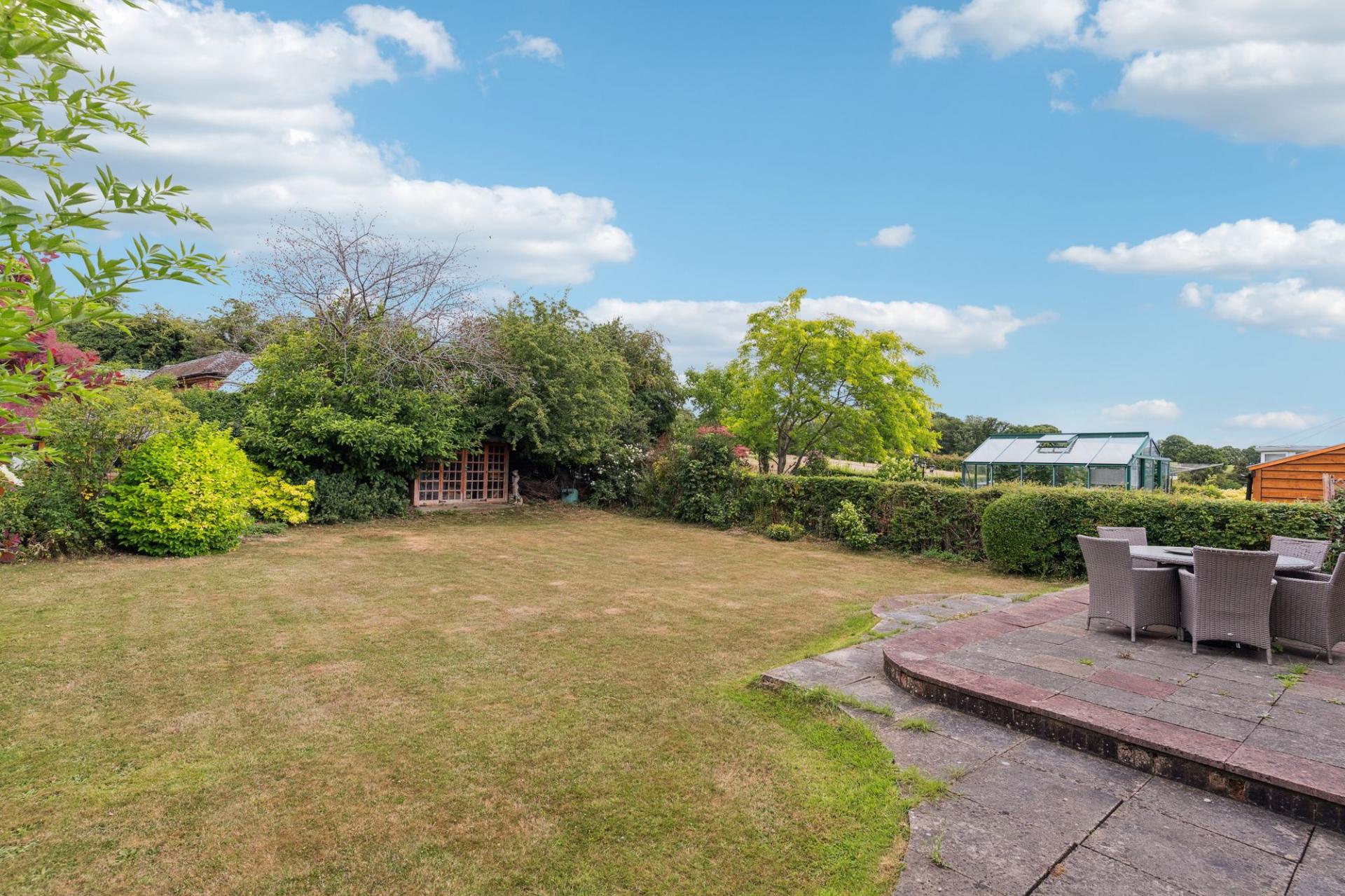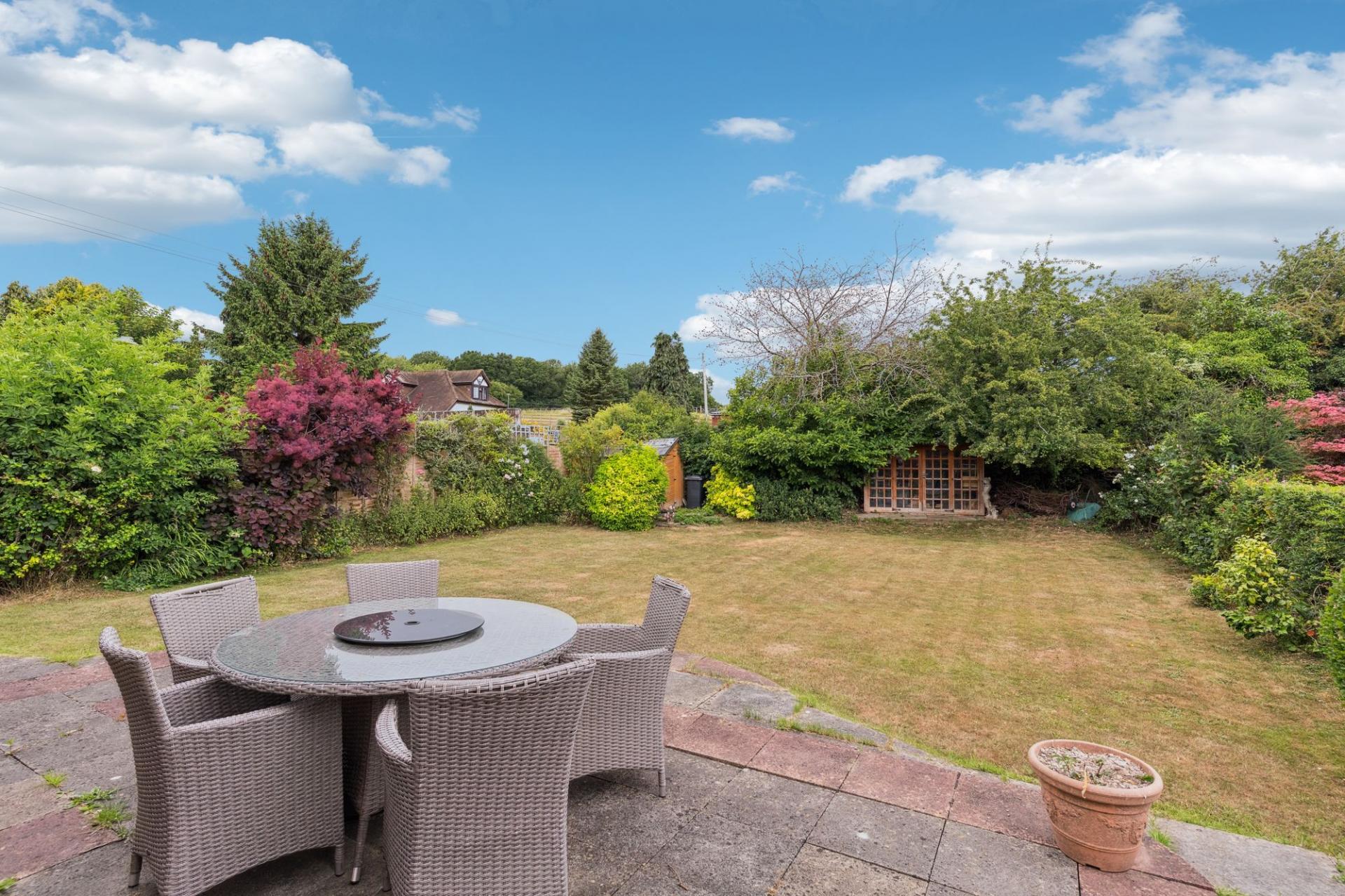 Outside, the property enjoys a sizeable private rear garden, mainly laid to lawn with mature hedging providing excellent privacy. A raised patio area directly accessed from the house is ideal for alfresco dining and outdoor entertaining. The front garden features lawn and block paving, offering ample off-street parking, while picturesque views over Studham Common further enhance the home’s tranquil appeal.