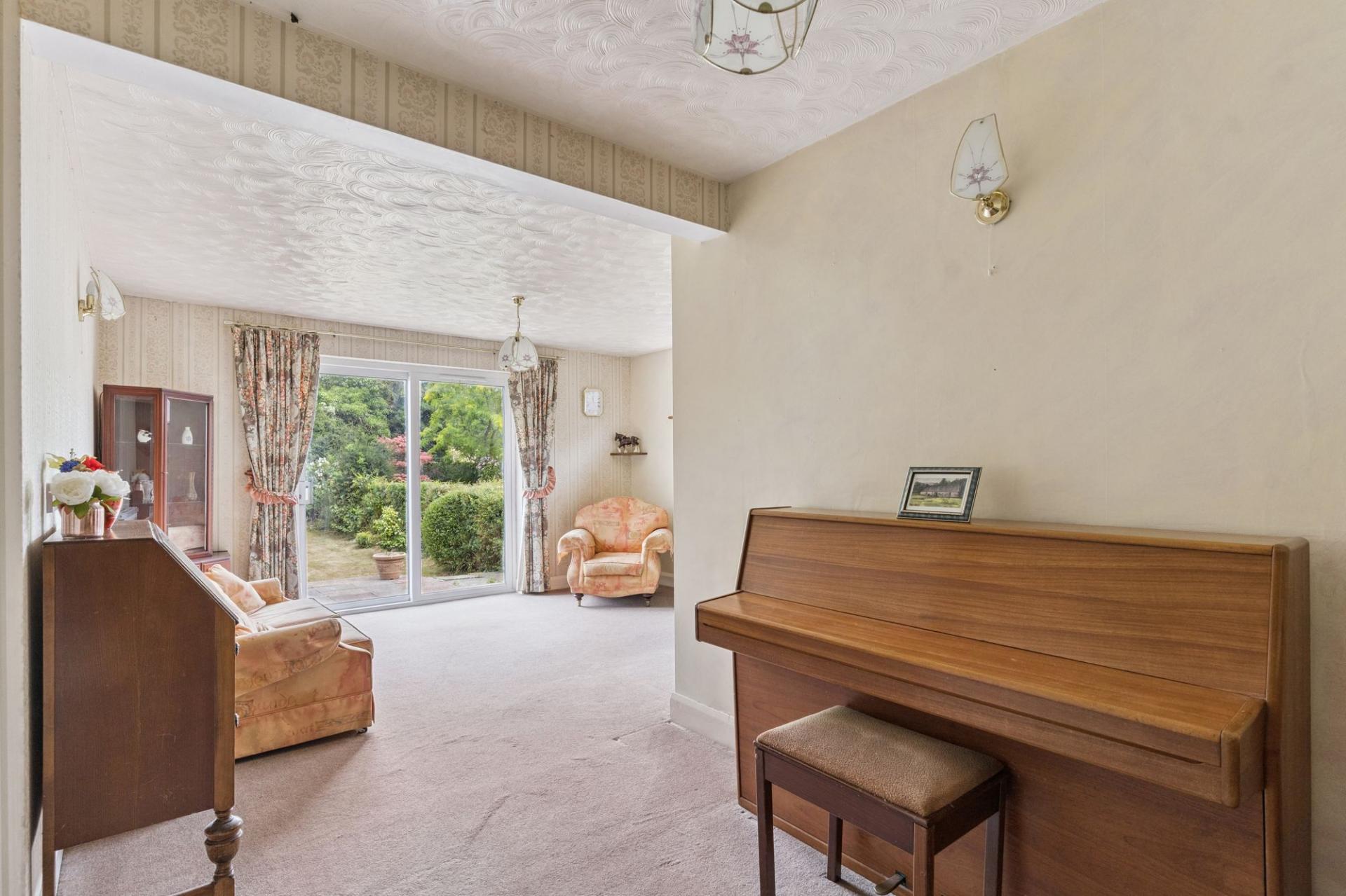 To the rear, a separate kitchen links to a utility room, with potential to reconfigure into a more open-plan layout suited to modern tastes. A further large reception room—currently used as a family room or potential fourth double bedroom—opens directly onto the garden, offering flexible living options.