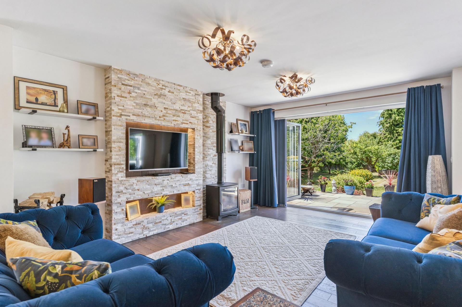 The open-plan living area brings together the lounge, dining space, and kitchen, creating a bright and inviting area for daily living and socialising. Large bi-fold doors open directly to the back garden, creating an effortless connection between indoors and outdoors, ideal for relaxing or hosting gatherings during the warmer months.