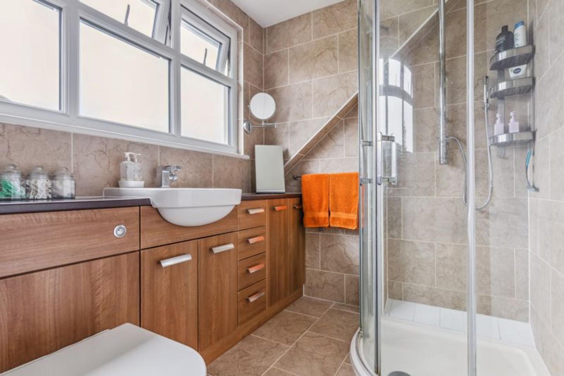 Positioned at the front of the family home, bedrooms two and three are conveniently accessed from the main entrance hall. Both rooms provide spacious double sized accommodations, each offering views over the front aspect. The third bedroom also features a wall-mounted electric fireplace, making it a flexible space that can easily function as a family room or playroom. Completing the ground floor is a modern shower room, equipped with a low-level W.C., pedestal wash hand basin, and a shower cubicle for added convenience.