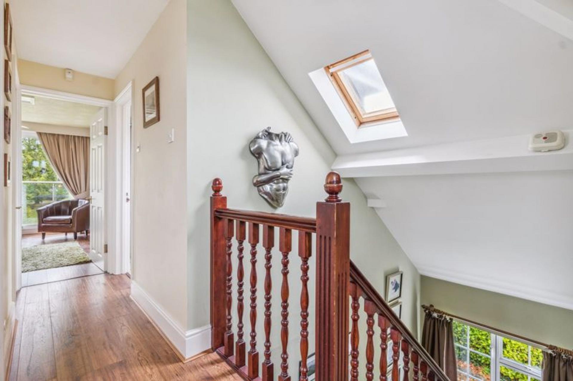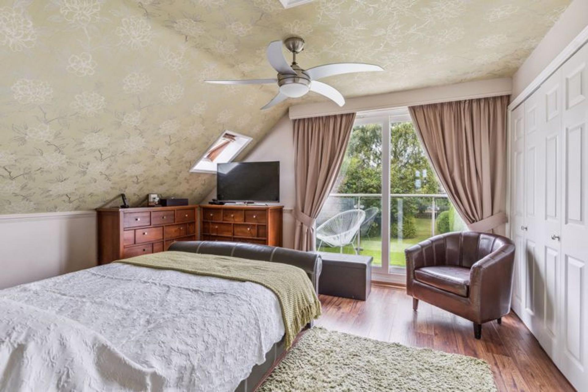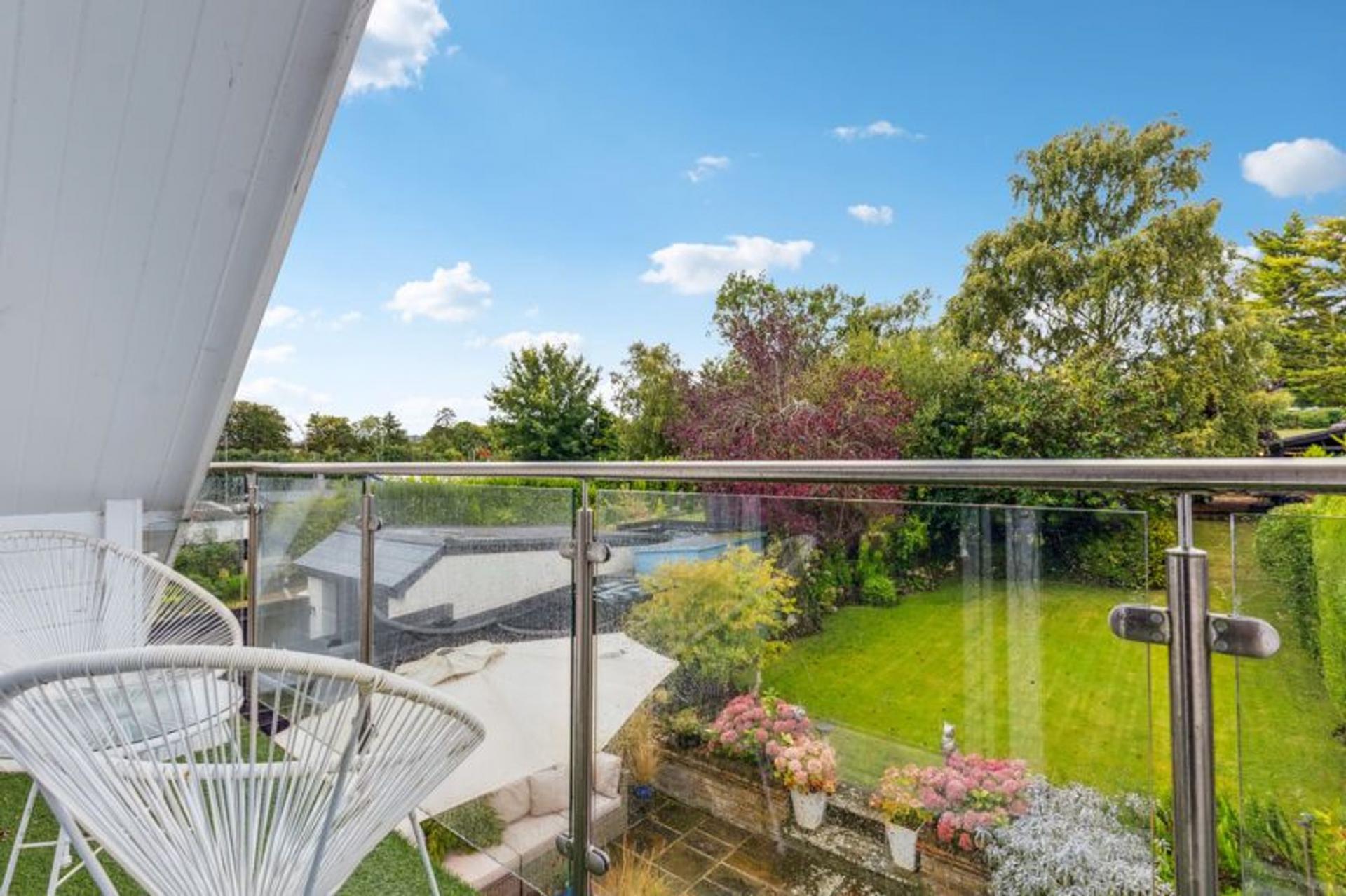 From the entrance hall, a staircase leads to the first-floor landing, which offers a generous, light-filled space perfect for a home office, with scenic views of the open countryside. The landing connects to the master bedroom, an impressive double-sized retreat featuring fitted wardrobes. Sliding double glazed patio doors open onto a Juliet balcony, offering a tranquil spot to enjoy morning coffee while taking in the peaceful views of the private garden and countryside beyond. The fourth bedroom is a well sized single room, ideal for use as a nursery, a child’s room, or even a walk-in dressing room. Completing the first floor is a beautifully refitted family bathroom, featuring floor-to-ceiling tiles, a low-level W.C., a vanity wash hand basin, a separate shower cubicle, and a tiled-panel bath with overhead spotlights—perfect for unwinding and relaxation.
