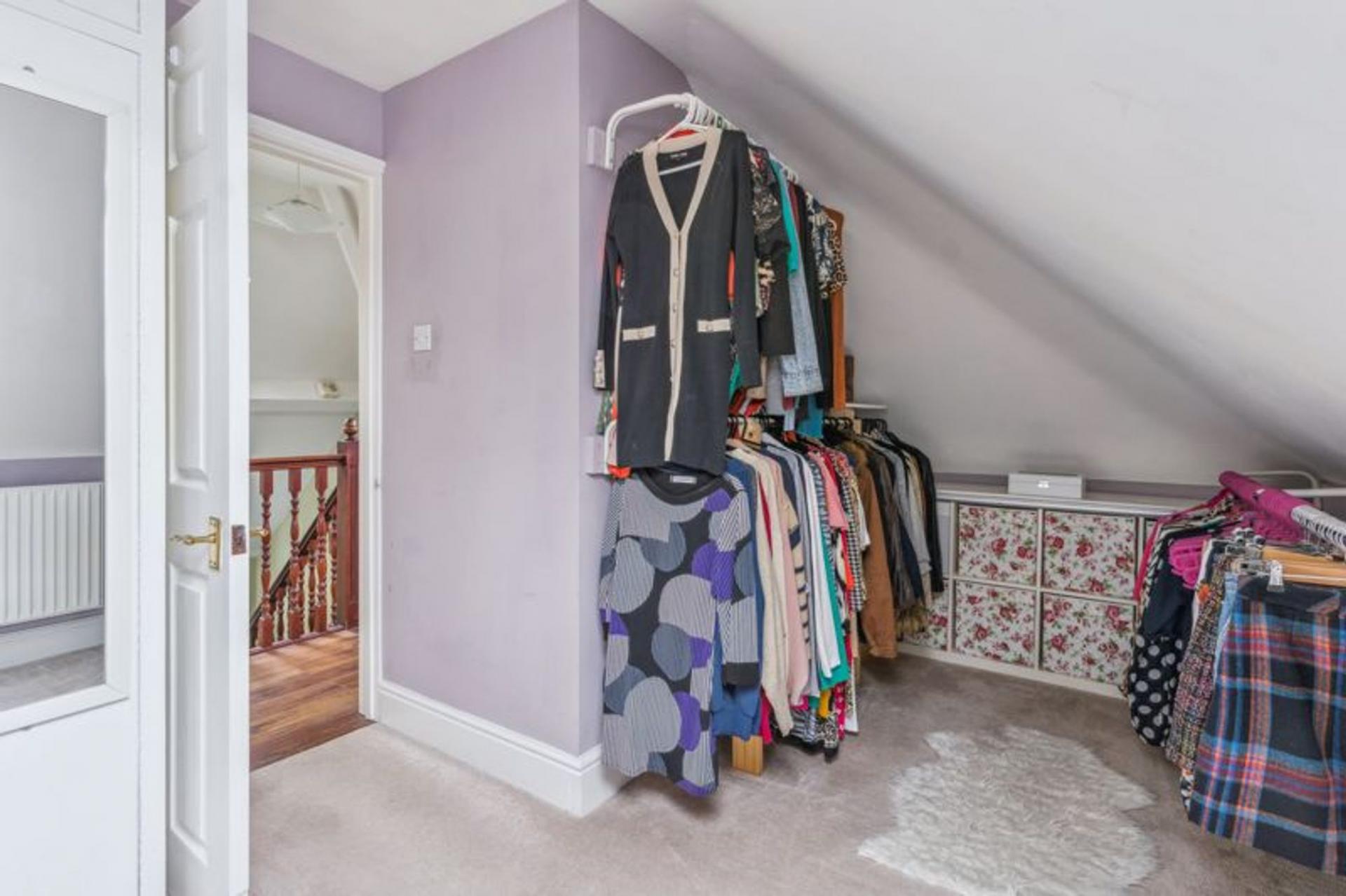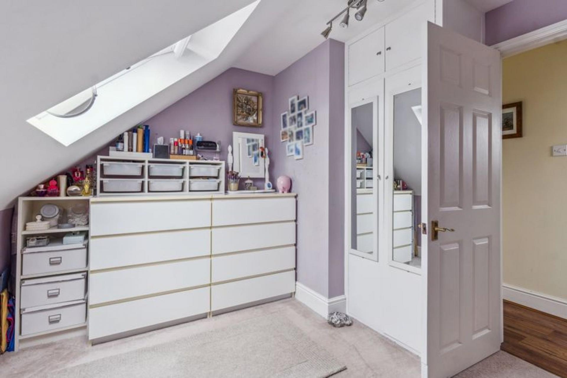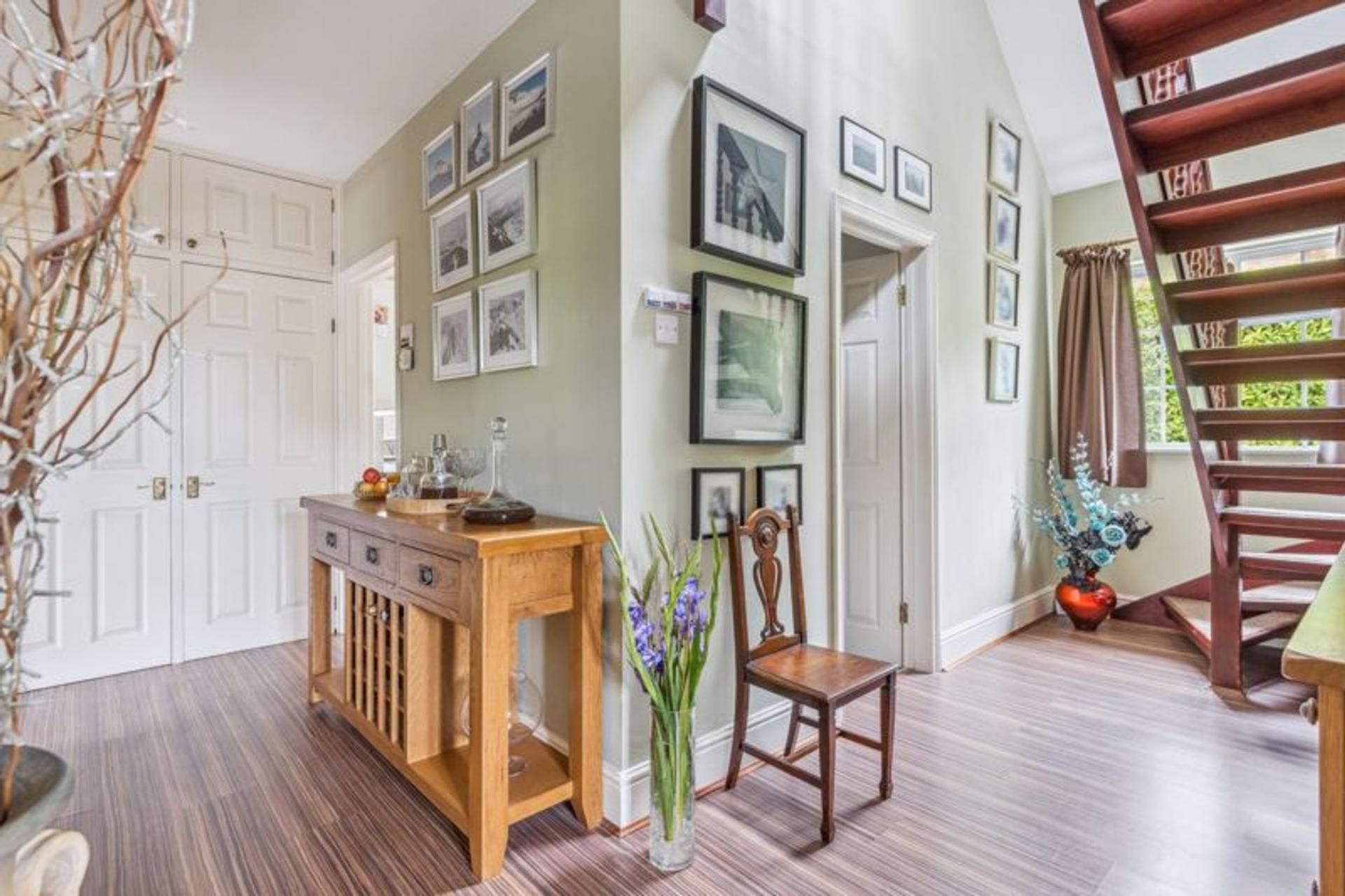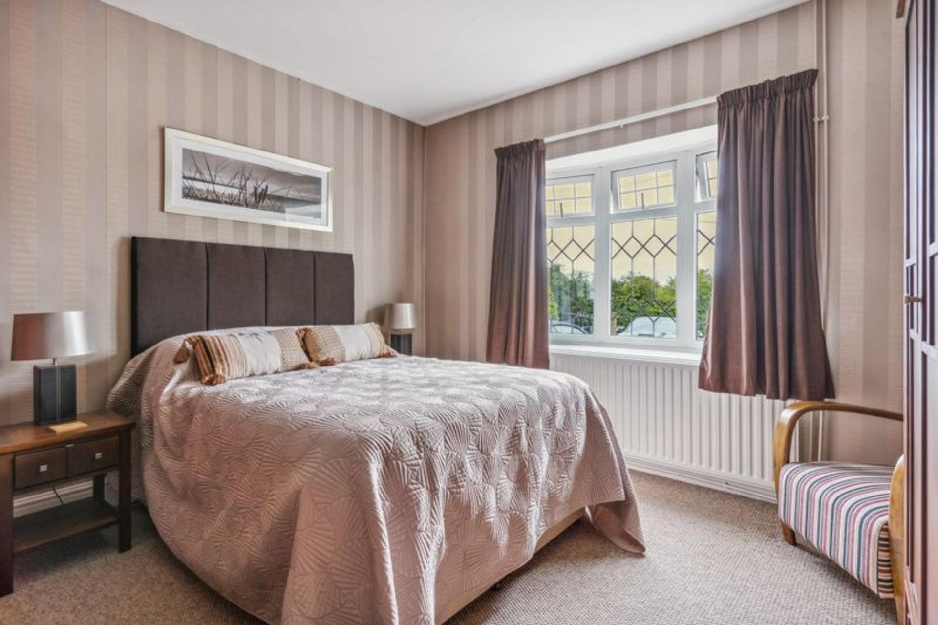 From the entrance hall, a staircase leads to the first-floor landing, which offers a generous, light-filled space perfect for a home office, with scenic views of the open countryside. The landing connects to the master bedroom, an impressive double-sized retreat featuring fitted wardrobes. Sliding double glazed patio doors open onto a Juliet balcony, offering a tranquil spot to enjoy morning coffee while taking in the peaceful views of the private garden and countryside beyond. The fourth bedroom is a well sized single room, ideal for use as a nursery, a child’s room, or even a walk-in dressing room. Completing the first floor is a beautifully refitted family bathroom, featuring floor-to-ceiling tiles, a low-level W.C., a vanity wash hand basin, a separate shower cubicle, and a tiled-panel bath with overhead spotlights—perfect for unwinding and relaxation.