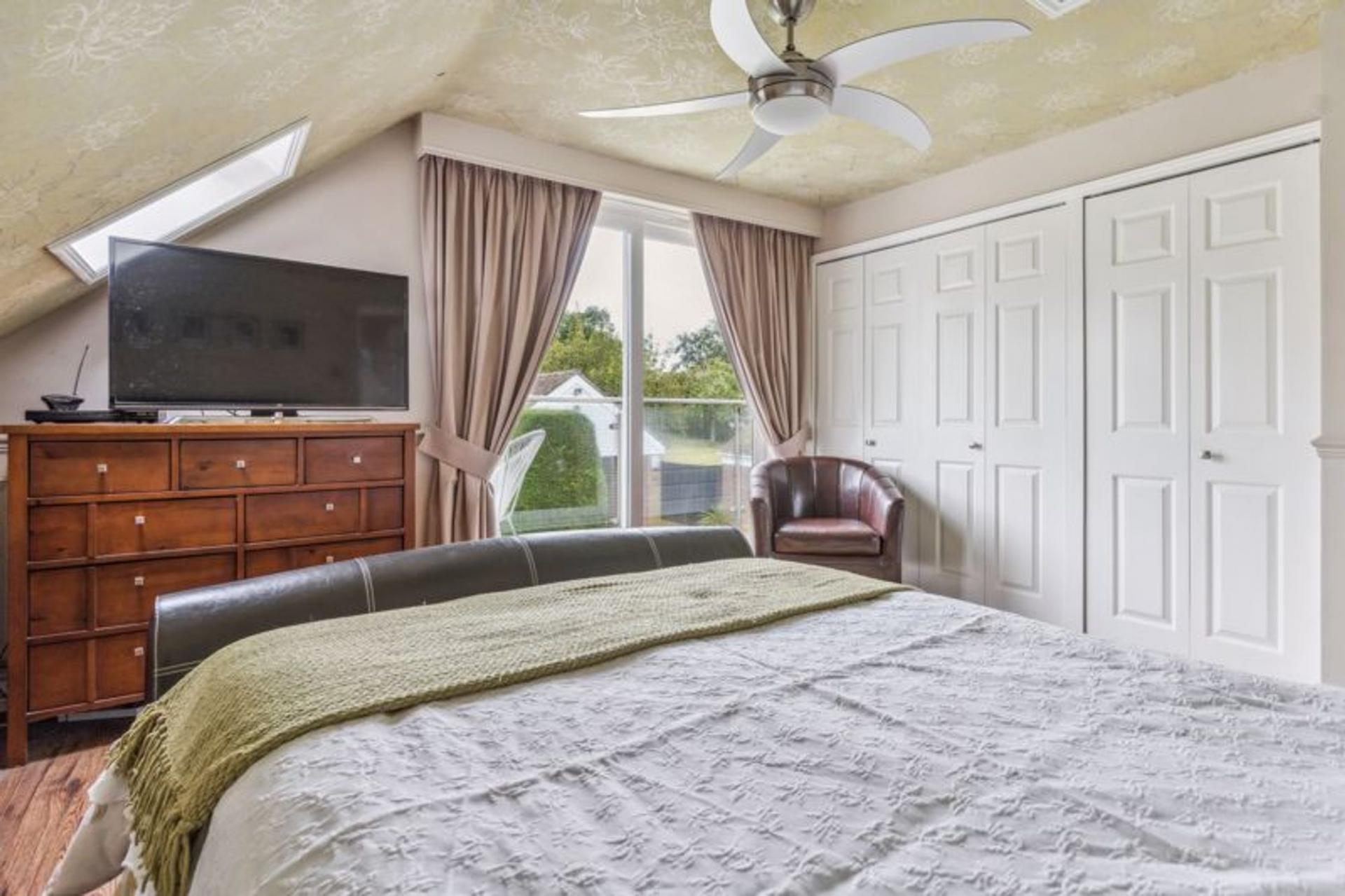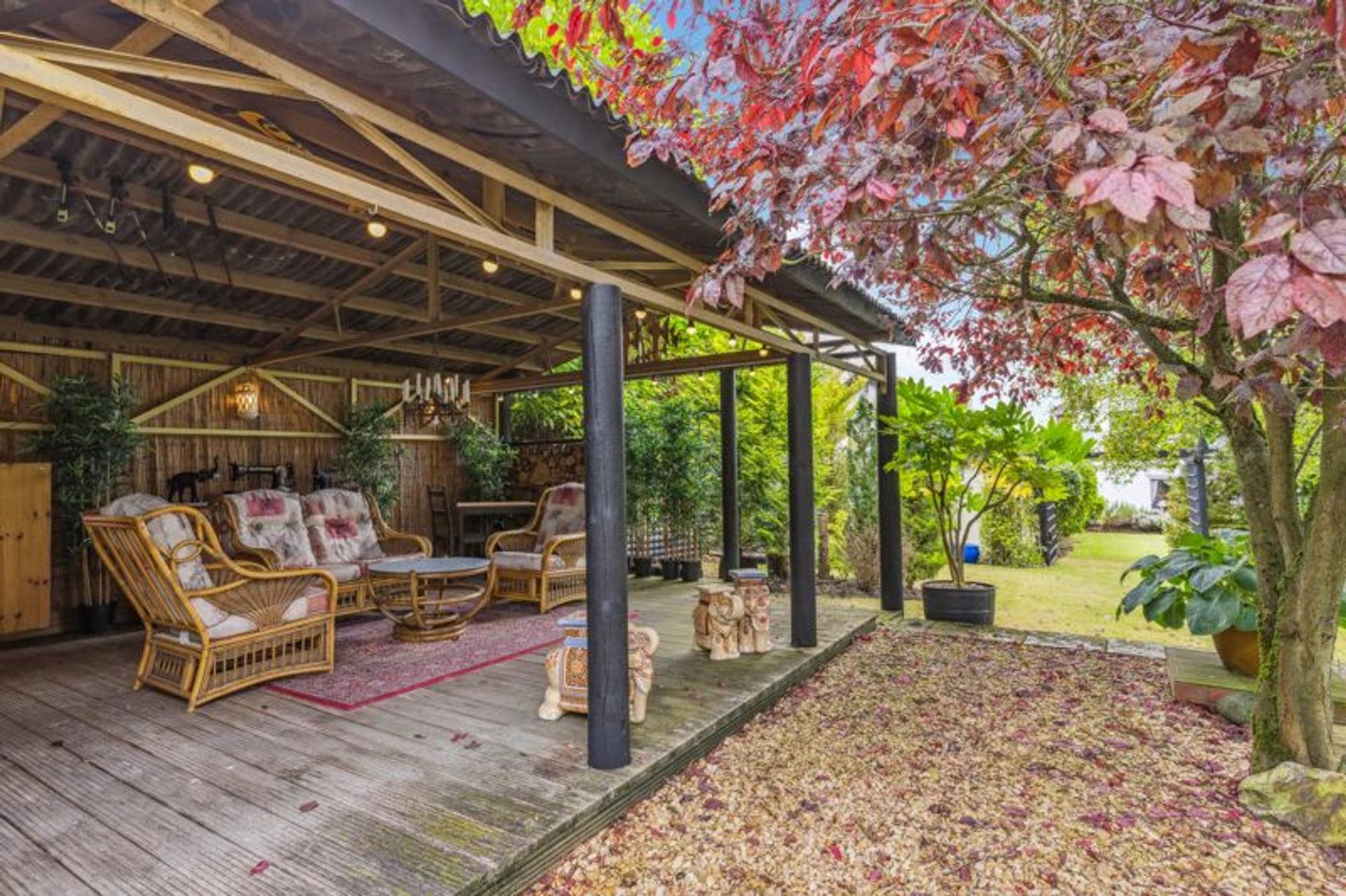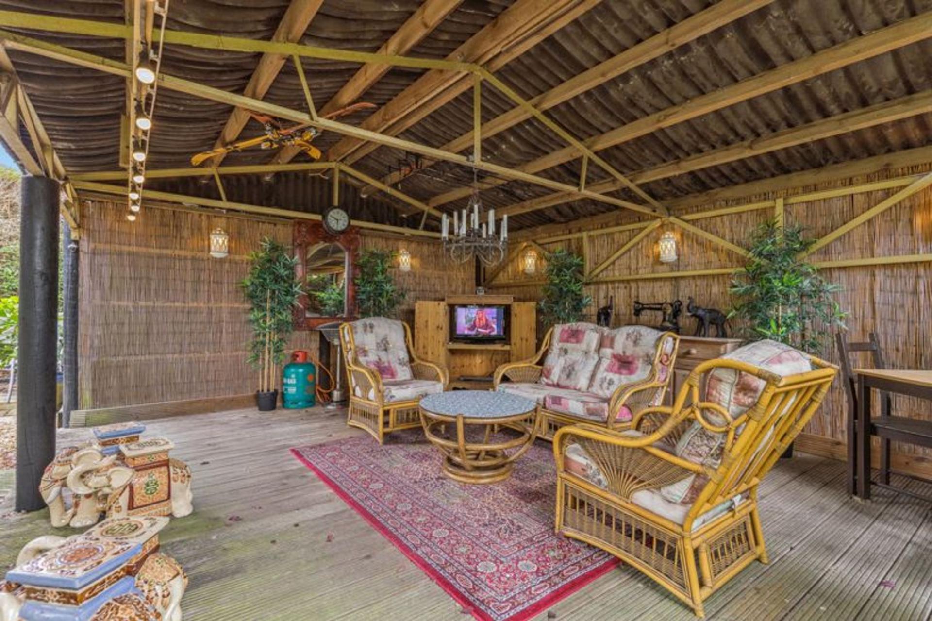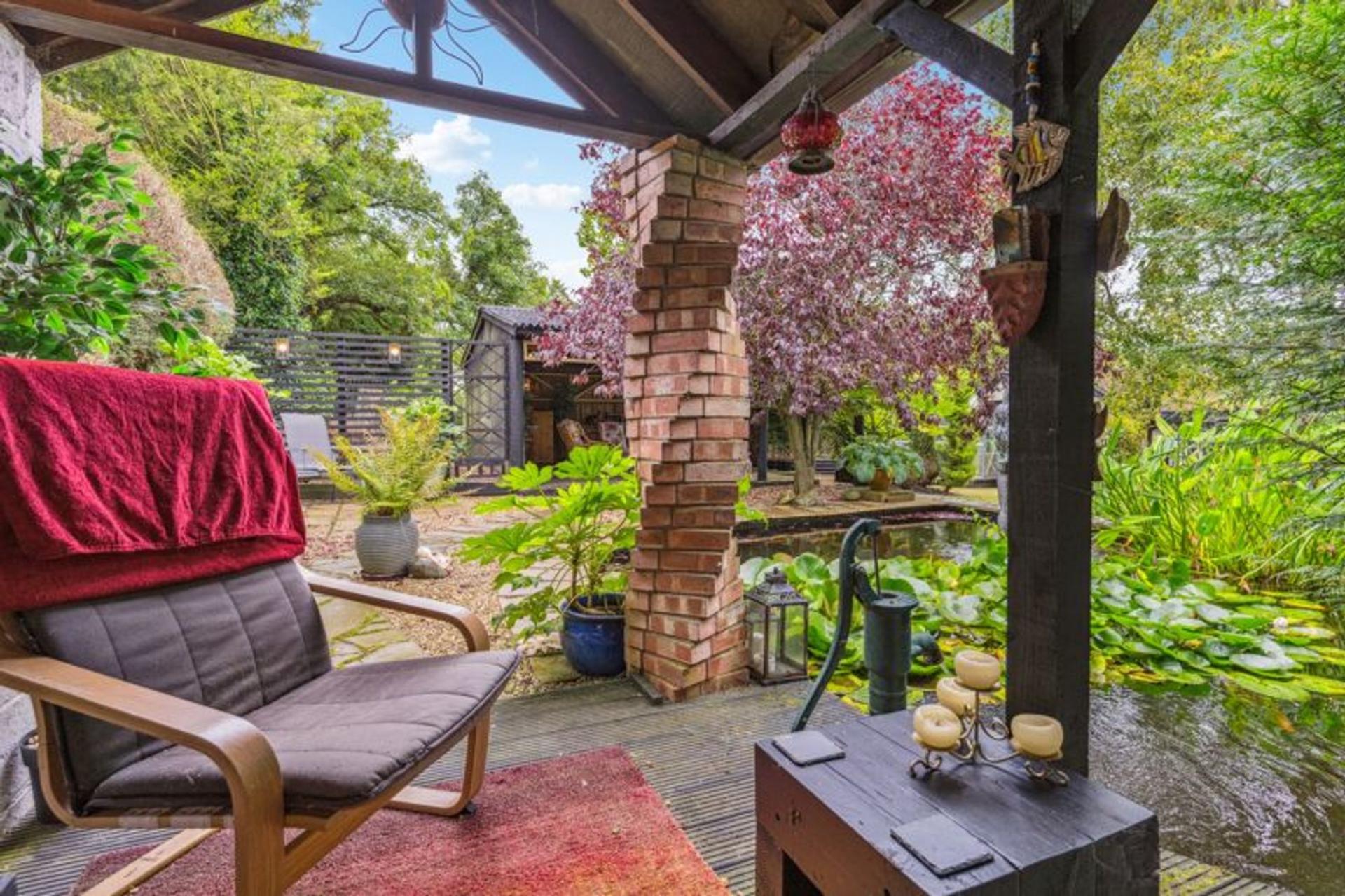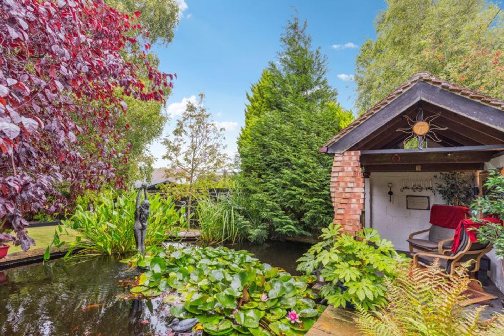Stepping out from the inviting sitting/dining room, you'll discover a spacious patio area that’s perfect for alfresco dining and entertaining, basking in the summer sun while overlooking the beautifully established rear garden. Steps rise from the patio to a lush, mature garden, featuring a manicured lawn, raised flower beds, and an array of mature hedging and trees that provide a tranquil, private retreat. Beyond the lawn, a charming pergola leads to a hidden sanctuary—an impressive covered outdoor living space with full power and lighting, designed for year-round enjoyment, come rain or shine. This serene area is further enhanced by a delightful feature pond, situated in front of an additional covered seating zone, creating an enchanting backdrop for relaxation and unwinding amidst peaceful, picturesque surroundings.