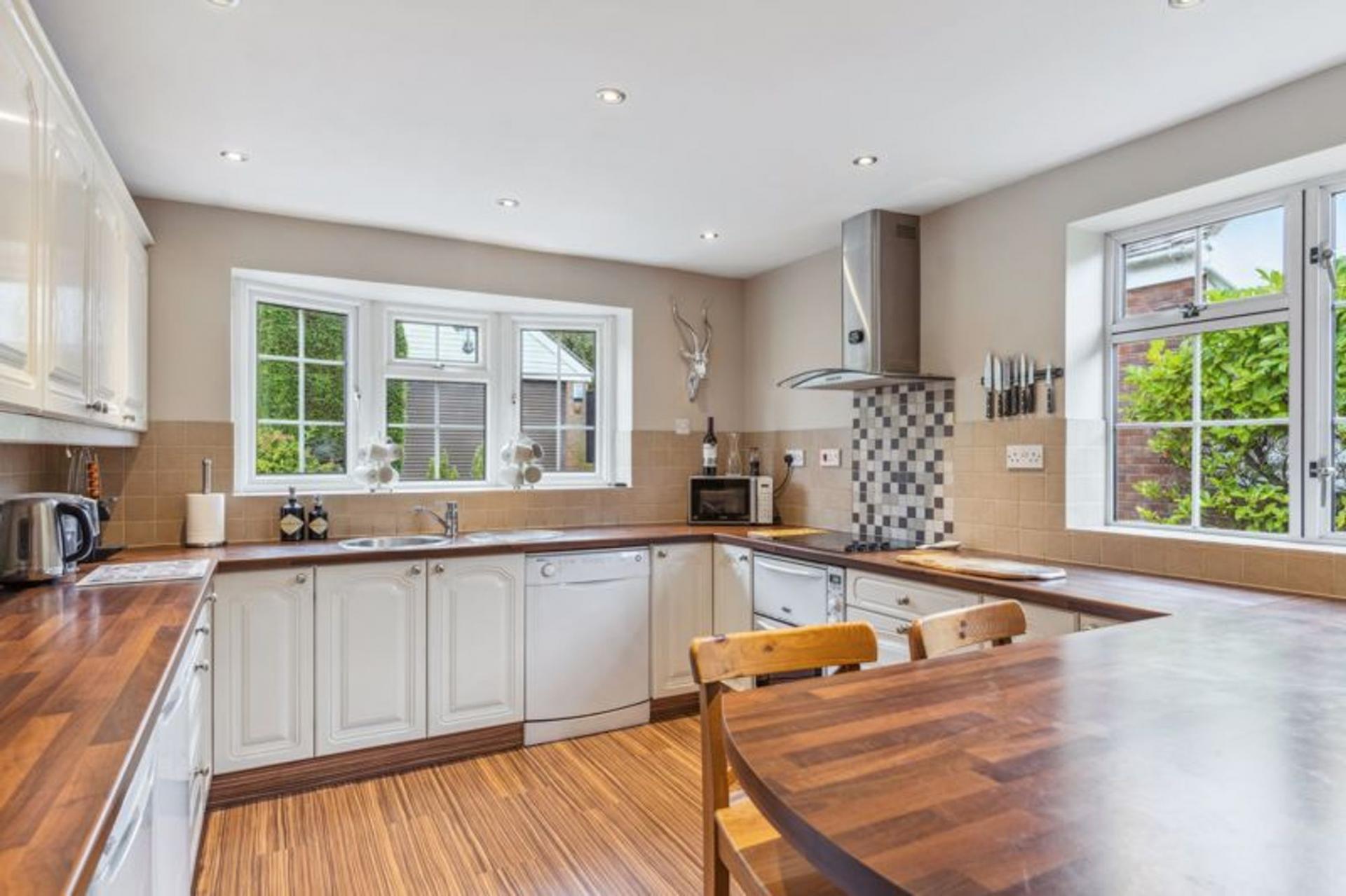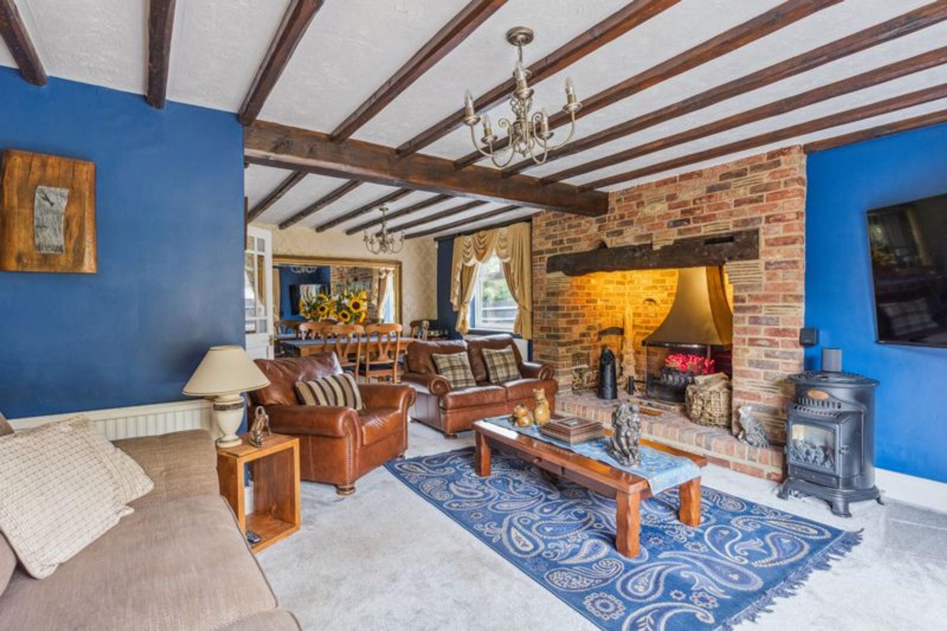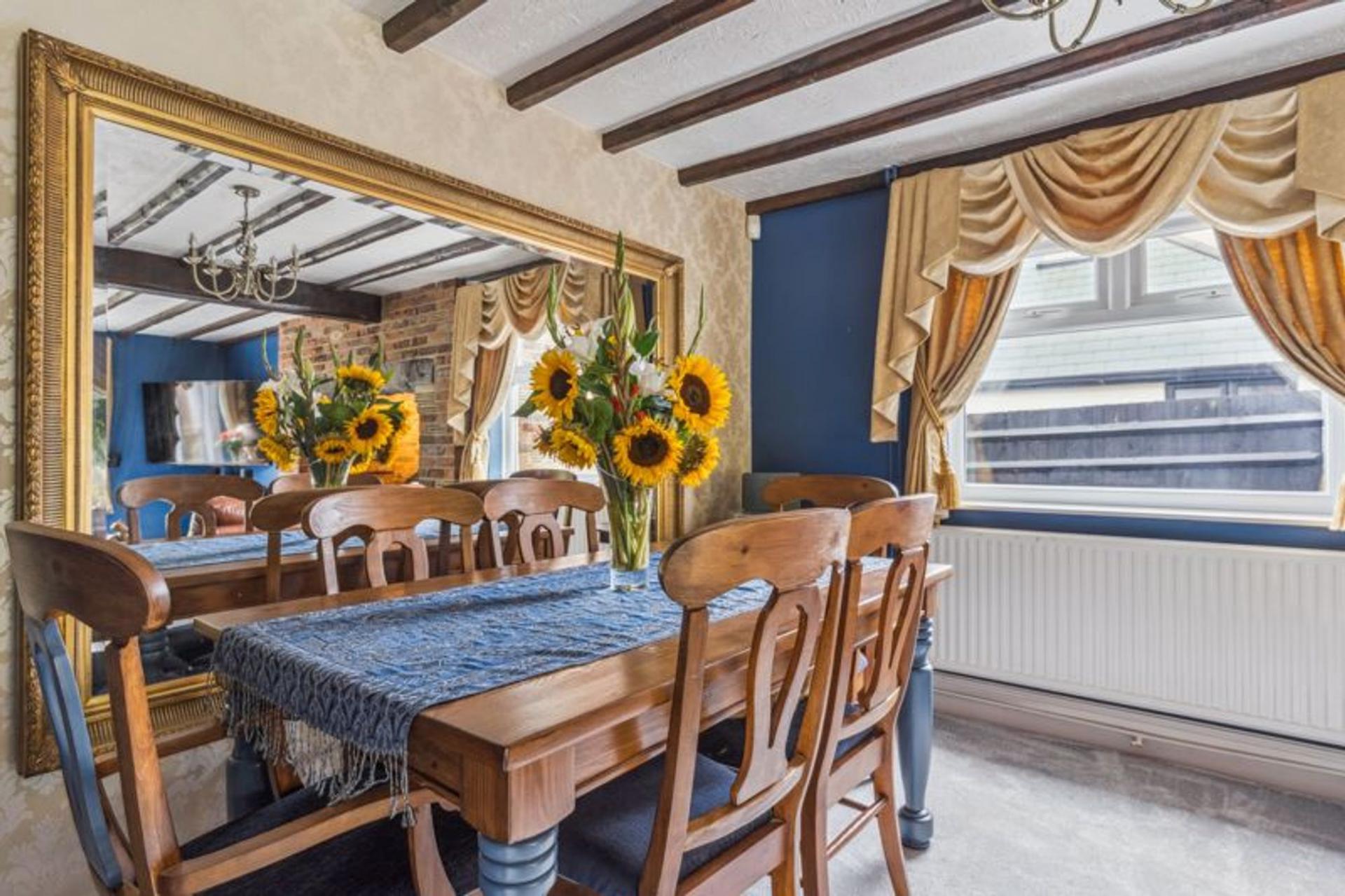 Entering into this delightful family residence, you are welcomed by a charming entrance that leads to a characterful sitting/dining room, where exposed wooden beams and enchanting views of the secluded rear garden create an inviting ambiance. The generous sitting and dining space is perfect for hosting gatherings with family and friends, while the stunning brick-surround inglenook fireplace offers a warm and cosy haven, ideal for curling up with loved ones on chilly evenings. Adjacent to this living area is the bright and airy kitchen/breakfast room, fitted with an array of base and wall units, roll-top surfaces, an integrated oven with an electric hob, and space for white goods. A breakfast bar offers the perfect spot for morning coffee or casual meals. From the kitchen, a door opens into the utility room, providing additional storage and further space for appliances, adding an extra layer of convenience and functionality to this delightful home.