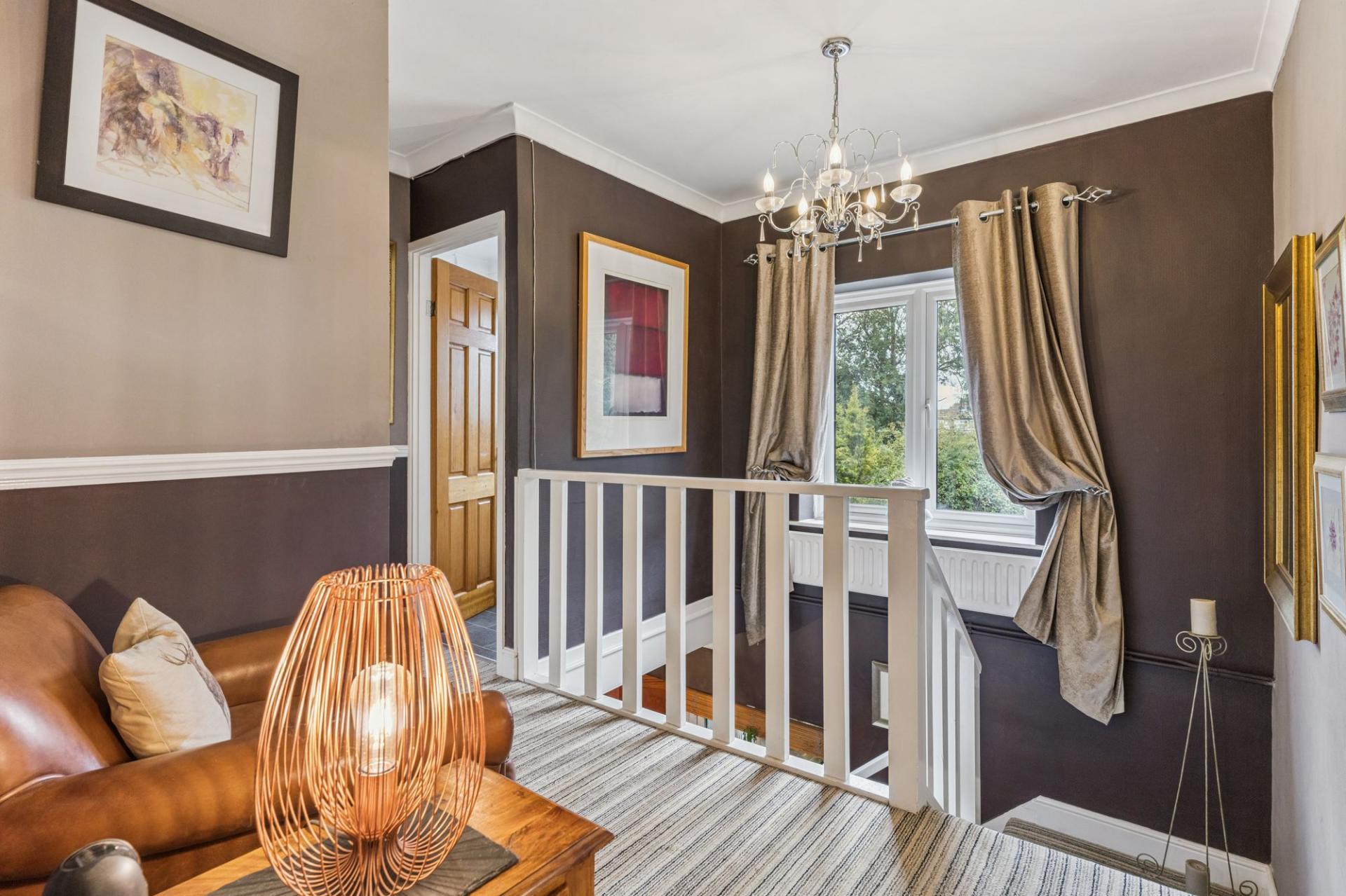 Ascending from the entrance hall, a staircase rises to the first floor landing, where the impressive principal suite, four further double bedrooms, and a modern four-piece family bathroom are arranged.
