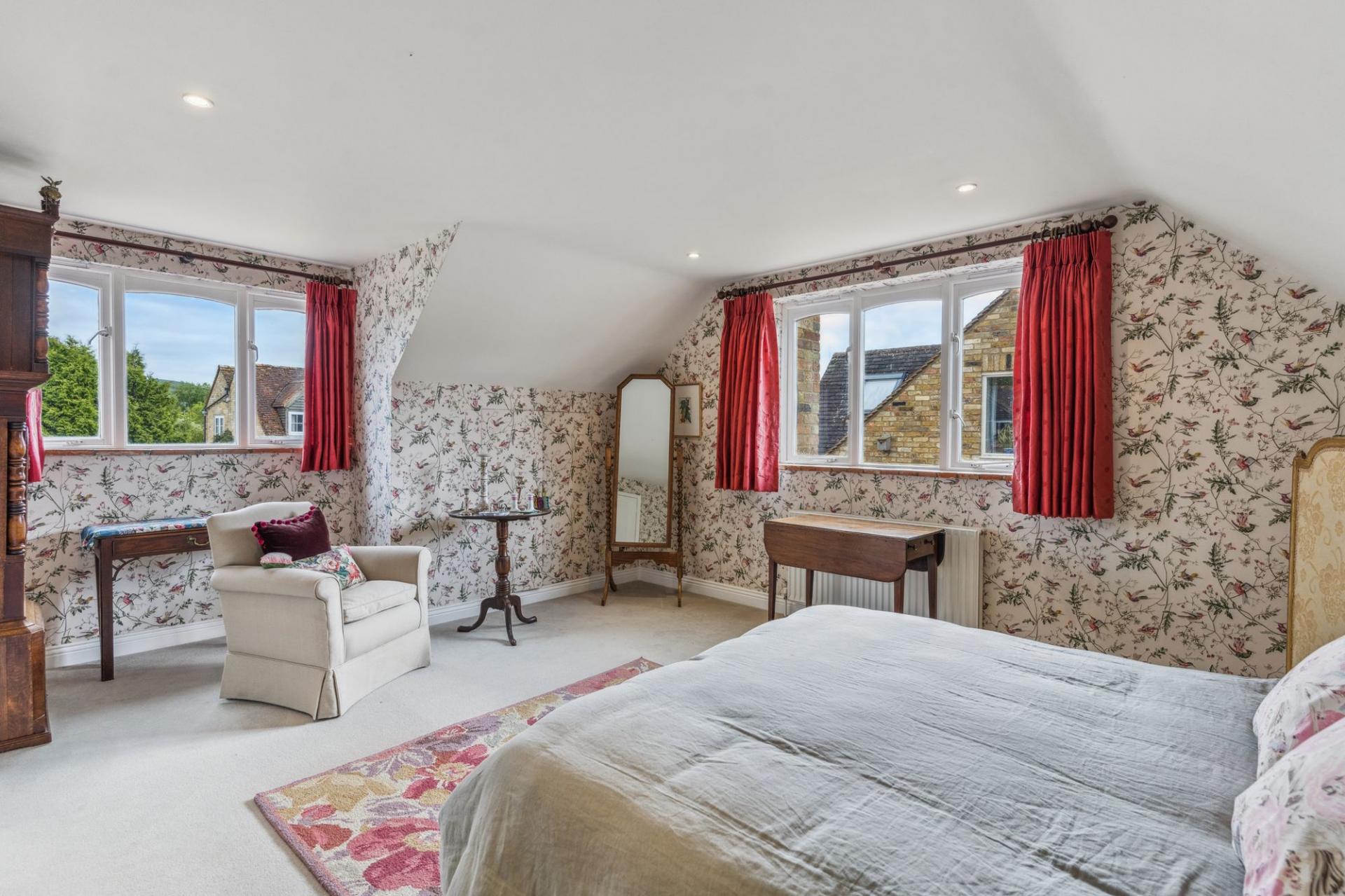 Located within the courtyard from the main residence, the converted detached coach house offers self contained accommodation across two floors. The ground floor includes a welcoming entrance hall, utility room, cloakroom, and a fully fitted kitchen/breakfast room with a second Aga and butler sink. The highlight is the spectacular L-shaped lounge/dining room, a quadruple-aspect space with a stone fireplace and wood-burning stove, French doors to a lawned garden, and ample natural light. Upstairs are two spacious double bedrooms, both with en suite facilities.