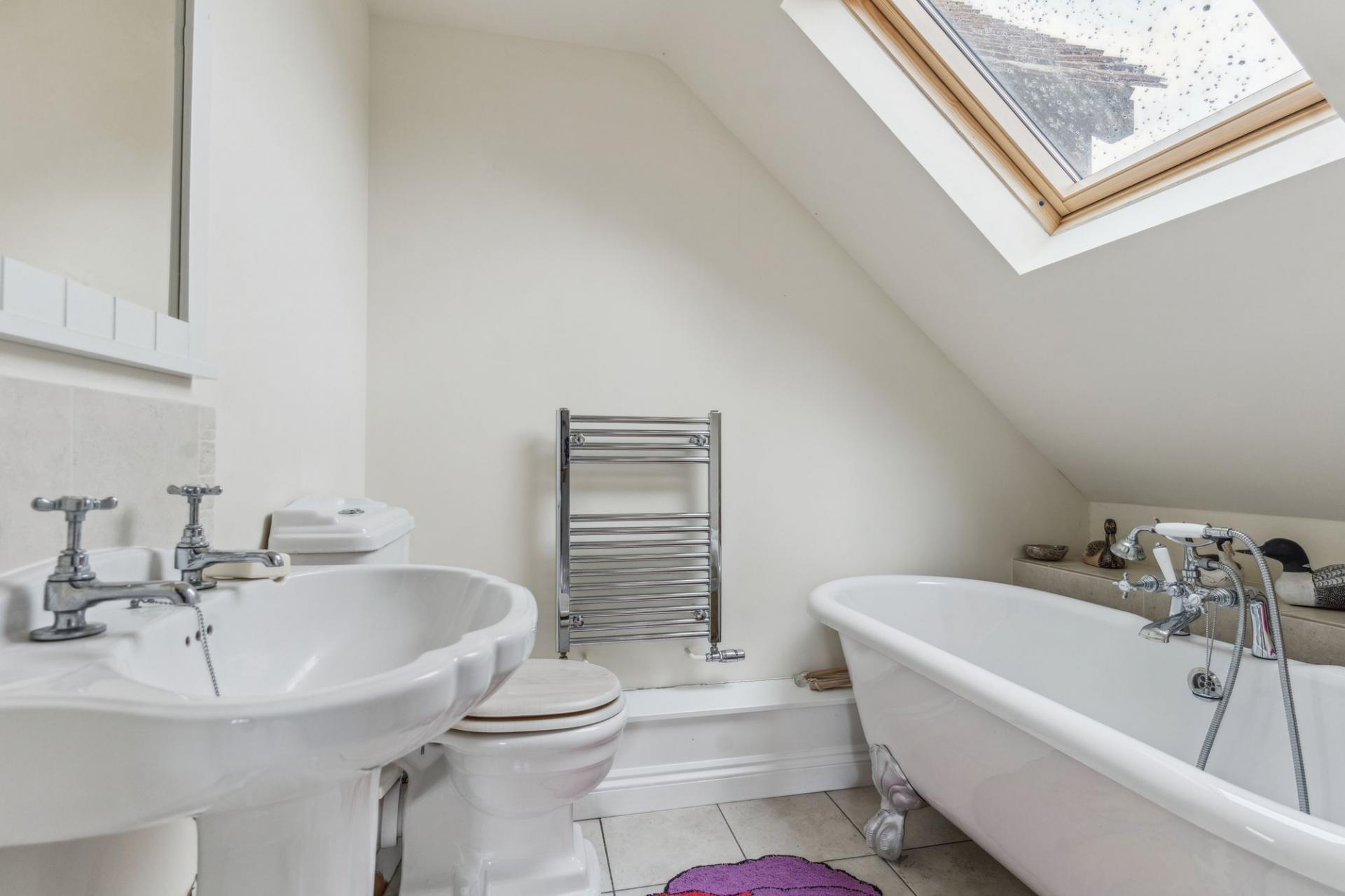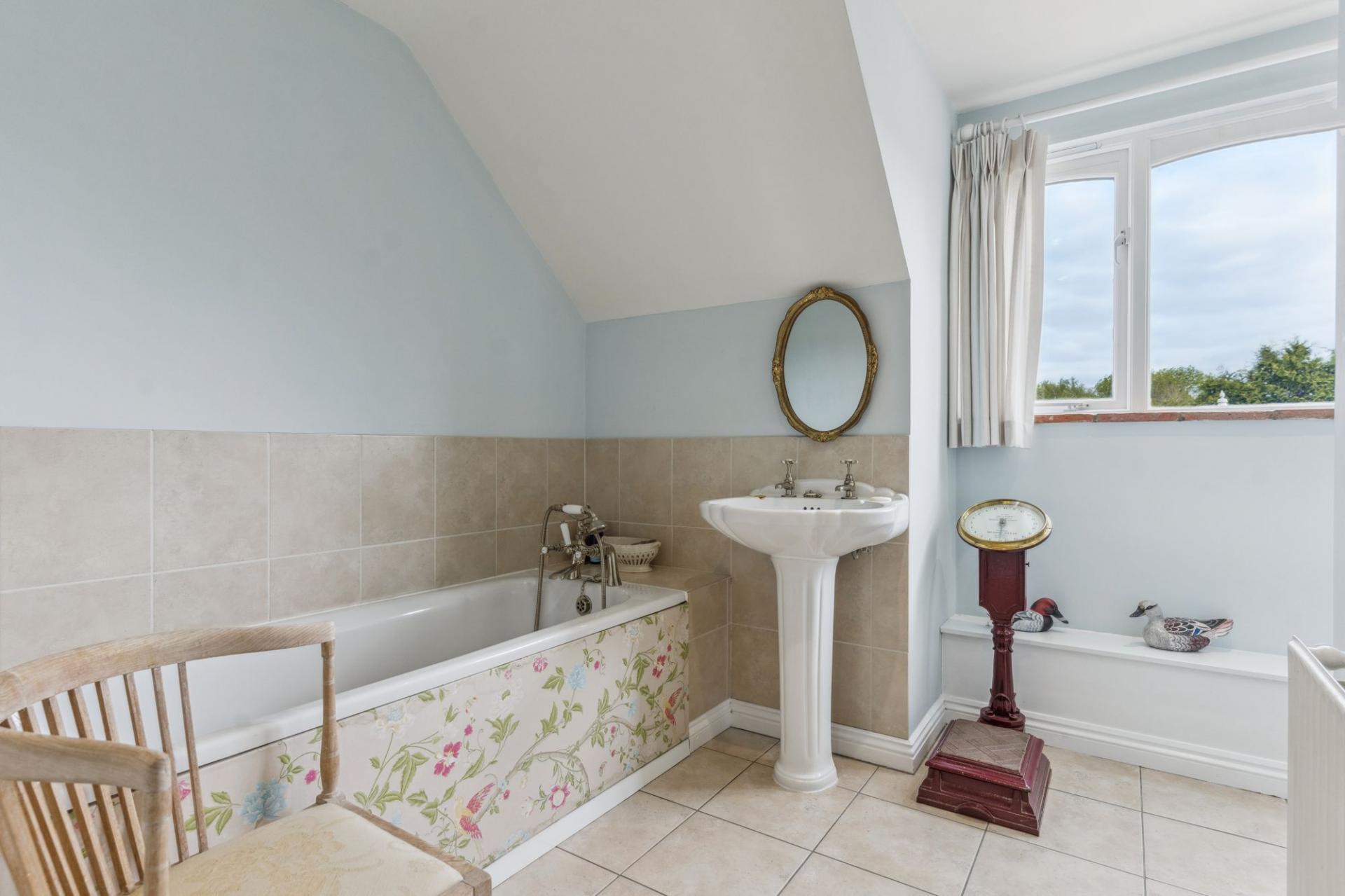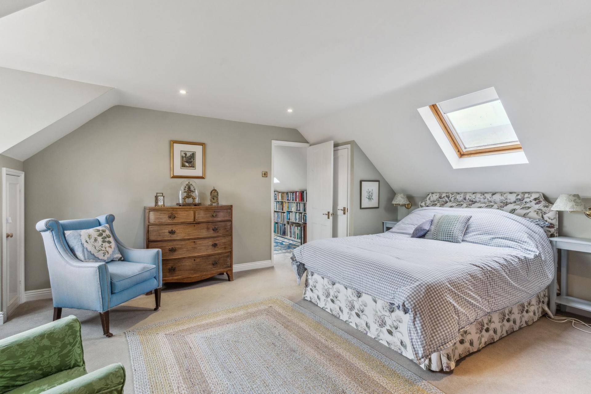 The first floor hosts four spacious double bedrooms, each offering generous storage. Three benefit from stylish en suite bathrooms, while the principal suite stands out with its triple-aspect views, bathing the room in natural light and framing picturesque vistas of the private grounds. The fourth bedroom is served by a well-appointed family bathroom featuring a traditional suite, panelled bath, and ample integrated storage. Throughout the upper floor, elegant proportions are complemented by carefully positioned windows that draw in light and showcase the stunning landscape beyond.