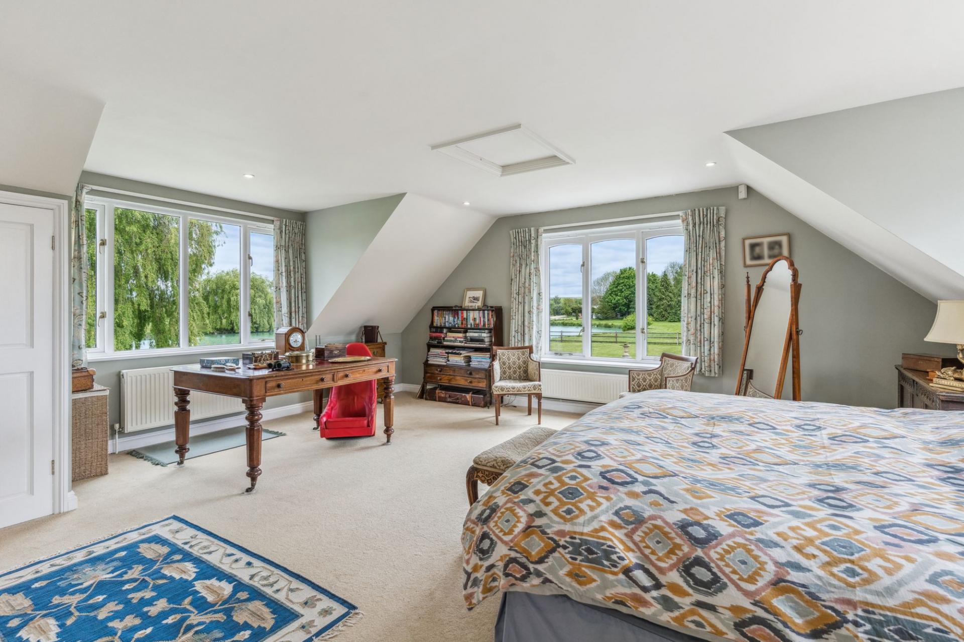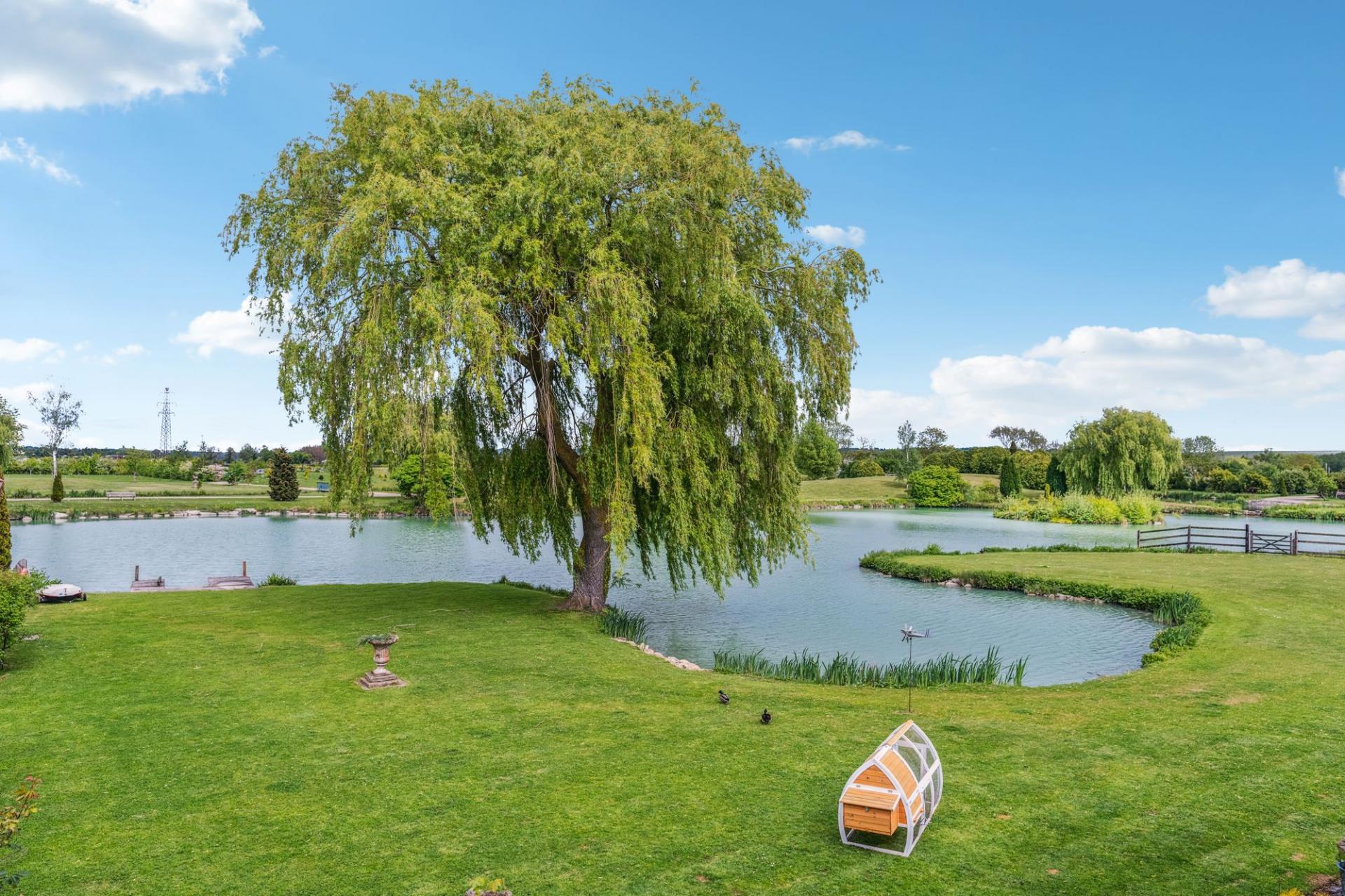 Willow Farm presents an exceptional and rare opportunity to acquire a beautifully appointed detached farmhouse with an accompanying detached two bedroom coach house, set within a breathtaking plot of approximately 15.5 acres. Nestled in the heart of the Buckinghamshire countryside on the edge of the Chiltern Hills, this distinctive home offers an idyllic lifestyle in a setting of remarkable natural beauty, with far-reaching views toward Ivinghoe Beacon. The grounds are a harmonious blend of formal gardens, grassland, fruit orchards, and wildlife-rich waterways, including two fully stocked fishing lakes extending to approximately 2.25 acres, as well as additional nature reserve/duck splash, ponds and a private stretch of double-bank fishing known as ‘The Cut’.