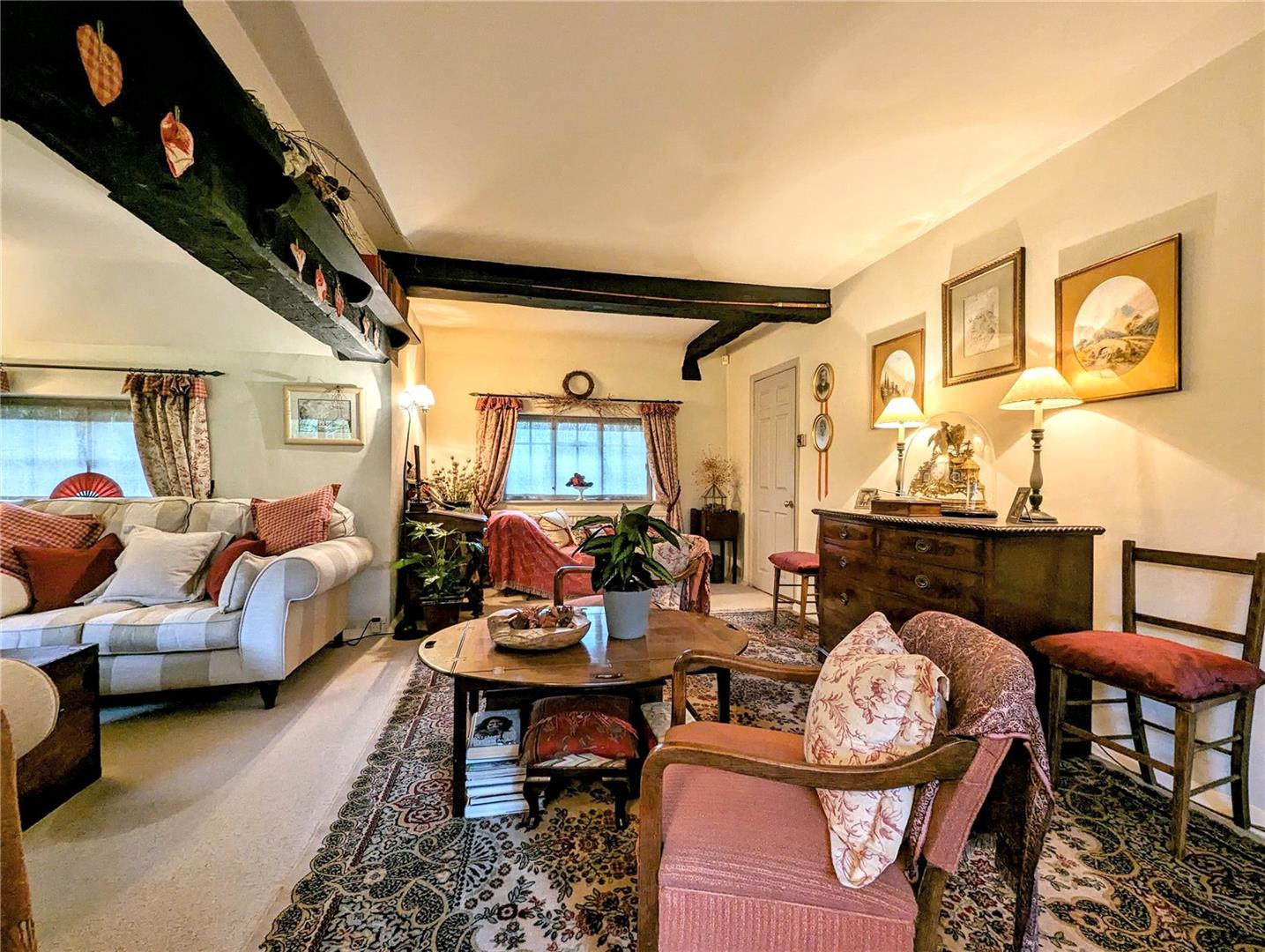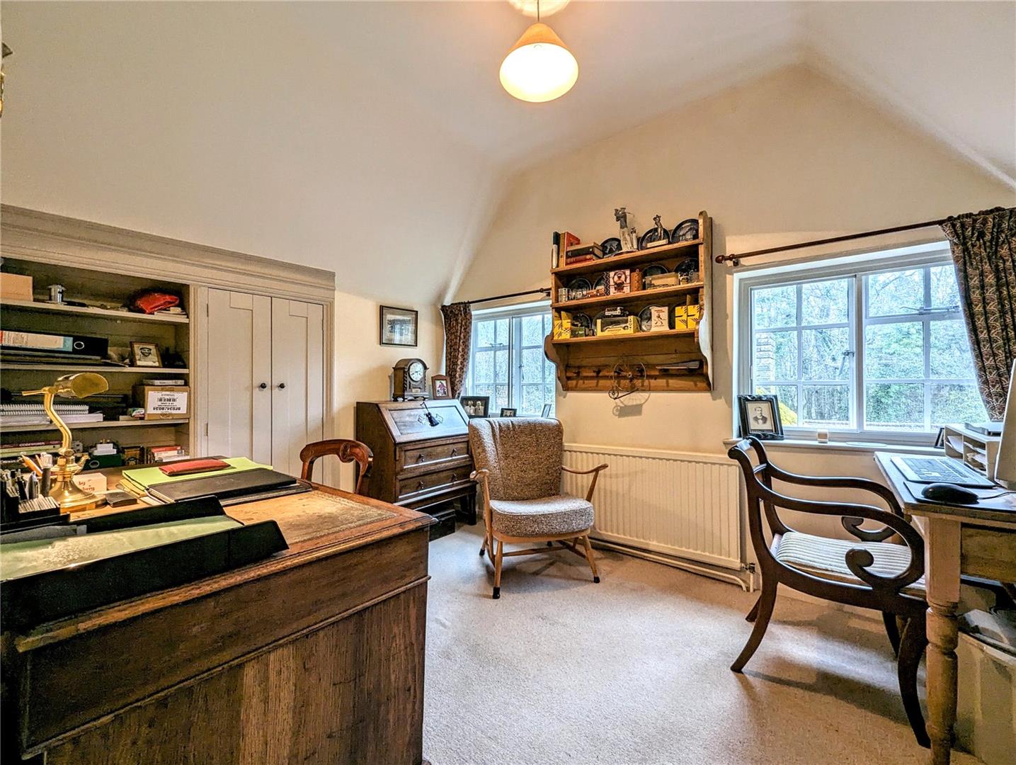 There are three excellent rooms, all with pleasant garden views - a stunning triple-aspect sitting room with exposed timbers and a fireplace with wood burning stove, a delightful dining room and a family room/study.
