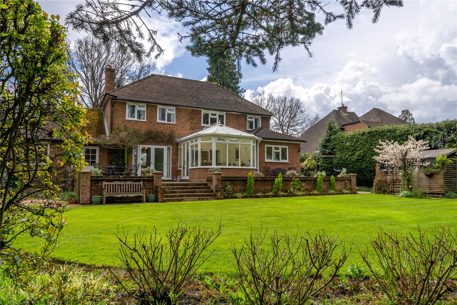 This wonderful detached family home is attractively set within gardens of approaching three quarters of an acre and enjoys an impressive broad and well screened frontage onto a pleasant country lane in the charming rural Surrey village of Leigh.