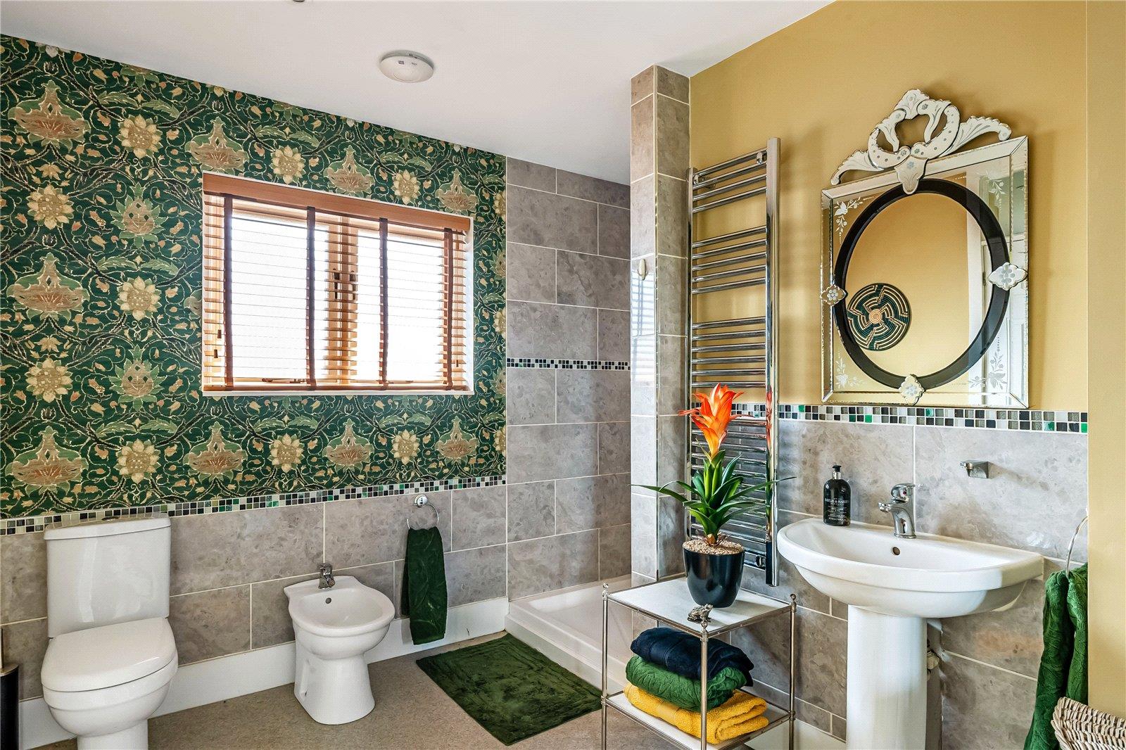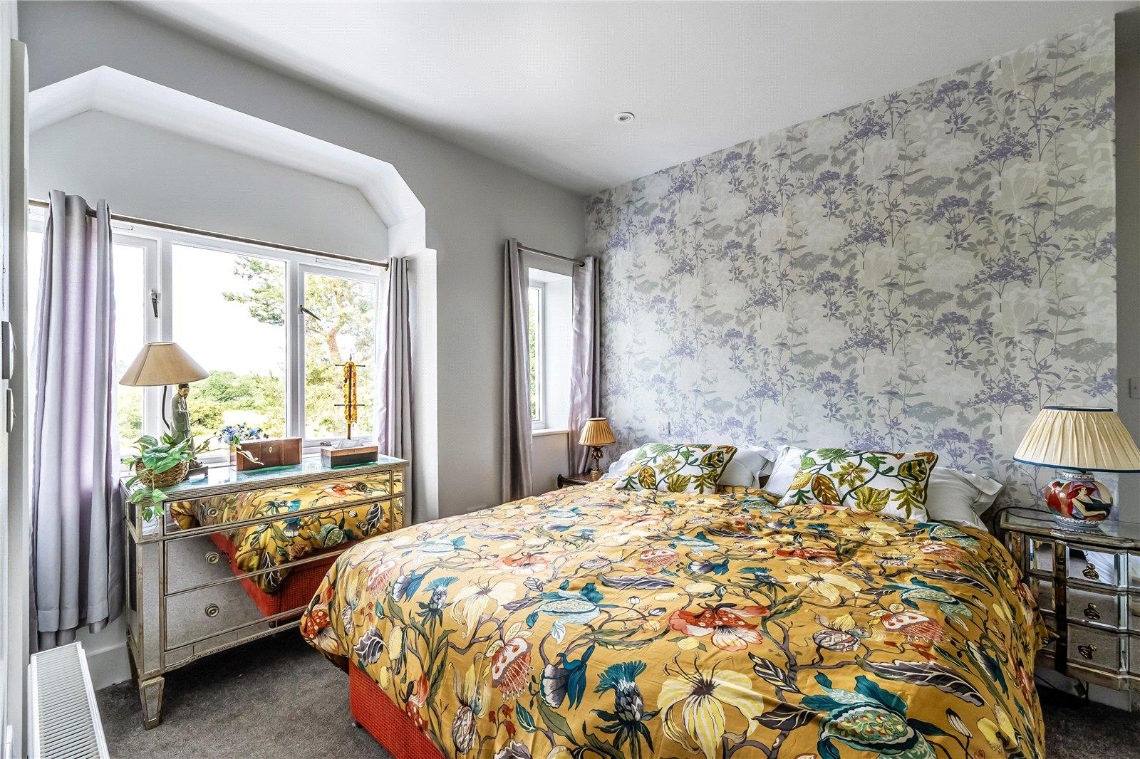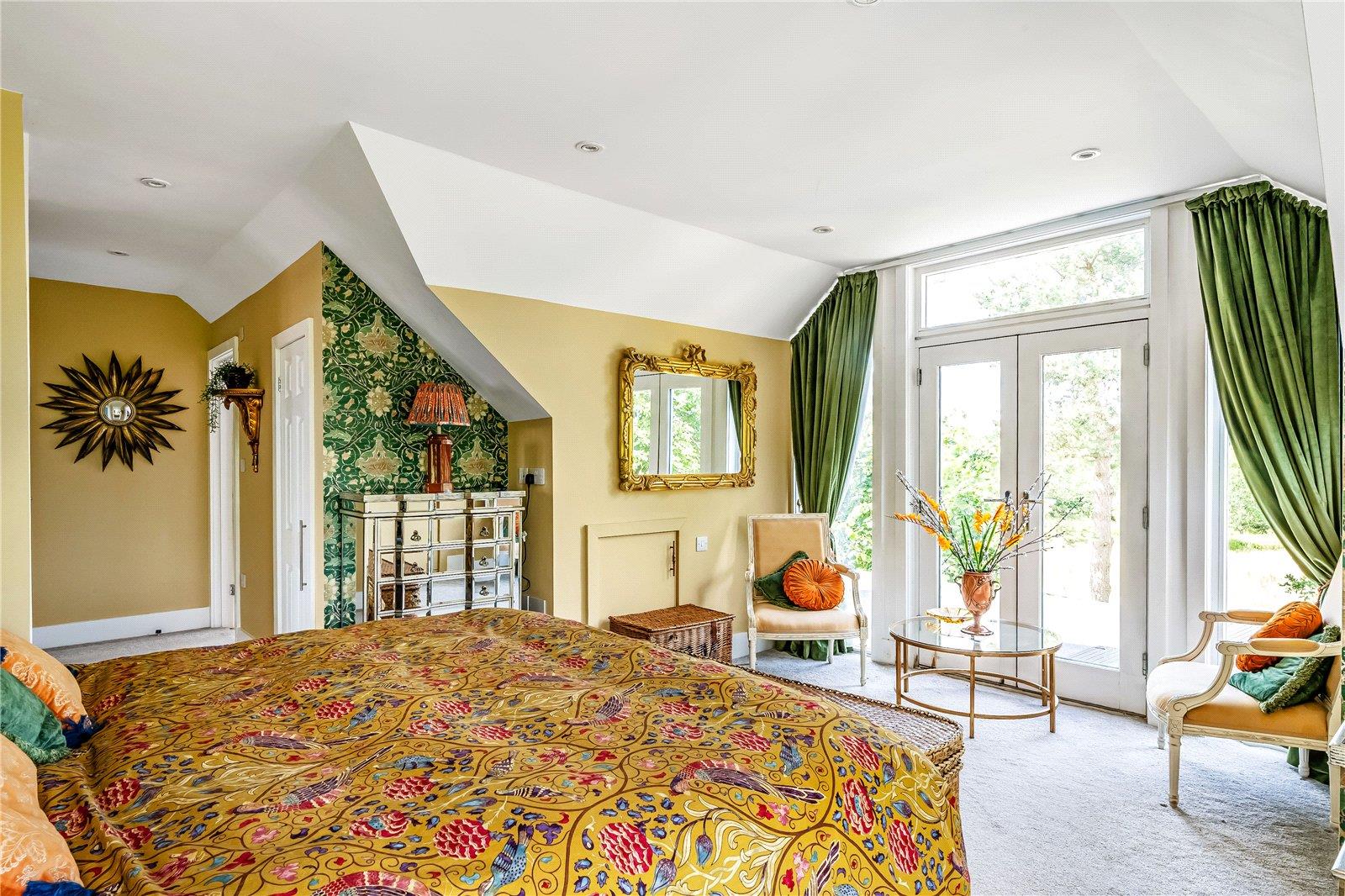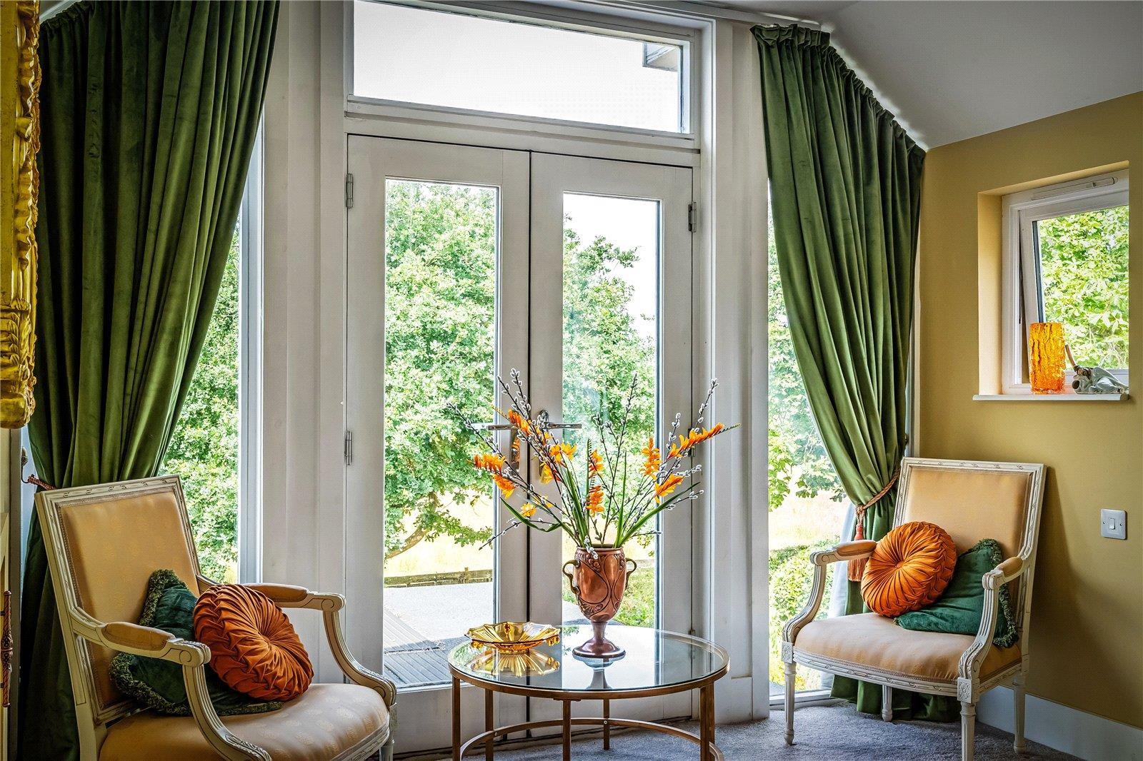 The master bedroom suite with its two sets of french doors has fabulous views to the garden and open fields beyond, an adjoining large dressing room and two spacious bathrooms.