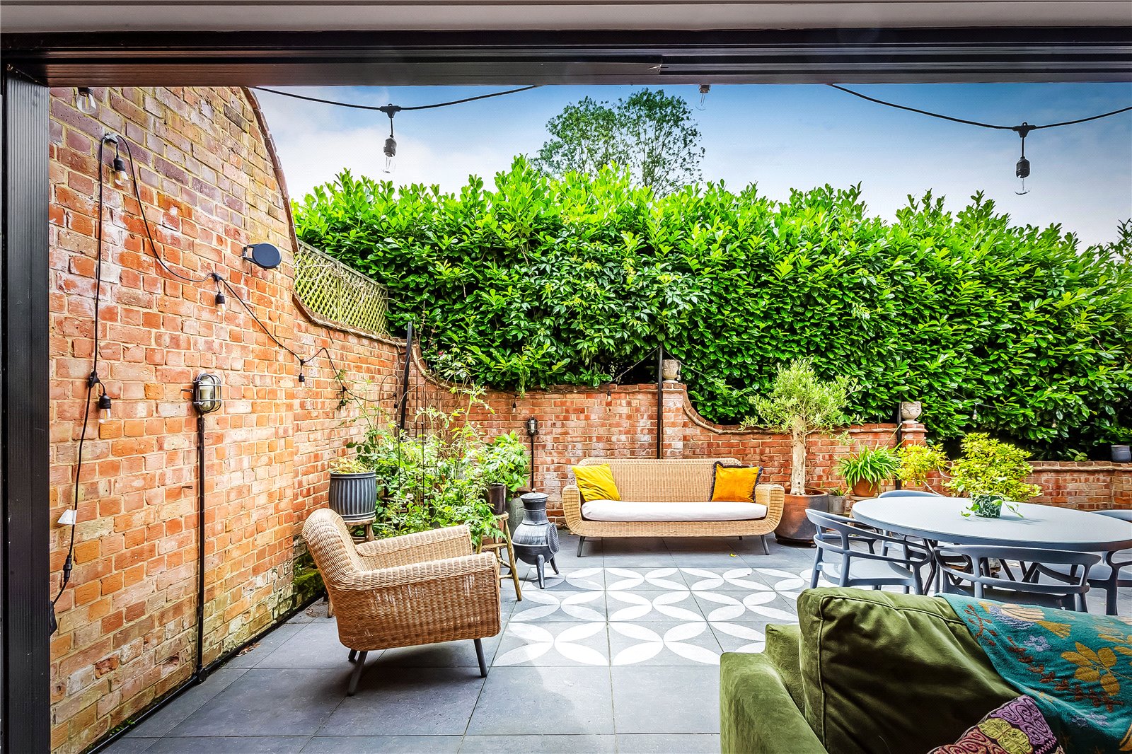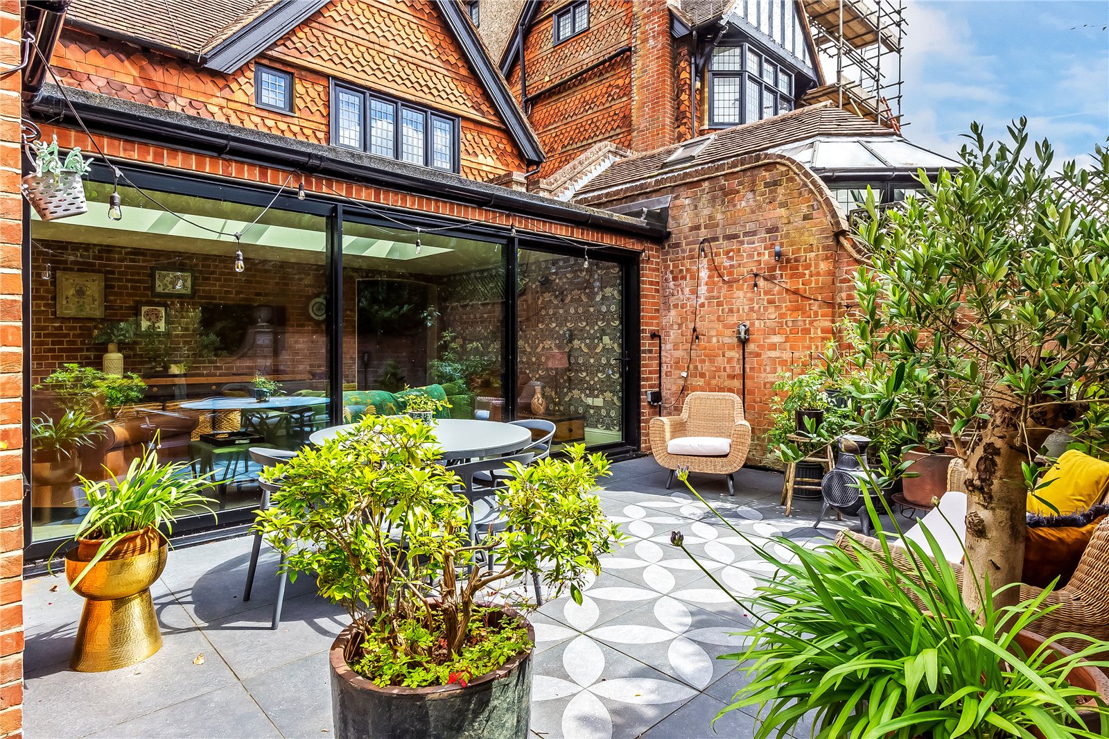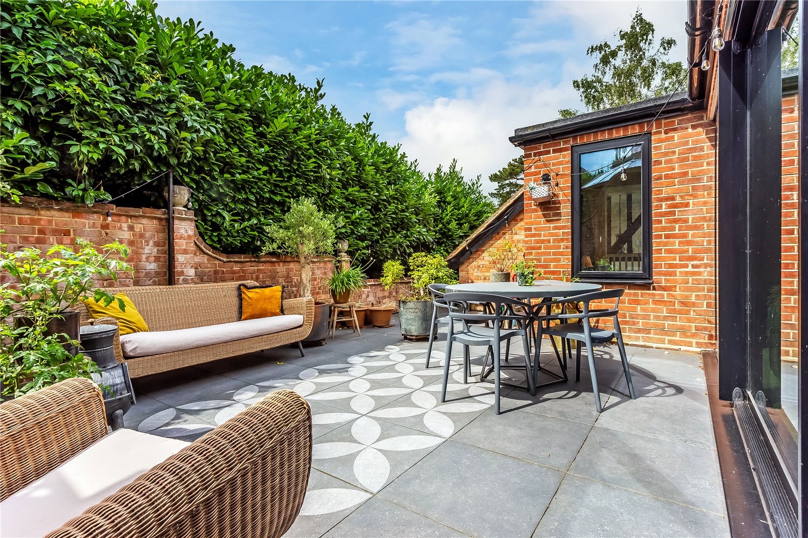 Upstairs, three generously sized bedrooms have pleasant garden or patio views. The master bedroom provides a luxurious retreat with a private ensuite shower room, while a sumptuous family bathroom serves the remaining bedrooms.