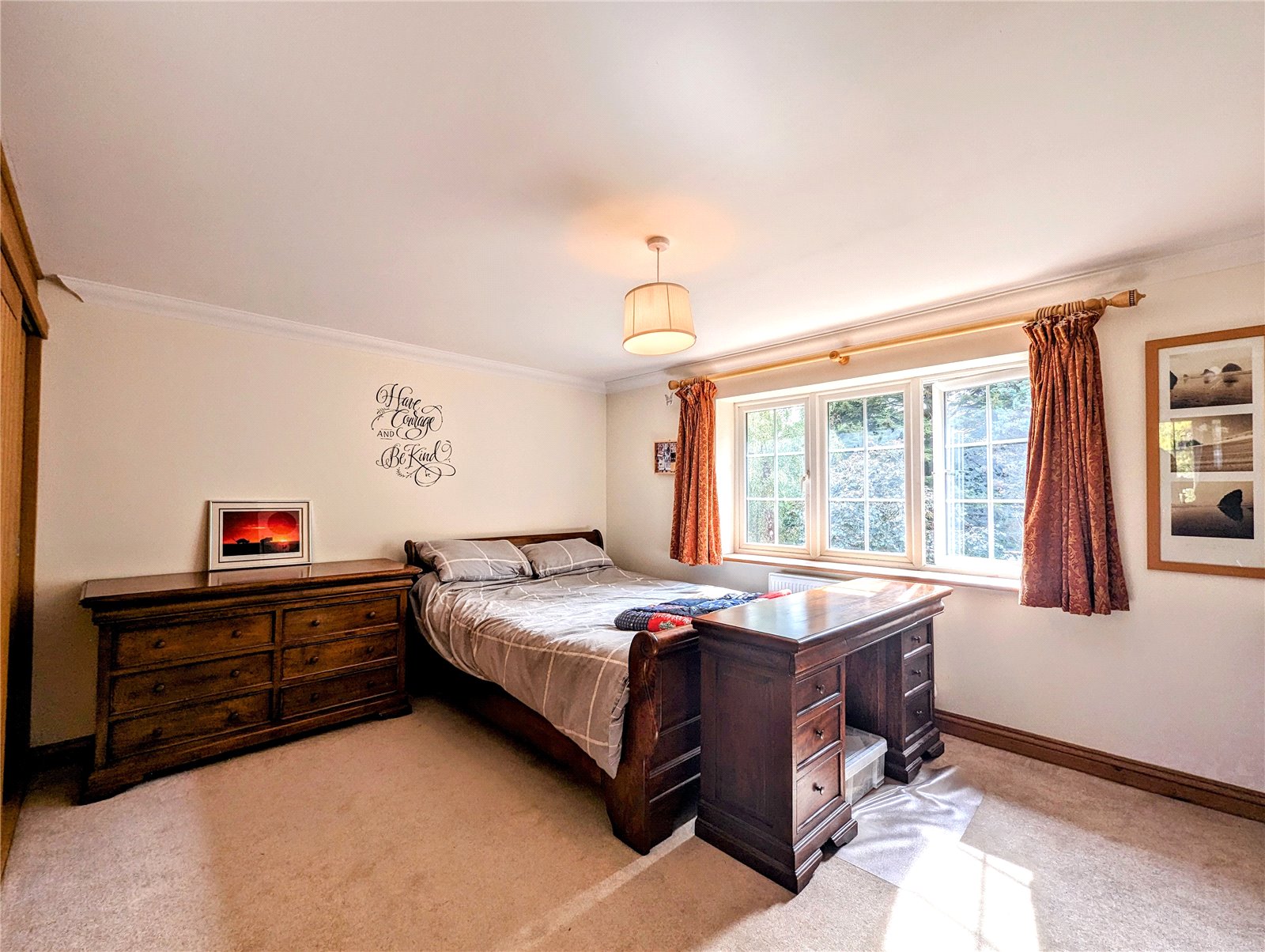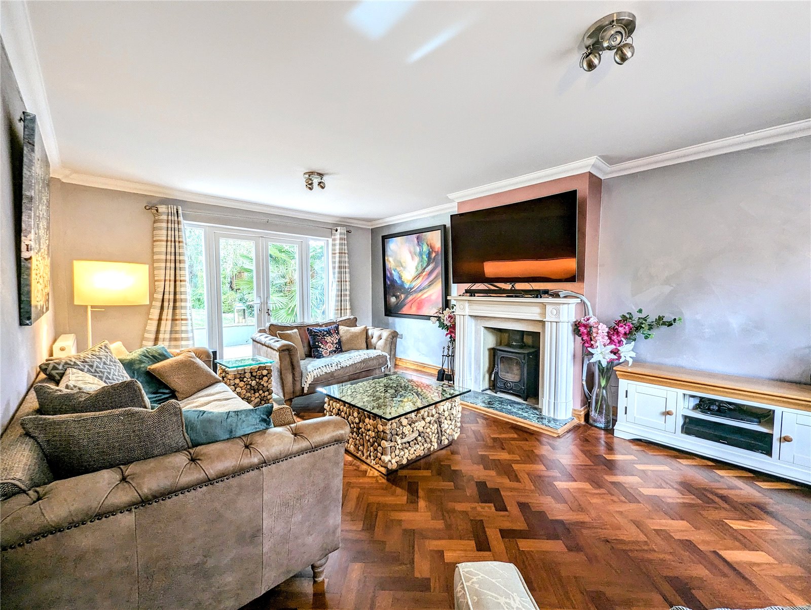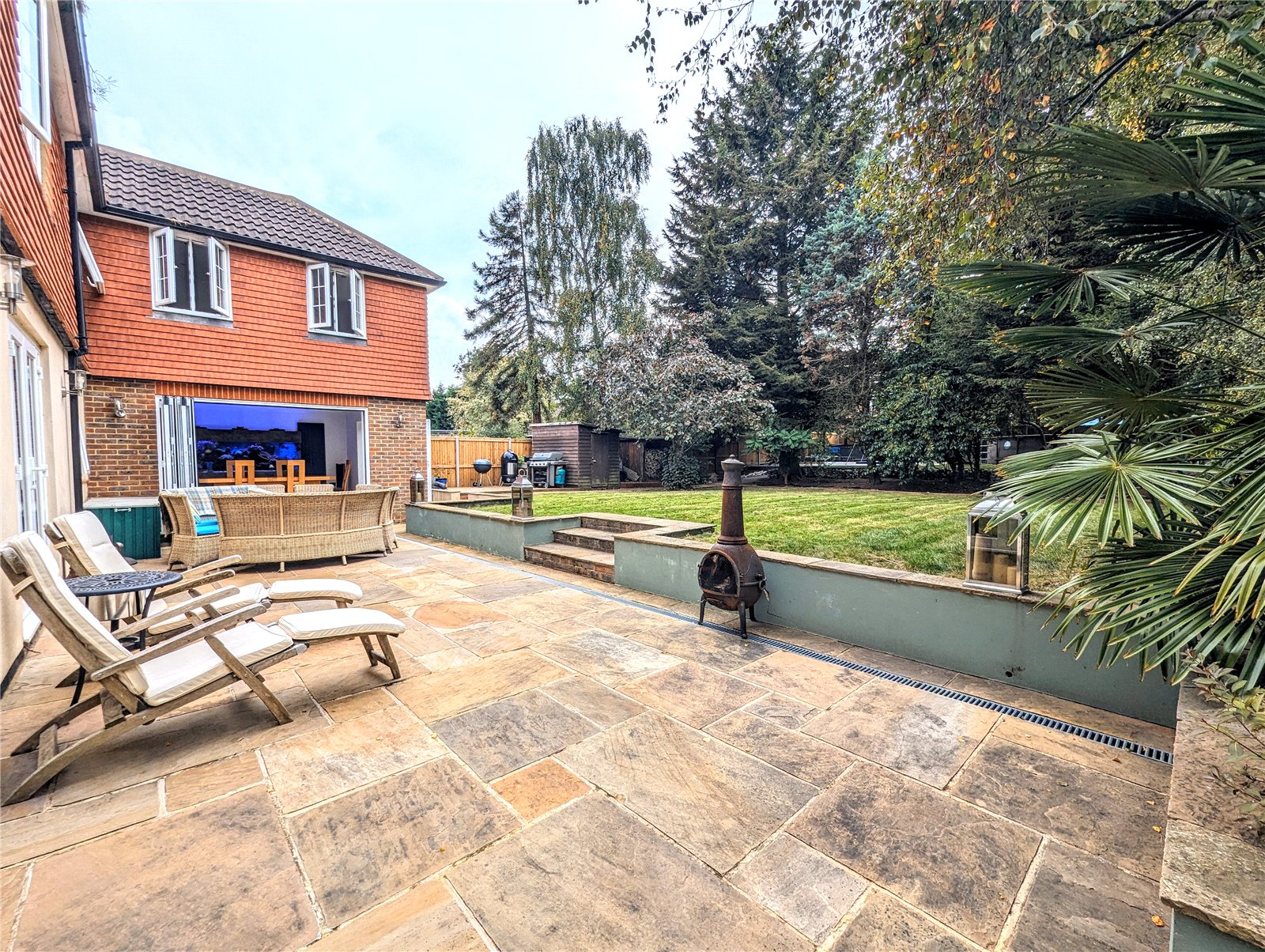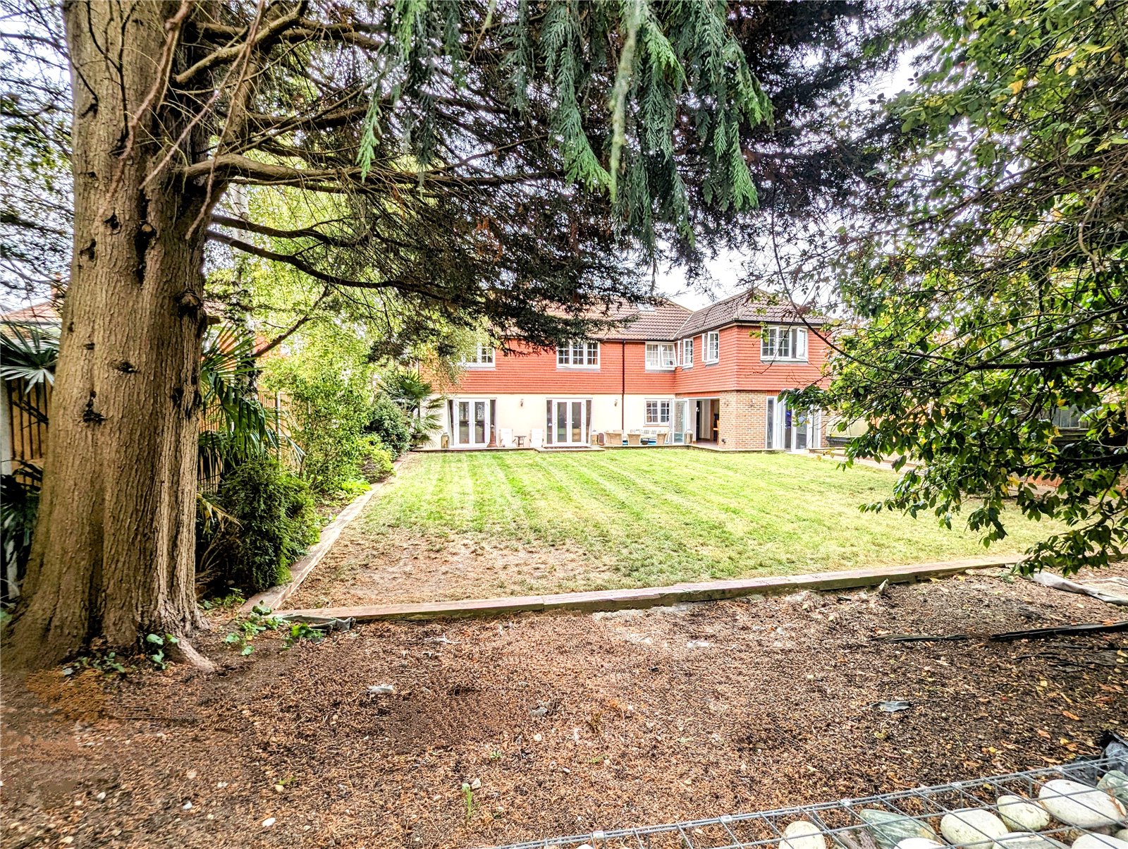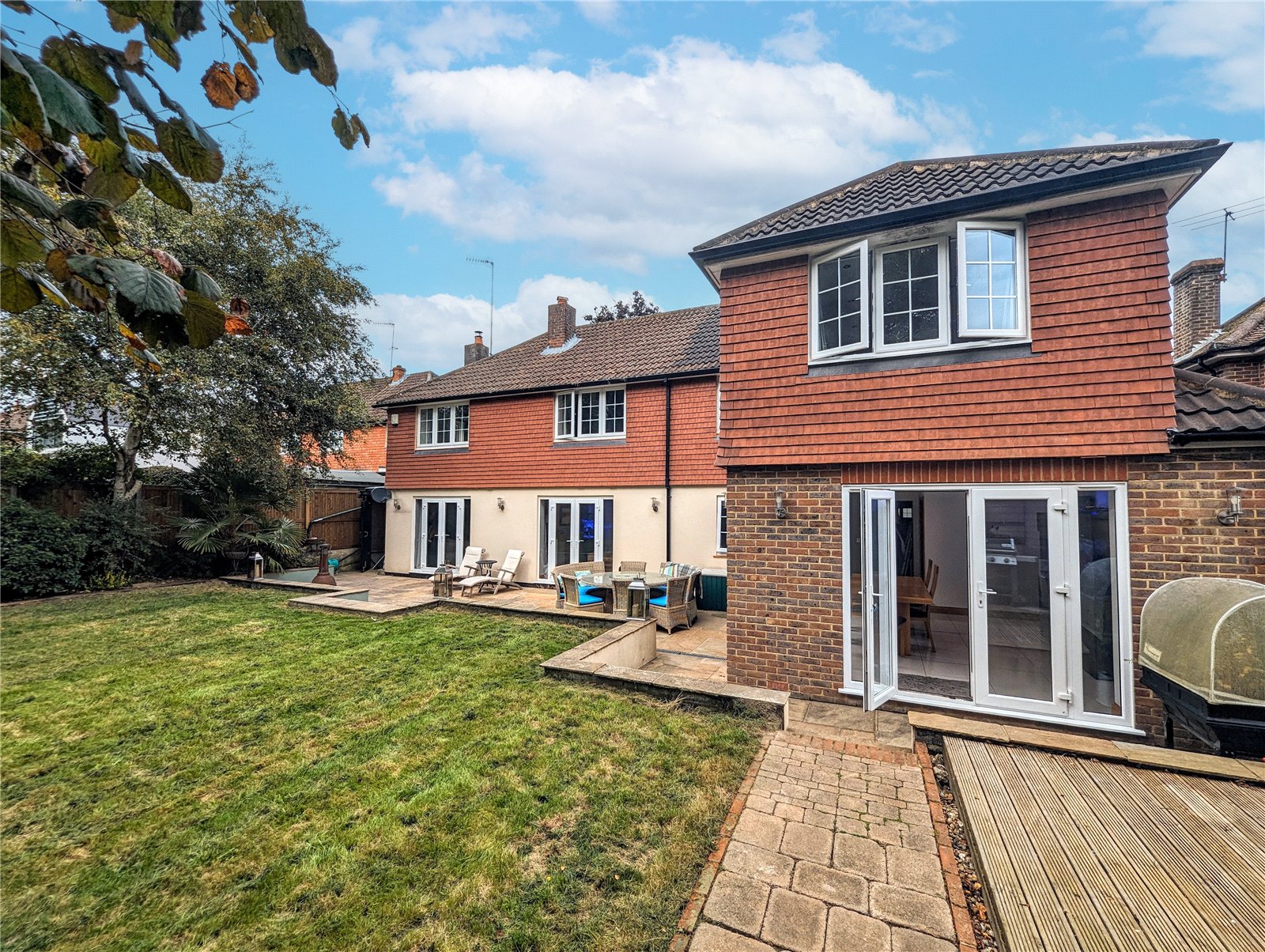 Enjoying a highly sought-after setting, this stunning tile-hung detached home has a well screened, expansive frontage and is approached via a gated driveway offering extensive parking leading to a convenient integral garage. The southerly aspect rear garden is a true oasis with mature trees,bushes and shrubs offering privacy and seclusion. A delightful patio area provides the perfect setting for alfresco dining and entertaining. At the far end of the garden there is an extensive leisure area whilst the broad central lawn area offers the opportunity to relax and unwind.