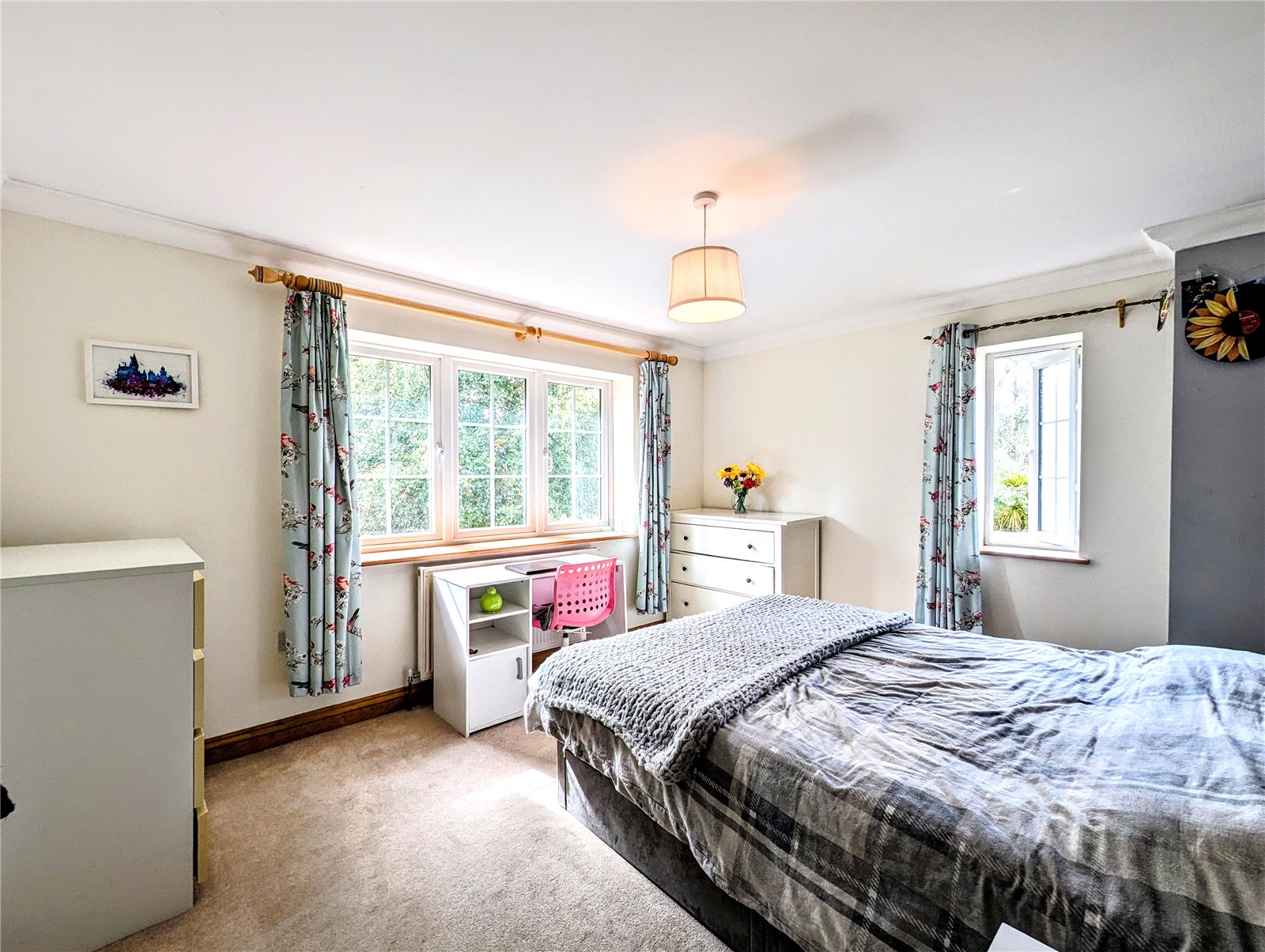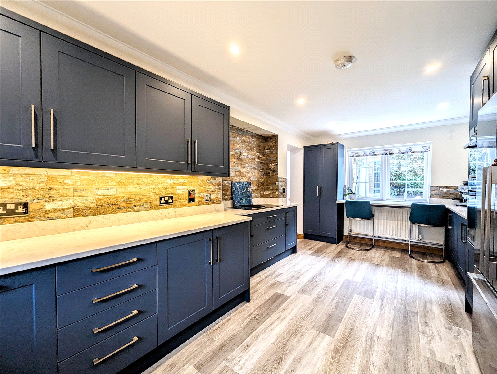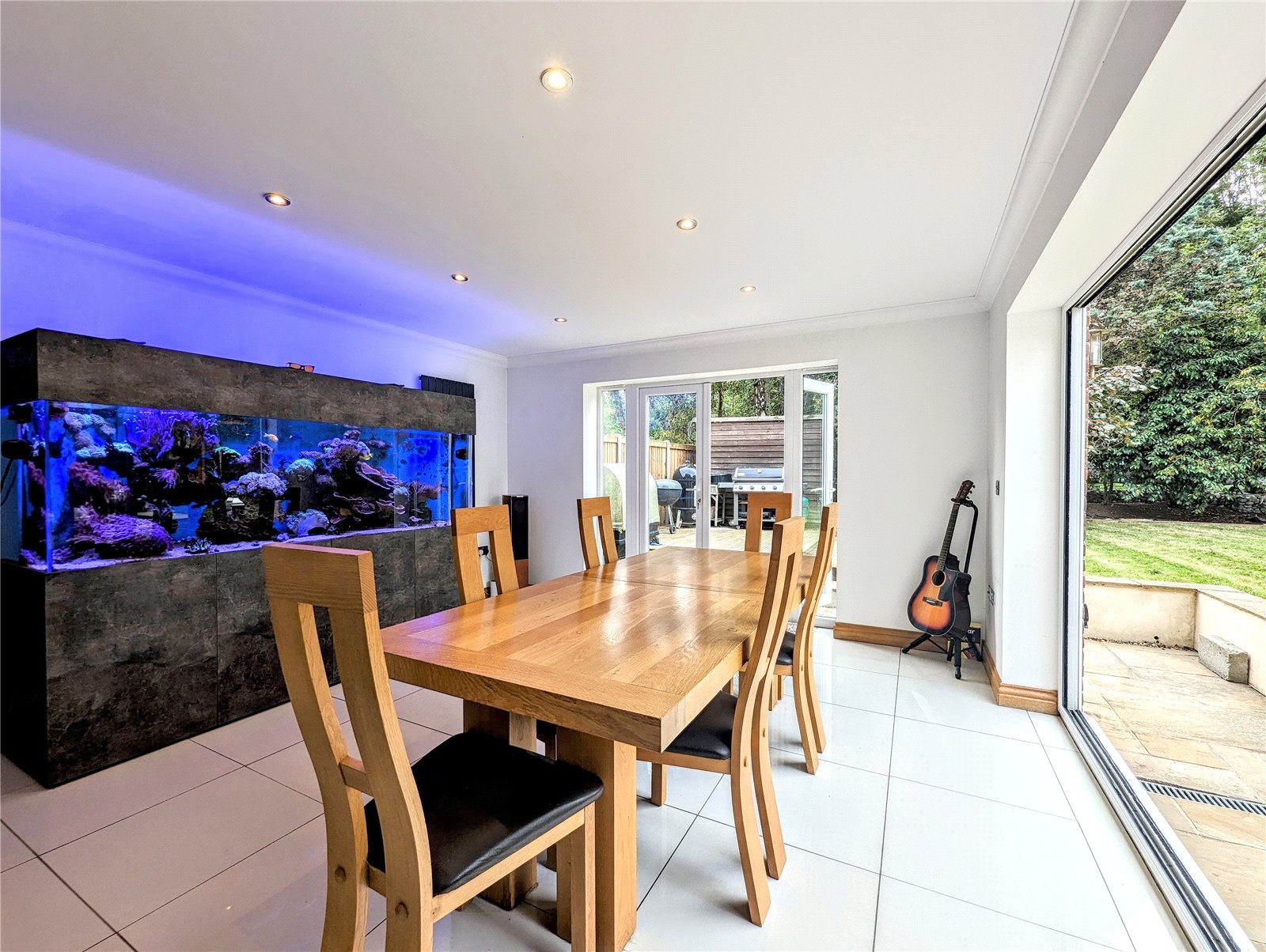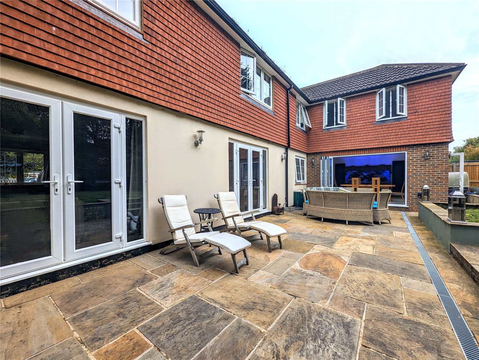 Enjoying a highly sought-after setting, this stunning tile-hung detached home has a well screened, expansive frontage and is approached via a gated driveway offering extensive parking leading to a convenient integral garage. The southerly aspect rear garden is a true oasis with mature trees,bushes and shrubs offering privacy and seclusion. A delightful patio area provides the perfect setting for alfresco dining and entertaining. At the far end of the garden there is an extensive leisure area whilst the broad central lawn area offers the opportunity to relax and unwind.