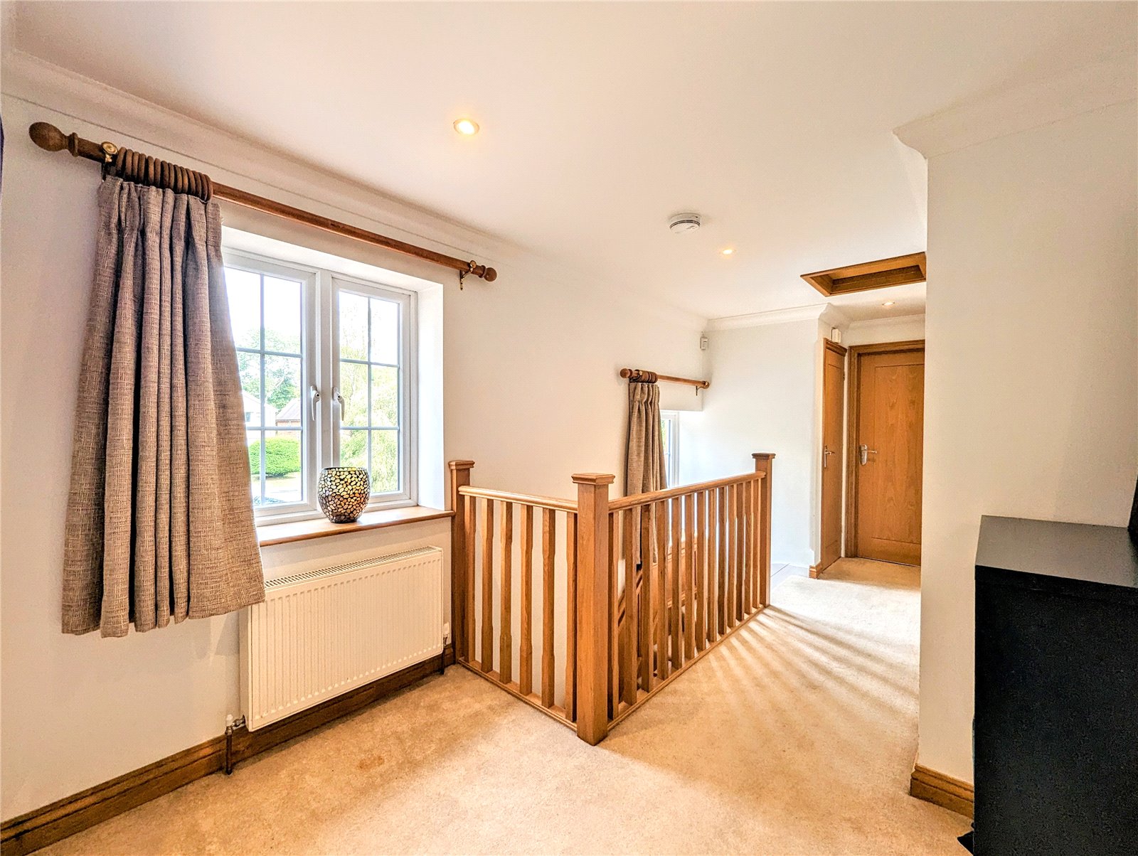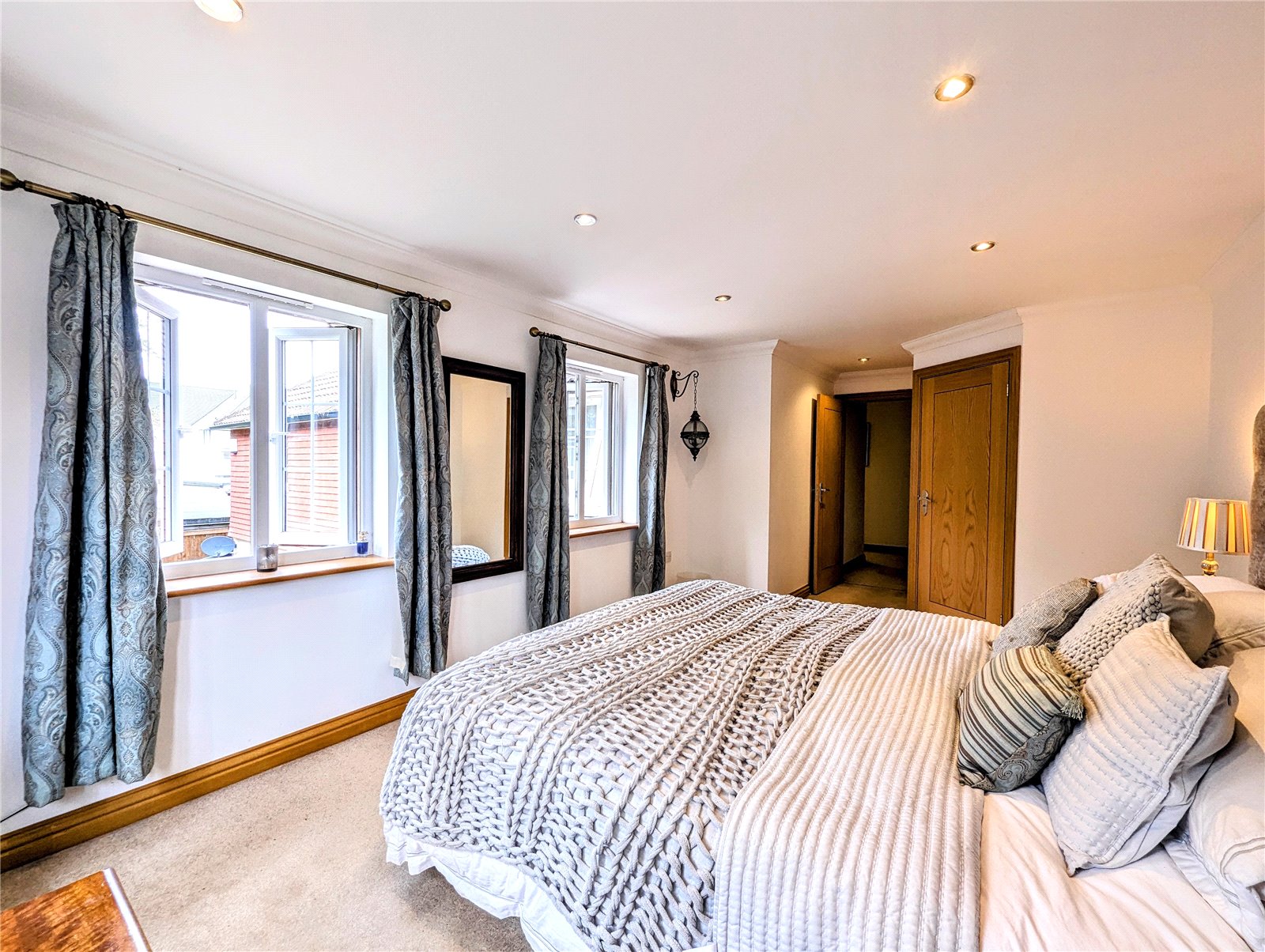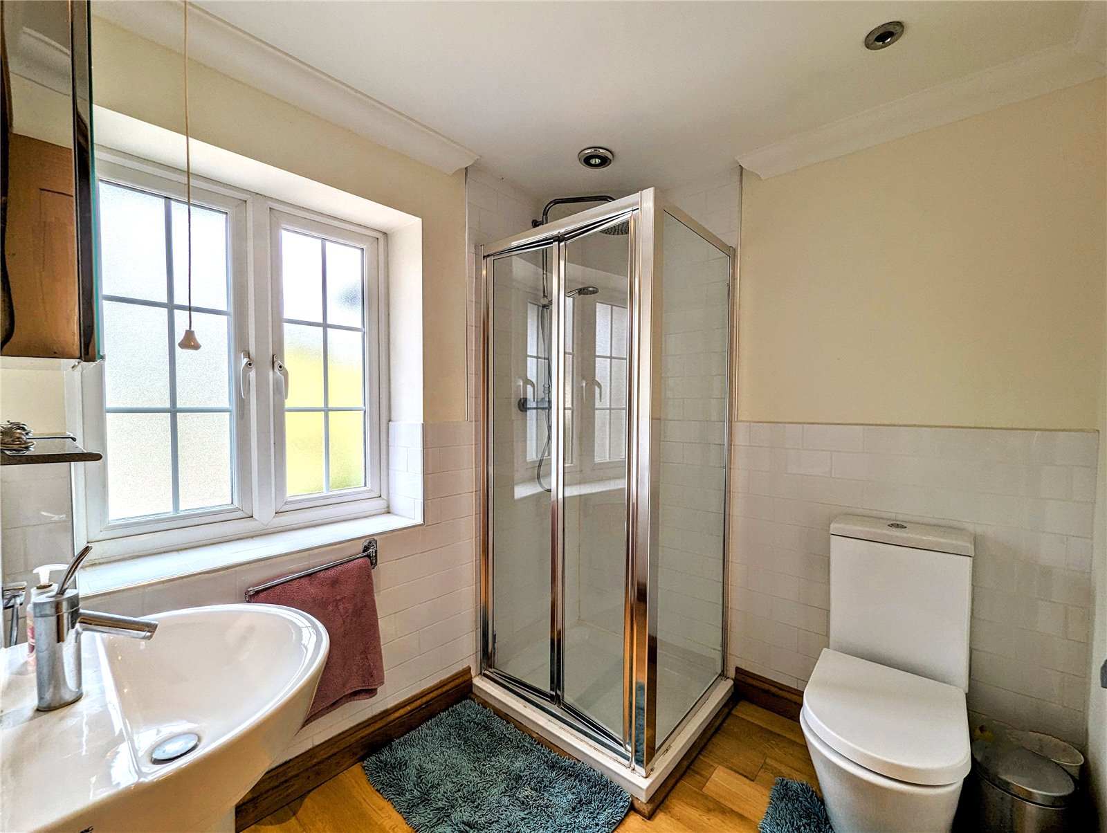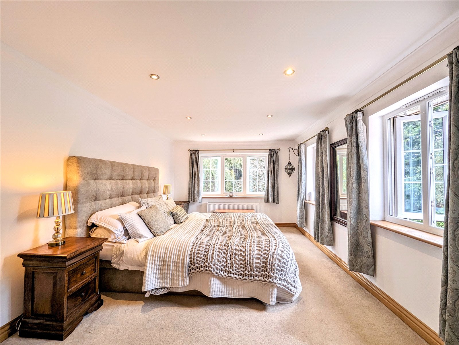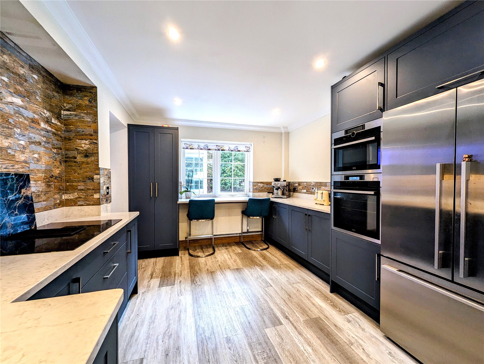 Enjoying a highly sought-after setting, this stunning tile-hung detached home has a well screened, expansive frontage and is approached via a gated driveway offering extensive parking leading to a convenient integral garage. The southerly aspect rear garden is a true oasis with mature trees,bushes and shrubs offering privacy and seclusion. A delightful patio area provides the perfect setting for alfresco dining and entertaining. At the far end of the garden there is an extensive leisure area whilst the broad central lawn area offers the opportunity to relax and unwind.