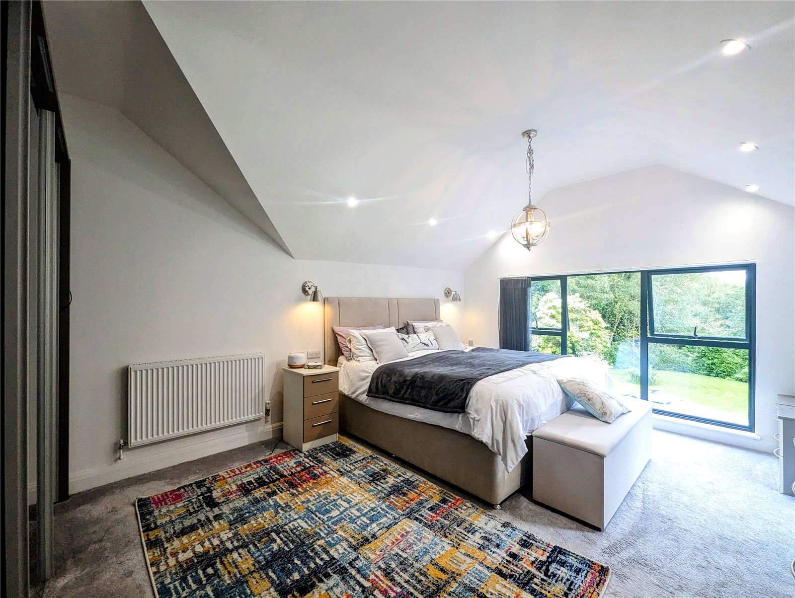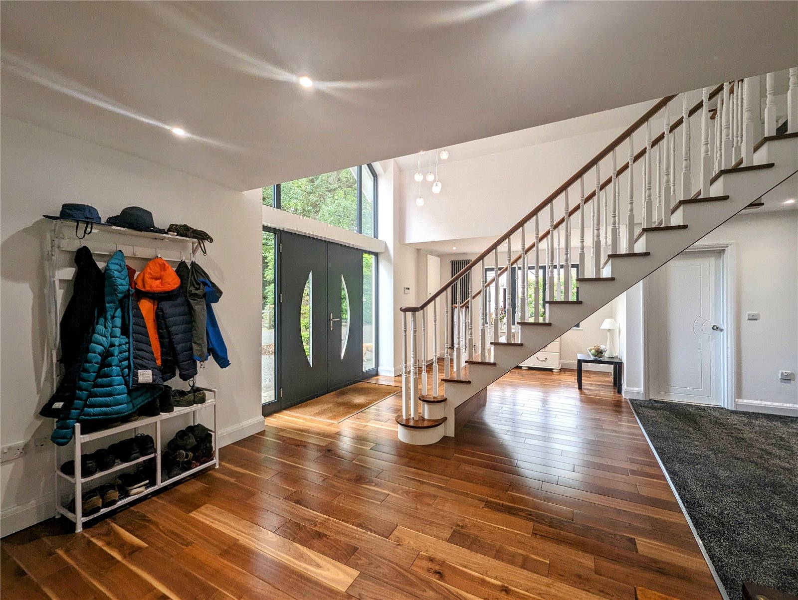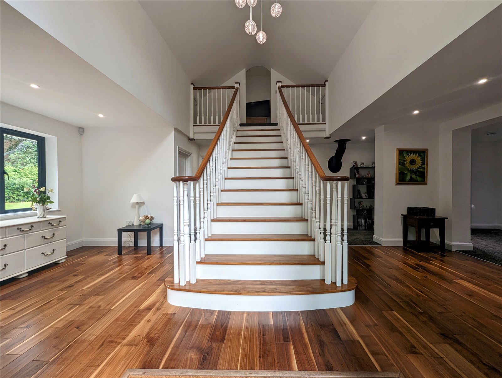 - Dual height, grand reception hall with central staircase, vaulted ceiling and galleried landing,