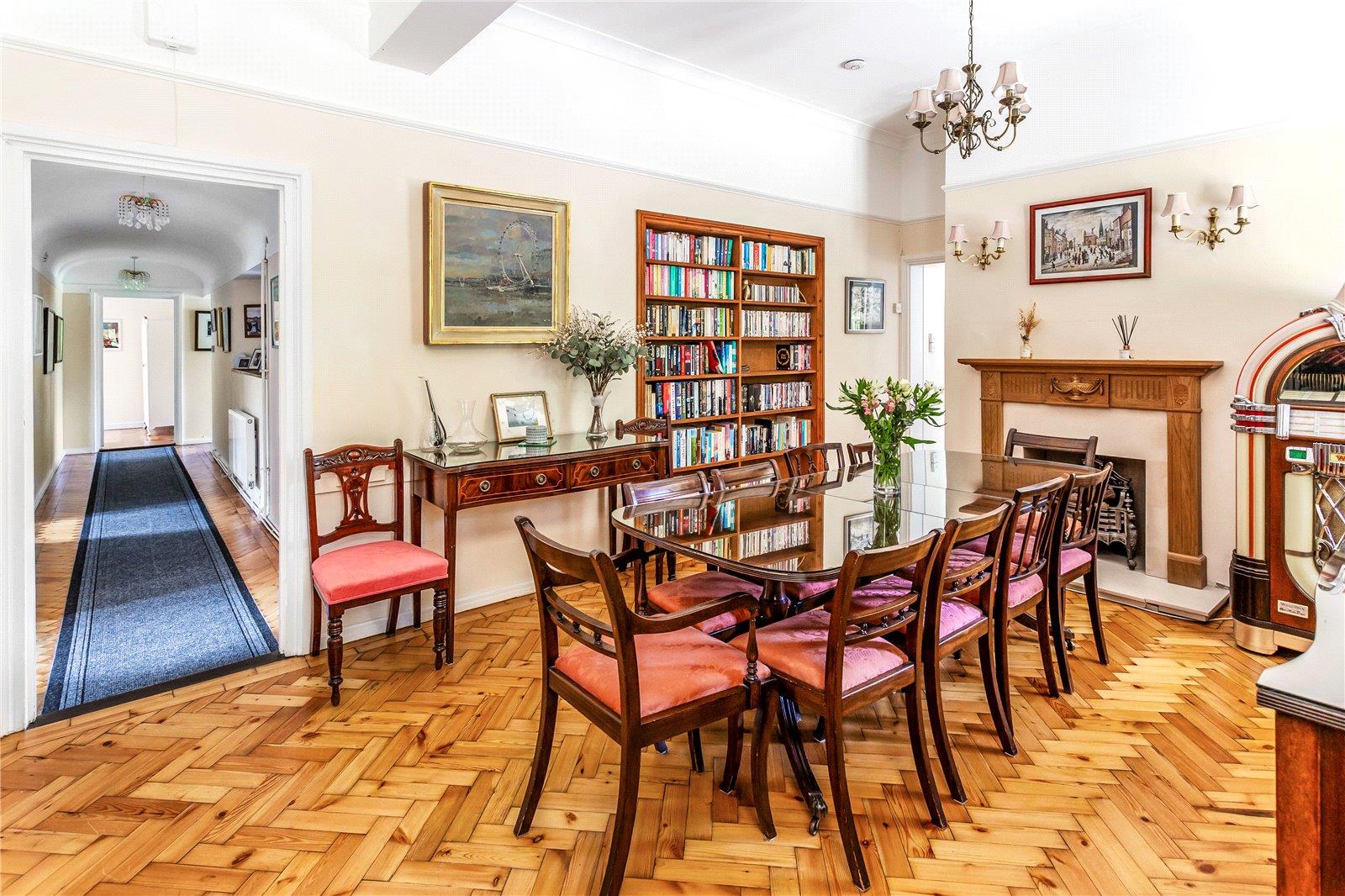 - Large reception hall, currently used as a dining room for entertaining and a well-proportioned sitting room with a wood-burning stove