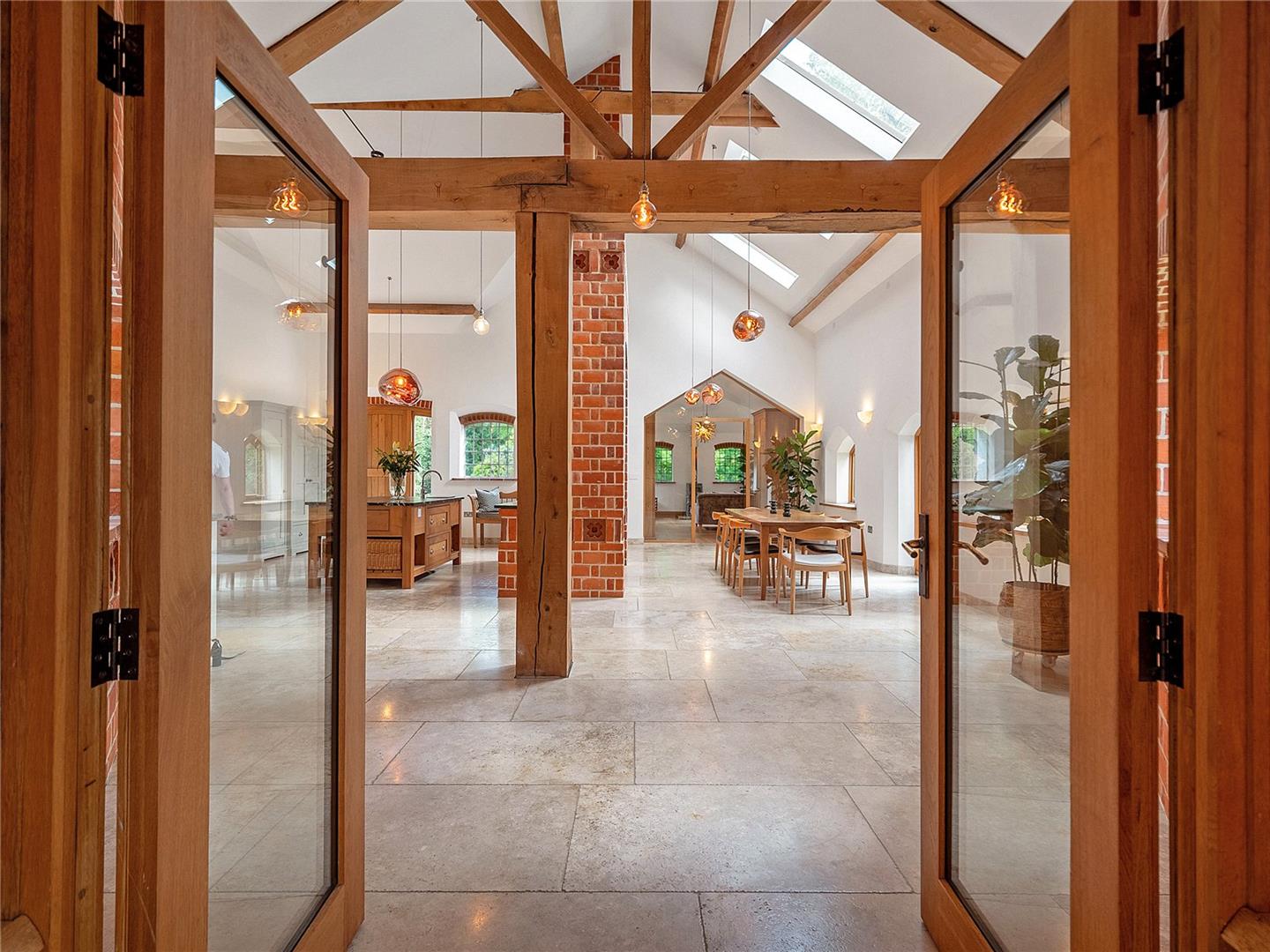 Step inside this magnificent home and you’re immediately struck by the spectacular double-height kitchen and family room lined with handmade red bricks, the true heart of the house, filled with light and designed for both grand entertaining and everyday living.