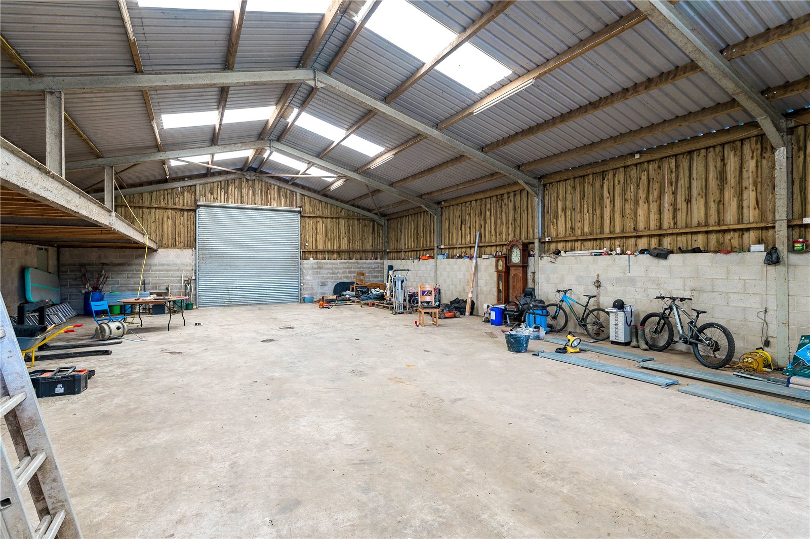 Additionally, there are outbuildings that include a large steel portal framed barn which is attractively clad in stone and timber up to roof level. Internally this building has an excellent flat concrete floor, electric light, and power as well as a water supply and internal storage.