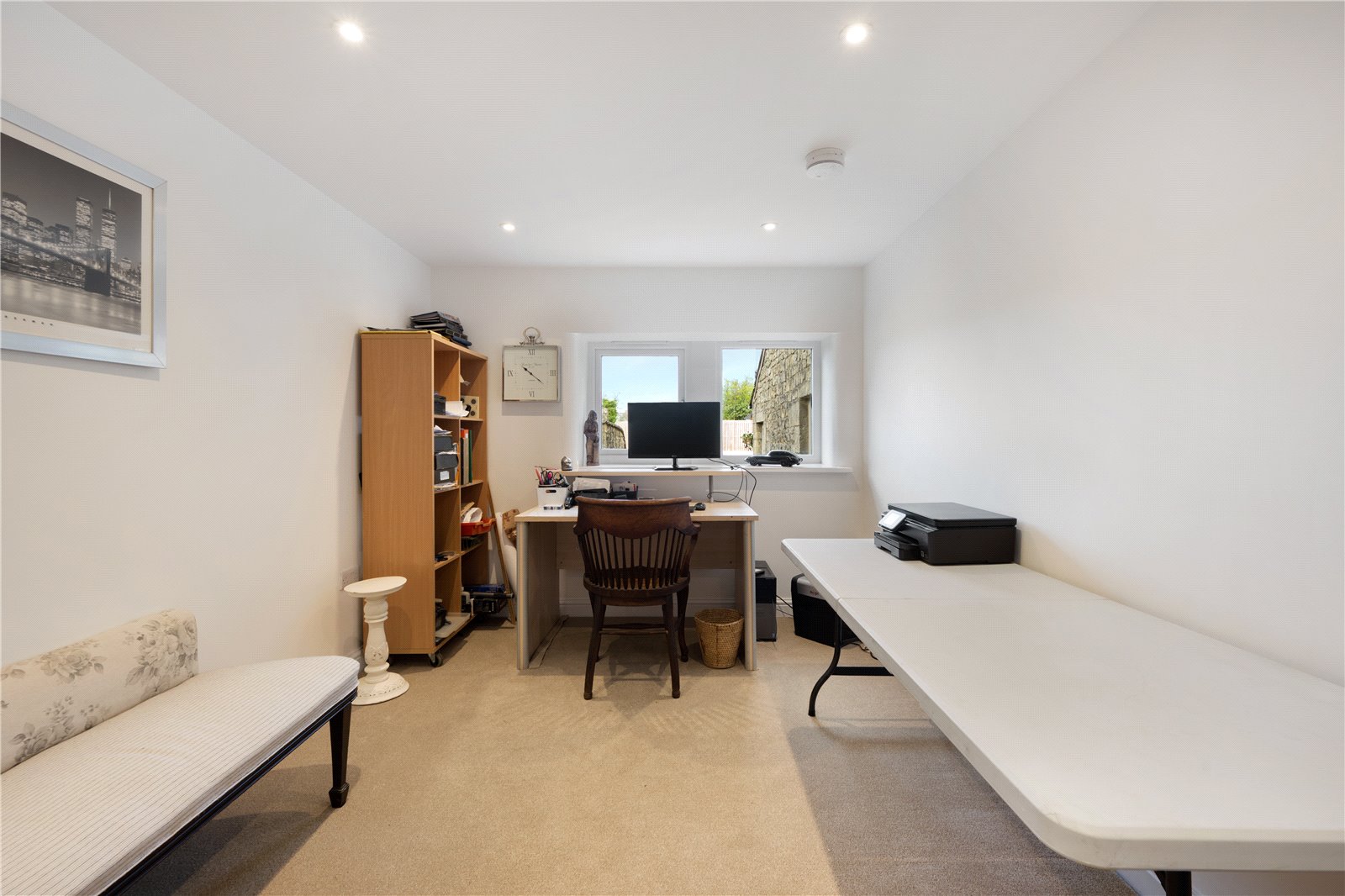 Entrance vestibule / porch with door to living room., French doors to the garden. Separate Dining room, Reception hall with picture window to the front of the property with an attractive staircase rising to the first floor. Two further reception rooms, one used a sitting room with open fire and a further reception room is currently used as a study but could have alternative use as a playroom or similar. Traditional farmhouse style dining kitchen with breakfast bar and doors out offering views to the rear of the property. Separate utility room with a part glazed stable door to the side. A W.C. is found off the utility room and a further room has been used as an office and is now used as a laundry room/gym and workshop.
