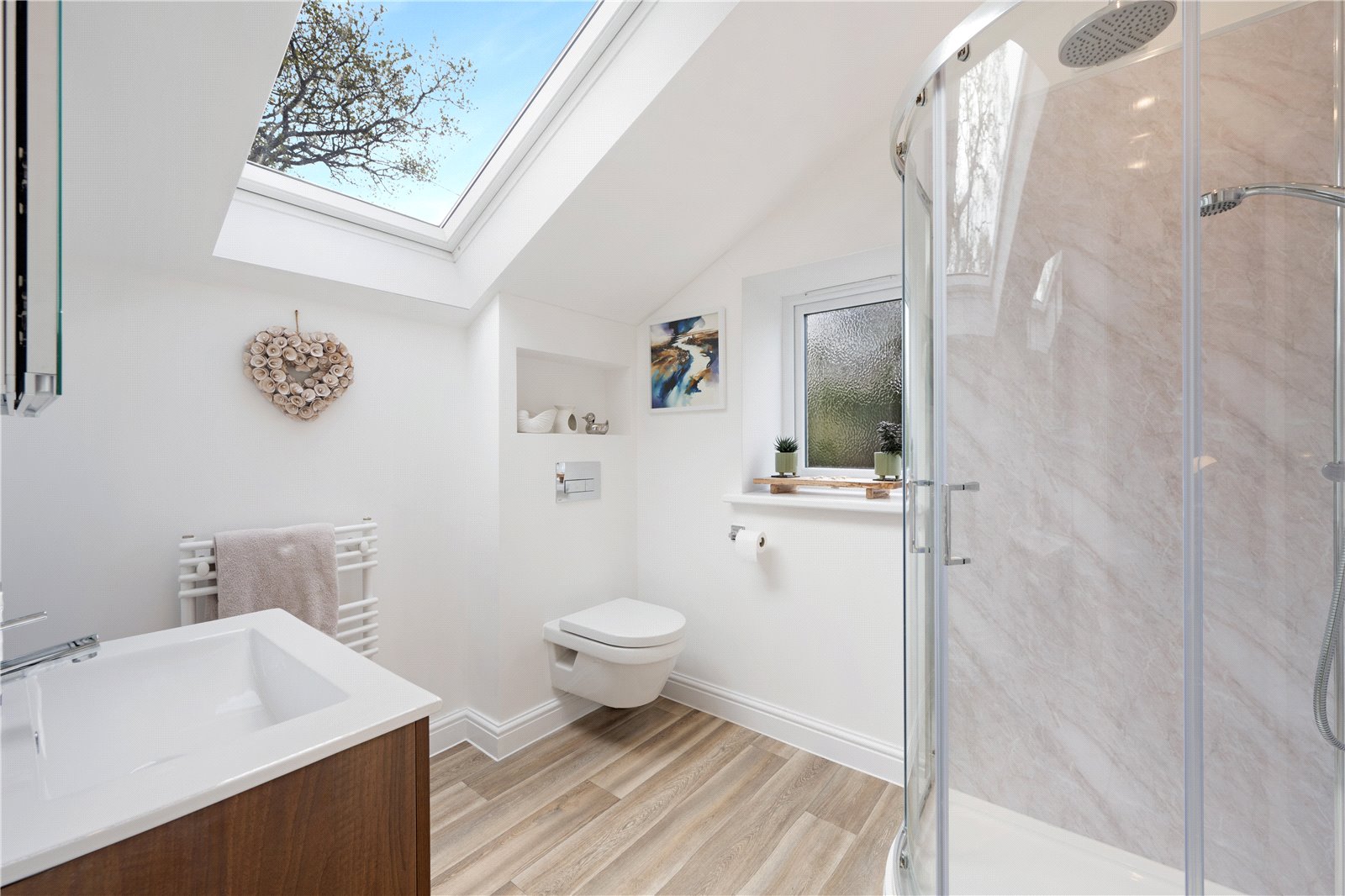 Galleried landing leading to master bedroom, with window to the side of the property and Velux along with under eaves storage. Ensuite which includes shower, WC, wash handbasins in a unit. There are two further bedrooms each with a shower ensuite and the fourth bedroom has the use of a family bathroom. The family bathroom has a bath, shower, WC, wash handbasin in a unit and a heated towel rail.