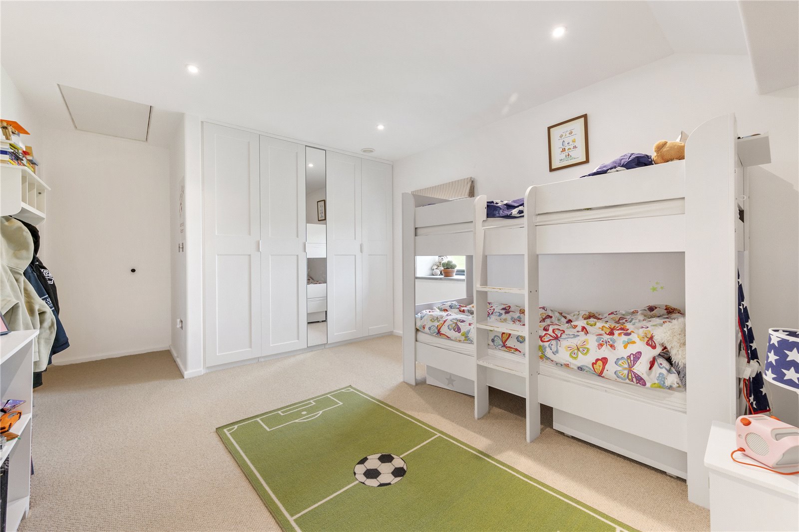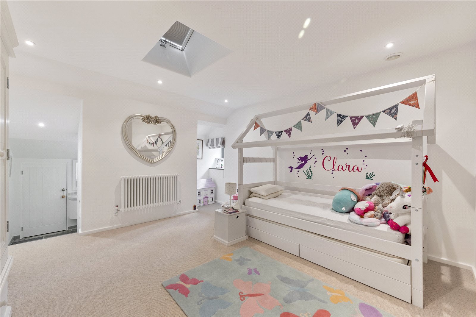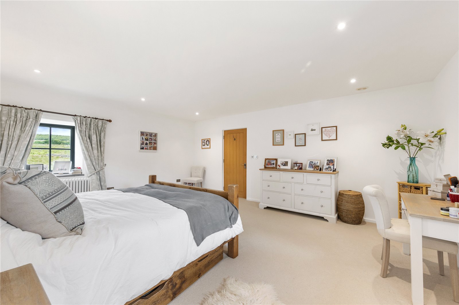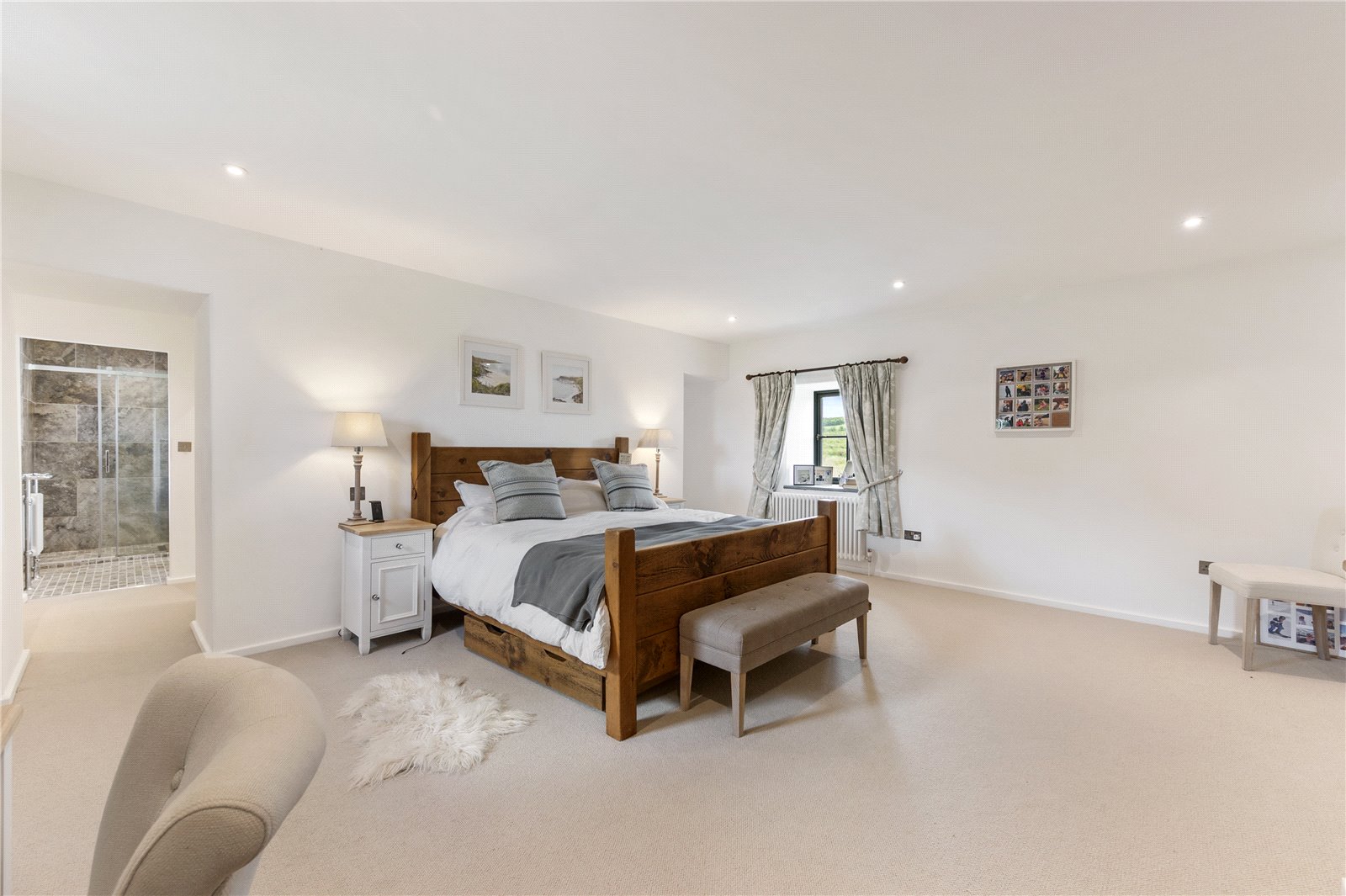 There are three further double bedrooms, each full of light and individual charm, with skylights and well-placed windows framing countryside views. All three benefit from stylish en suites -two with baths, one with a generous walk-in shower -ensuring both comfort and privacy for family or guests. Thoughtful storage runs throughout, including boarded loft areas tucked behind cleverly concealed doors.