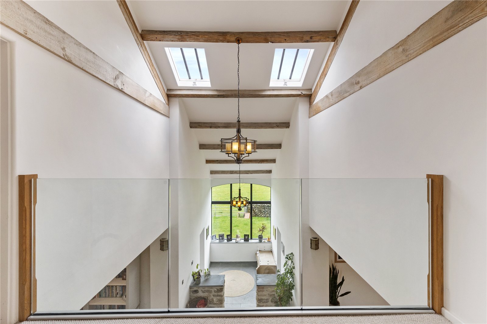 Stepping inside, a practical porch welcomes you ideal for muddy boots and dripping coats, alongside a discreet downstairs cloakroom. Tucked beside it is the so-called ‘control room’, neatly housing the workings of the home, including the air source heat pump and underfloor heating systems. Everything has been thought through, without intruding on the character of the place.