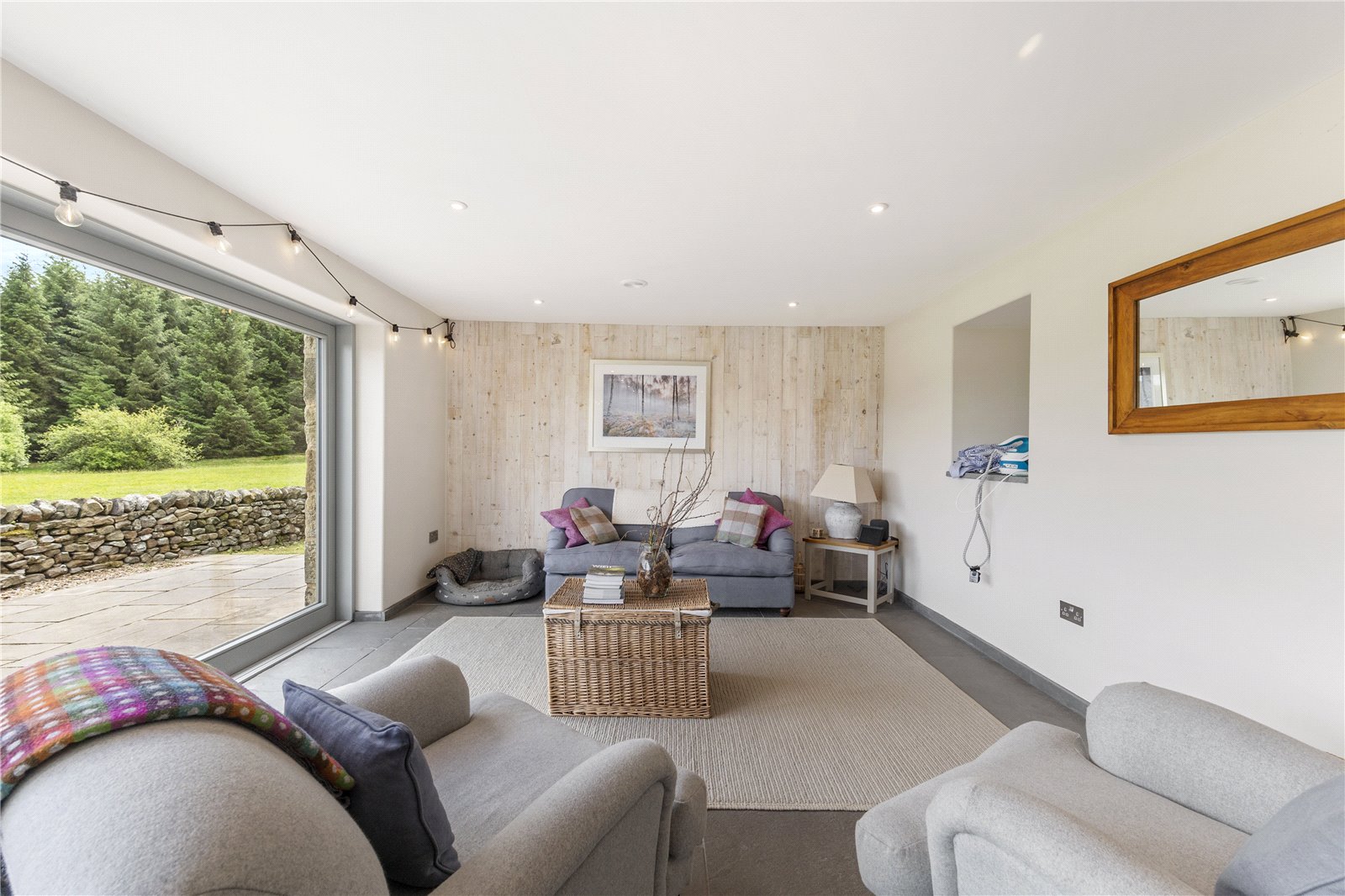 A paved path keeps things practical, while a well-placed shed offers tidy storage for garden tools and equipment. From the living space, sliding doors open onto a broad terrace perfect for al fresco dining or relaxed summer evenings as the sun dips behind the hills. The views themselves are uninterrupted, private, and alive with the passing seasons. Whether you're stargazing late into the night, spotting deer at dawn, or walking straight from the garden gate into Gisburn Forest, this is a home that lets you truly breathe.